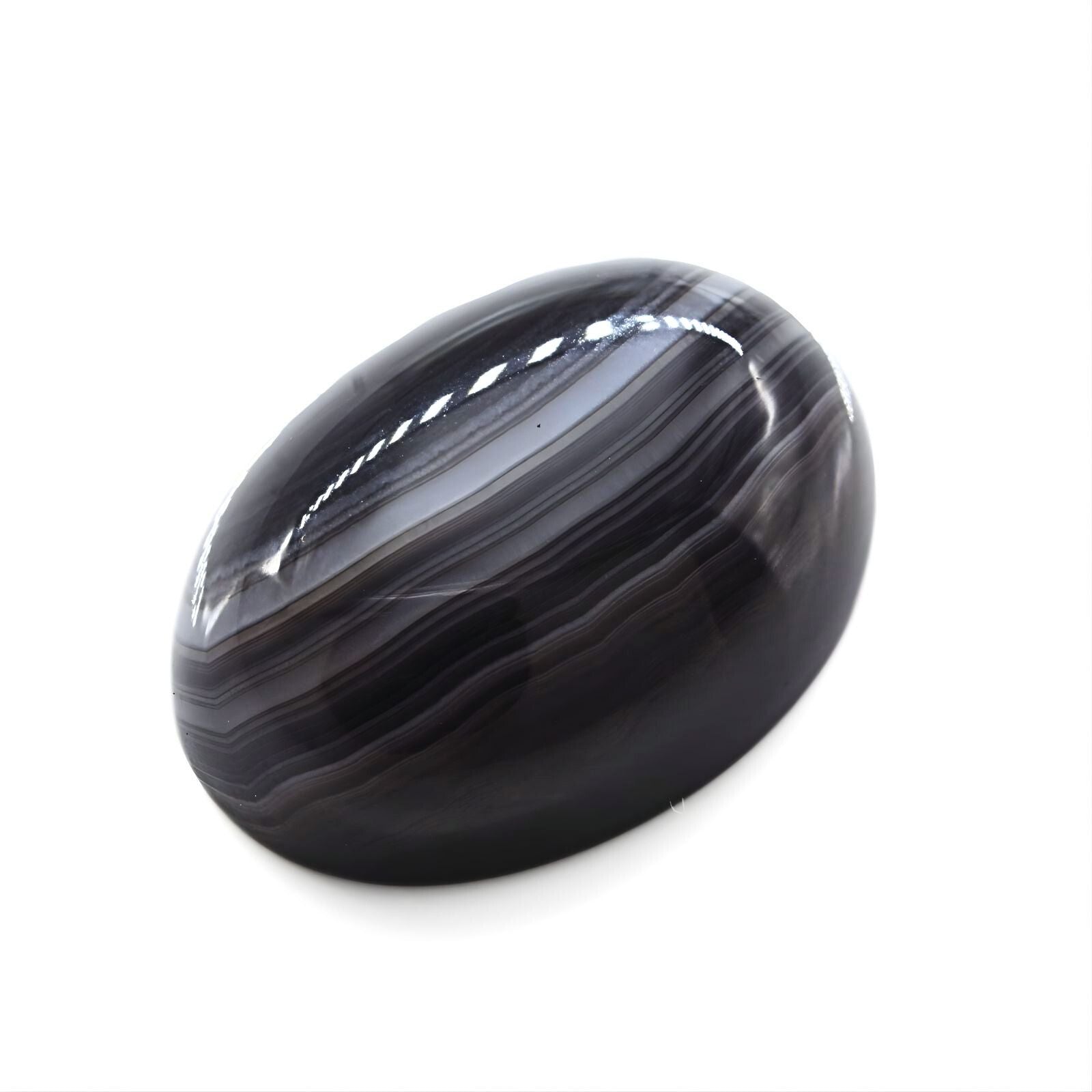 This 12.9-carat Sulemani Hakik showcases the distinctive black and grey banding that defines this prized variety of chalcedony agate. The generous oval cut reveals the stone's natural stratification, a testament to millions of years of mineral accumulation and crystallization. Sulemani Hakik holds esteemed status in gemstone traditions, where it is valued for its reputed grounding and protective attributes. The untreated composition ensures complete authenticity, preserving the gemstone's inherent character and geological integrity. Its substantial carat weight and striking color contrast make it particularly suitable for statement jewelry pieces or serious collectors. A remarkable specimen that combines natural beauty with the timeless appeal of a genuinely formed mineral treasure.