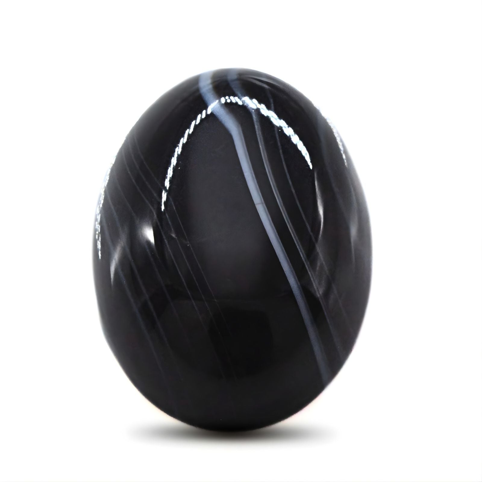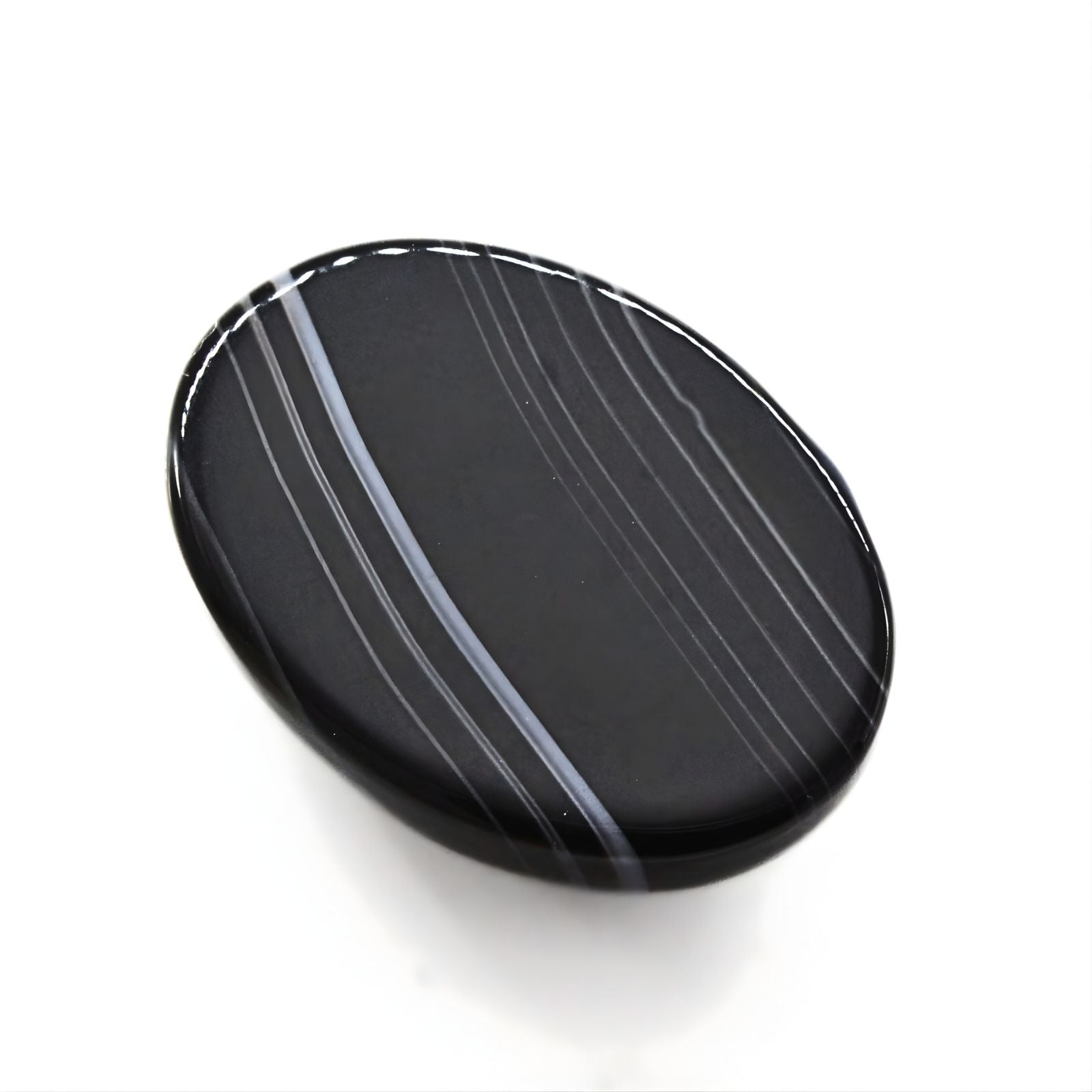 This outstanding 12.9-carat natural Sulemani Hakik presents a compelling display of charcoal and slate-toned bands within a precisely proportioned oval form. The stone's natural banding architecture reflects authentic geological development, with each striation documenting mineral crystallization across geological epochs. Recognized by gemstone specialists for its unenhanced authenticity and visual sophistication, this specimen delivers both aesthetic refinement and the intrinsic qualities valued in traditional gemological practice. A distinguished acquisition for collectors seeking genuinely sourced agate with pronounced patterning and established mineralogical resonance.