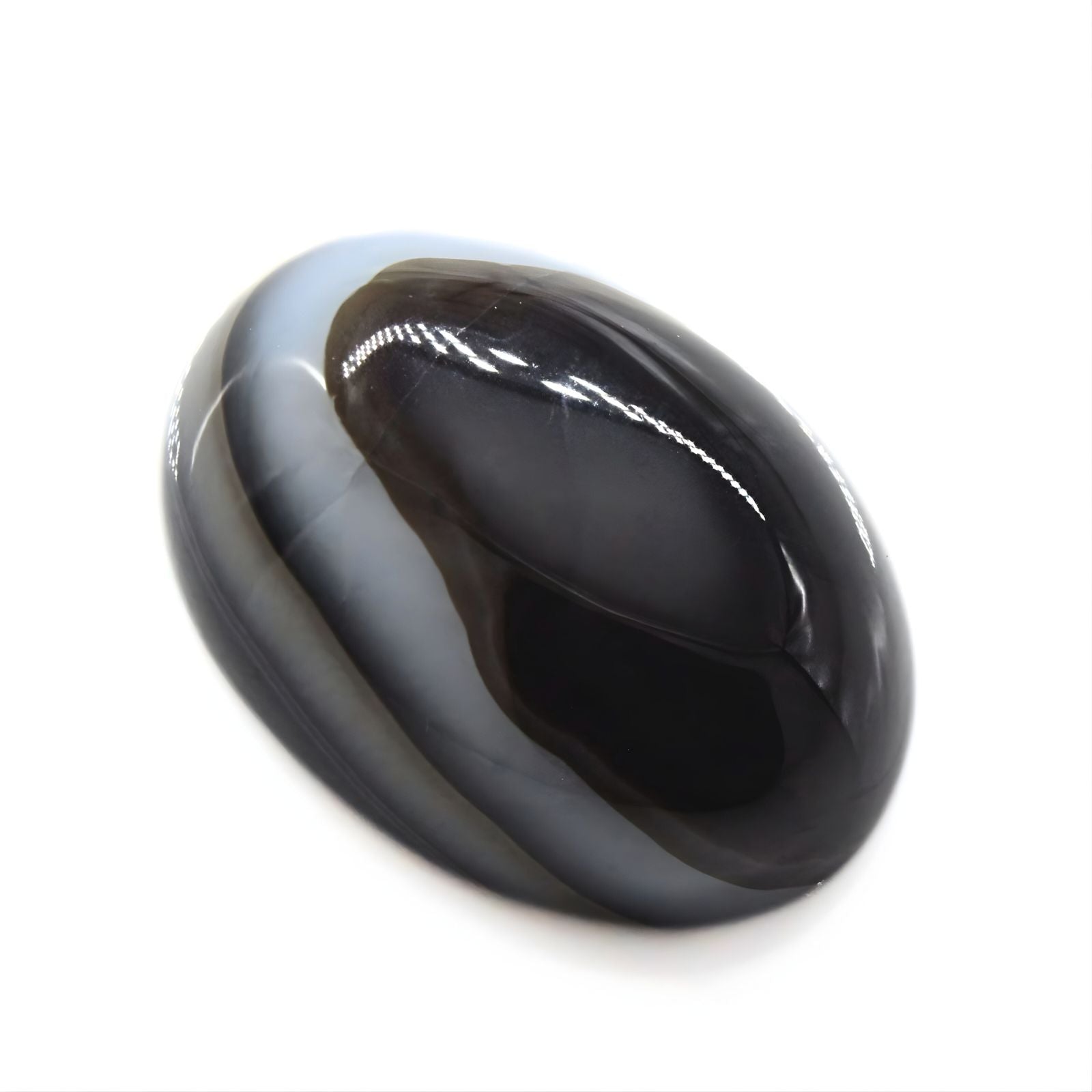 This superior 13.1-carat natural Sulemani Hakik gemstone showcases the striking contrast between obsidian black and ash grey bands characteristic of premium agate specimens. The oval faceting accentuates the stone's natural stratification, revealing the intricate geological formations developed across millennia. Valued by gemstone authorities for its authentic, untreatment composition and visual complexity, this specimen represents an excellent choice for serious collectors and practitioners seeking naturally-sourced materials with distinguished mineralogical credentials and timeless aesthetic refinement.