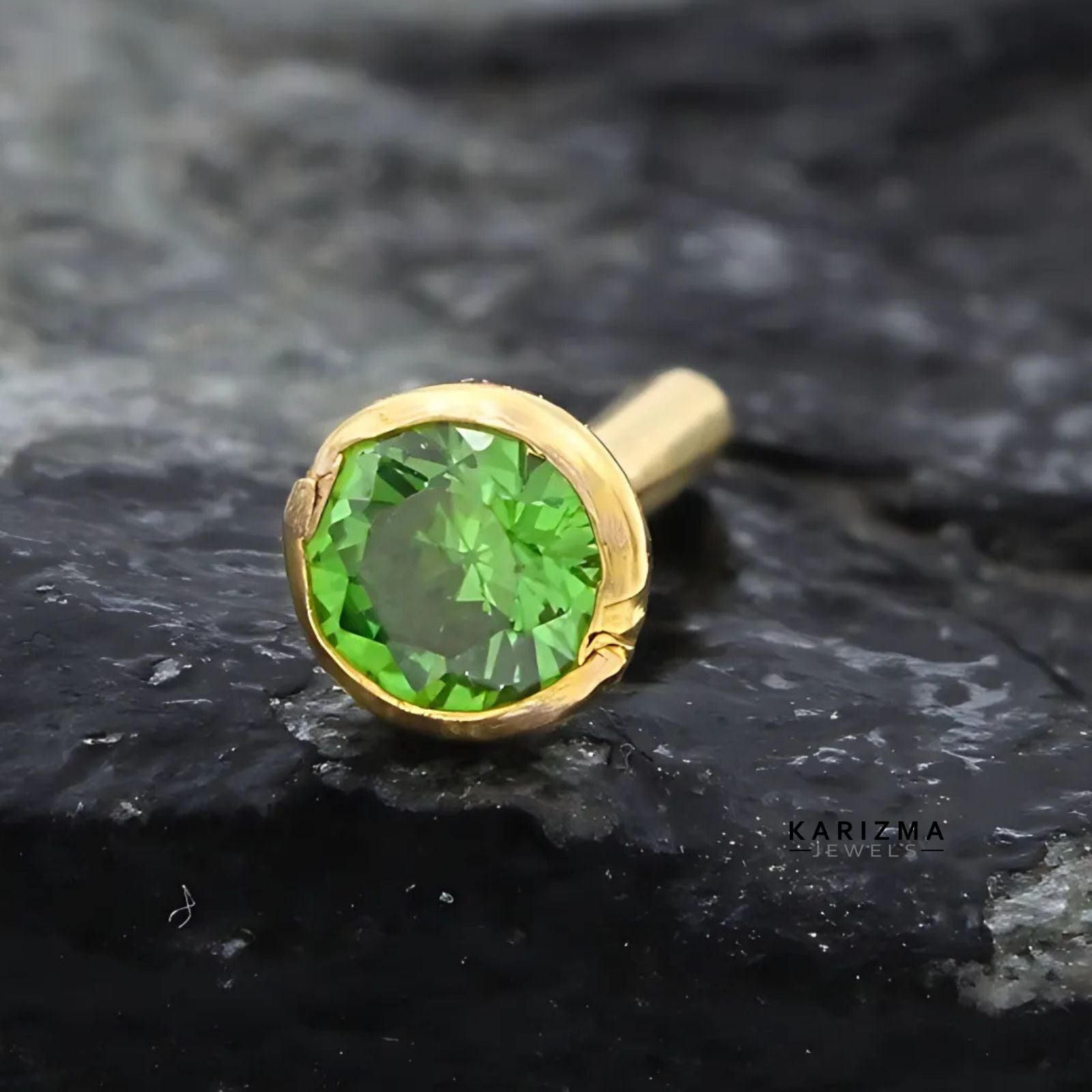 14K Real Gold Women Green CZ daily wear Nose Pin nose ring Push Pin