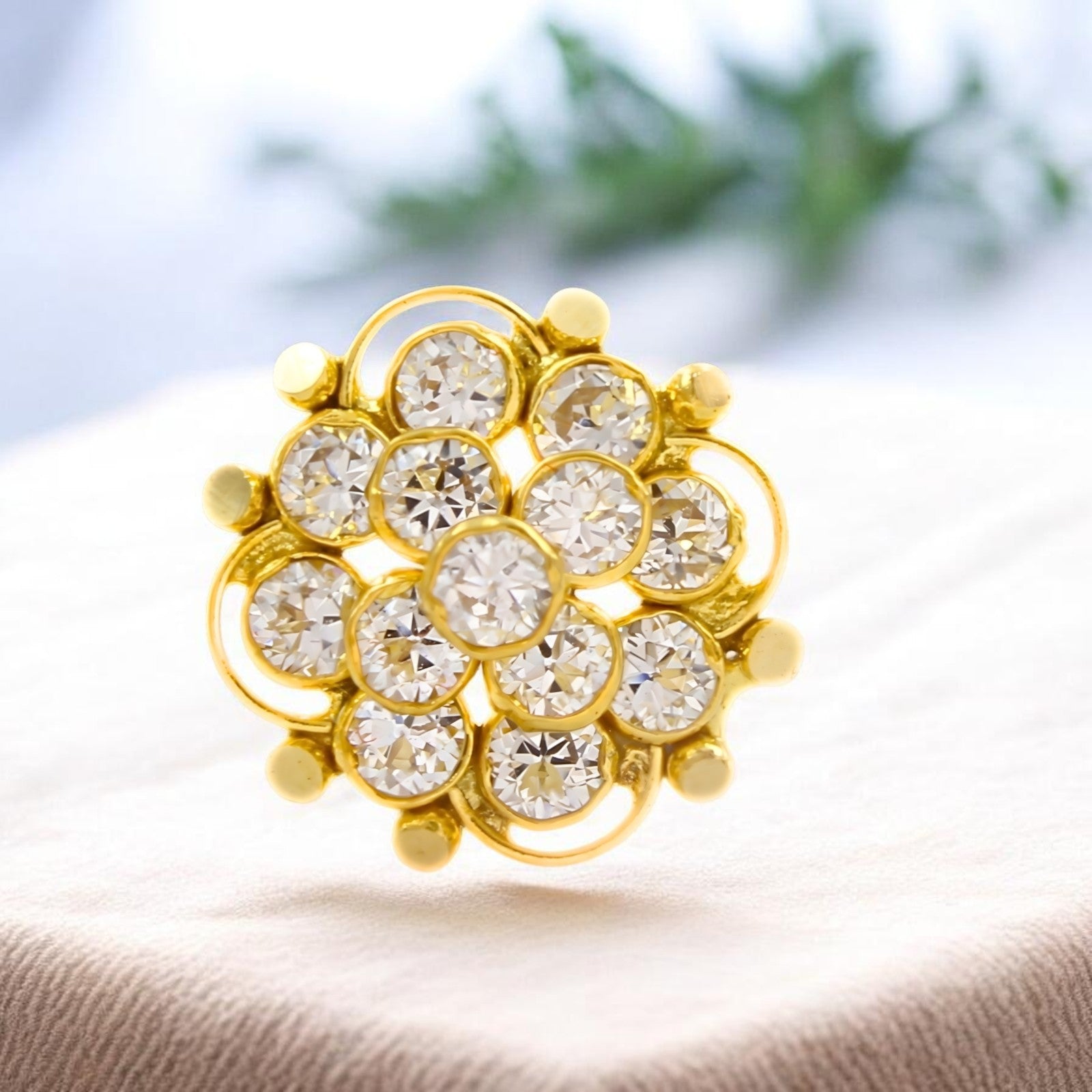 18K Real Gold Floral White CZ Push Pin Nose Pin