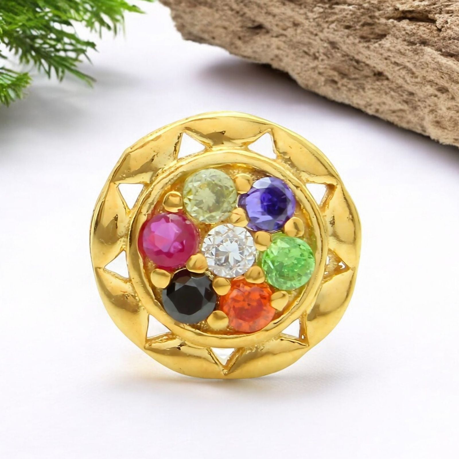 This 18K real gold nose pin showcases a stunning arrangement of multi-colored CZ stones, specifically designed for special occasions and parties. The precision-crafted push pin mechanism provides secure attachment while maintaining comfort throughout extended wear. The luxurious combination of genuine gold and premium cubic zirconia creates a statement piece that elevates any formal ensemble with sophisticated brilliance and artisanal quality.