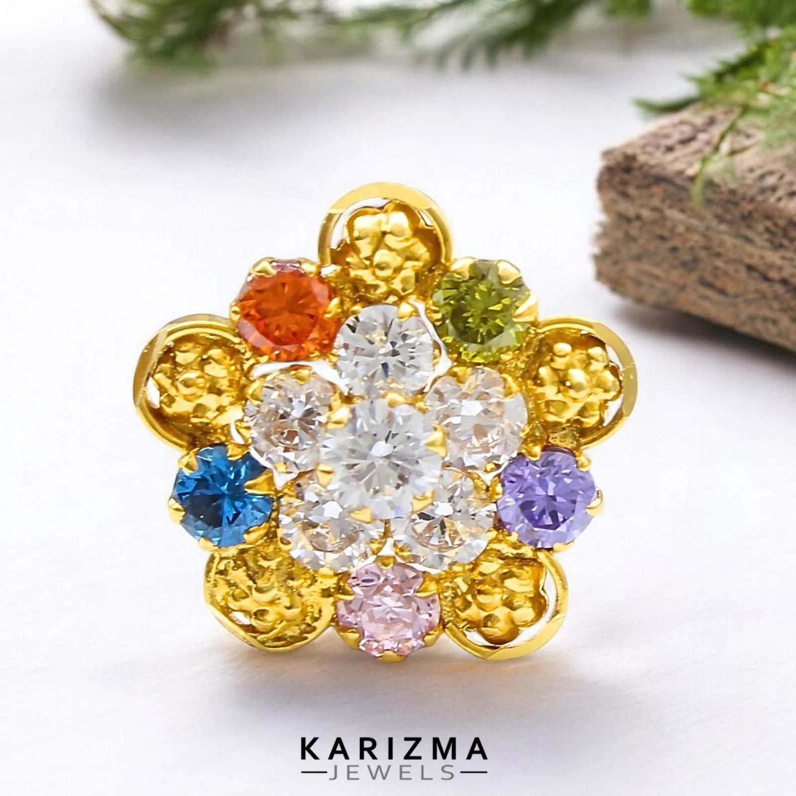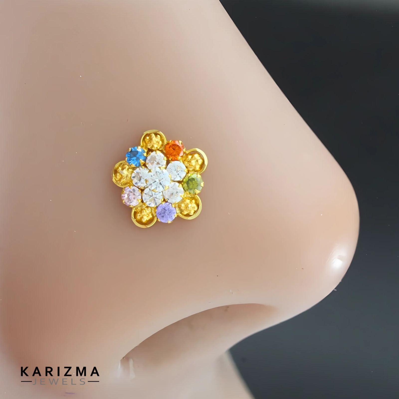 Expertly crafted in fine 18K real gold, this women's nose pin features beautiful multicoloured CZ stones for a touch of elegance. With its secure push pin design, this nose ring is perfect for everyday wear and will make a stunning addition to any jewelry collection.