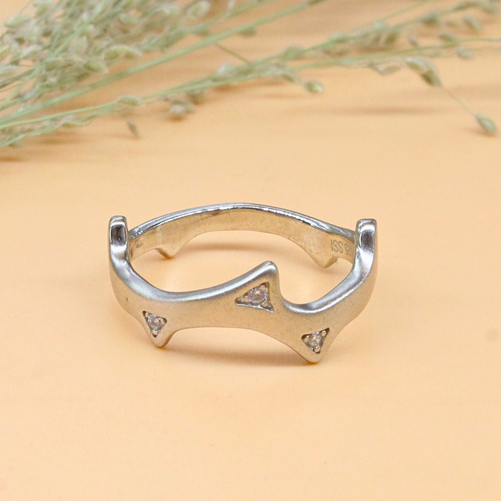 Crafted from premium 925 sterling silver, this thorny ring showcases an intricate textured design that commands attention. The raised, spike-like detailing creates striking visual depth while maintaining comfortable wearability. Perfect for those seeking bold statement jewelry with an edgy aesthetic, this piece balances contemporary design with timeless silver craftsmanship. Ideal for everyday wear or special occasions, it's a versatile addition to any jewelry collection.