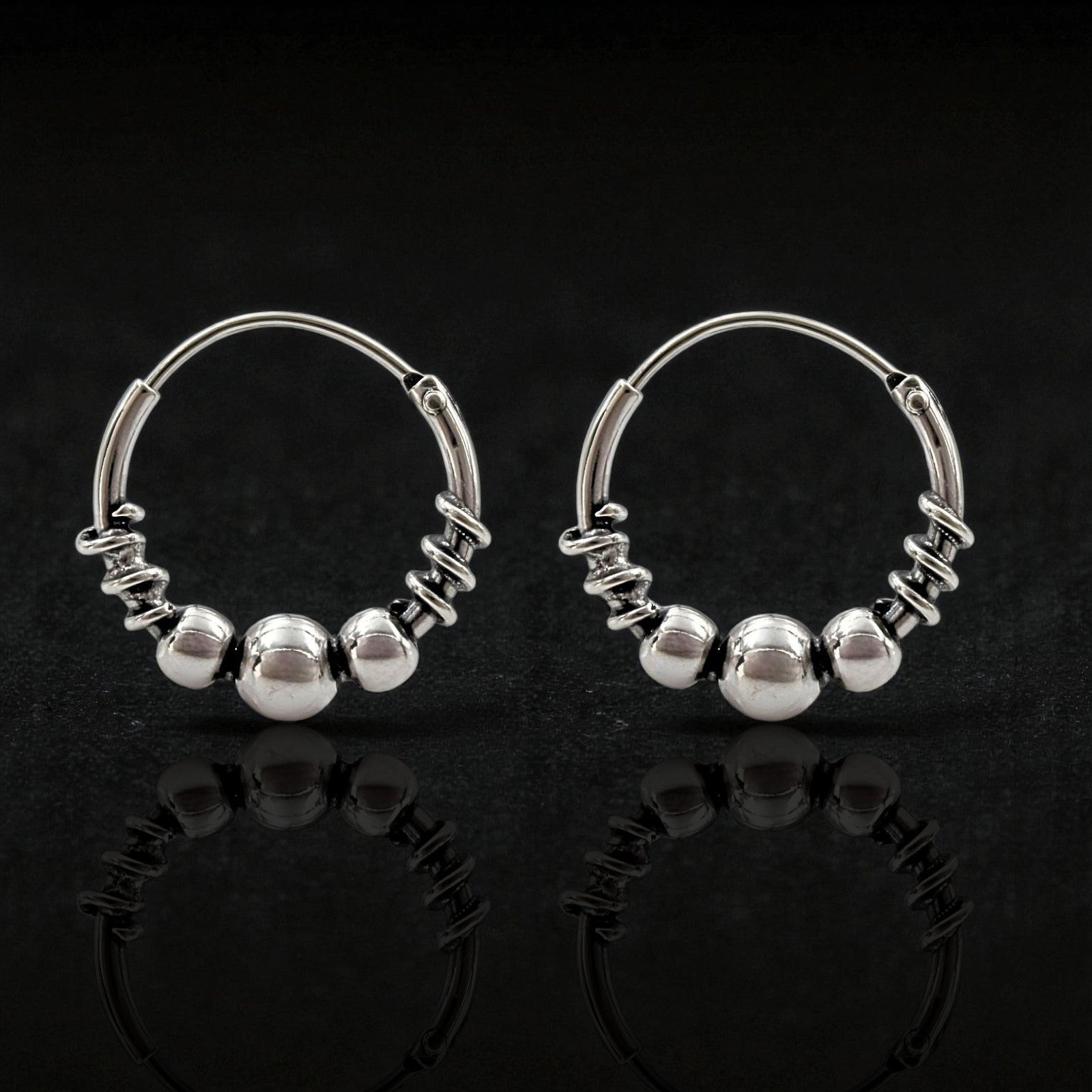 925 Real Sterling Silver Oxidized stylish bali hoop earrings for women - Pair