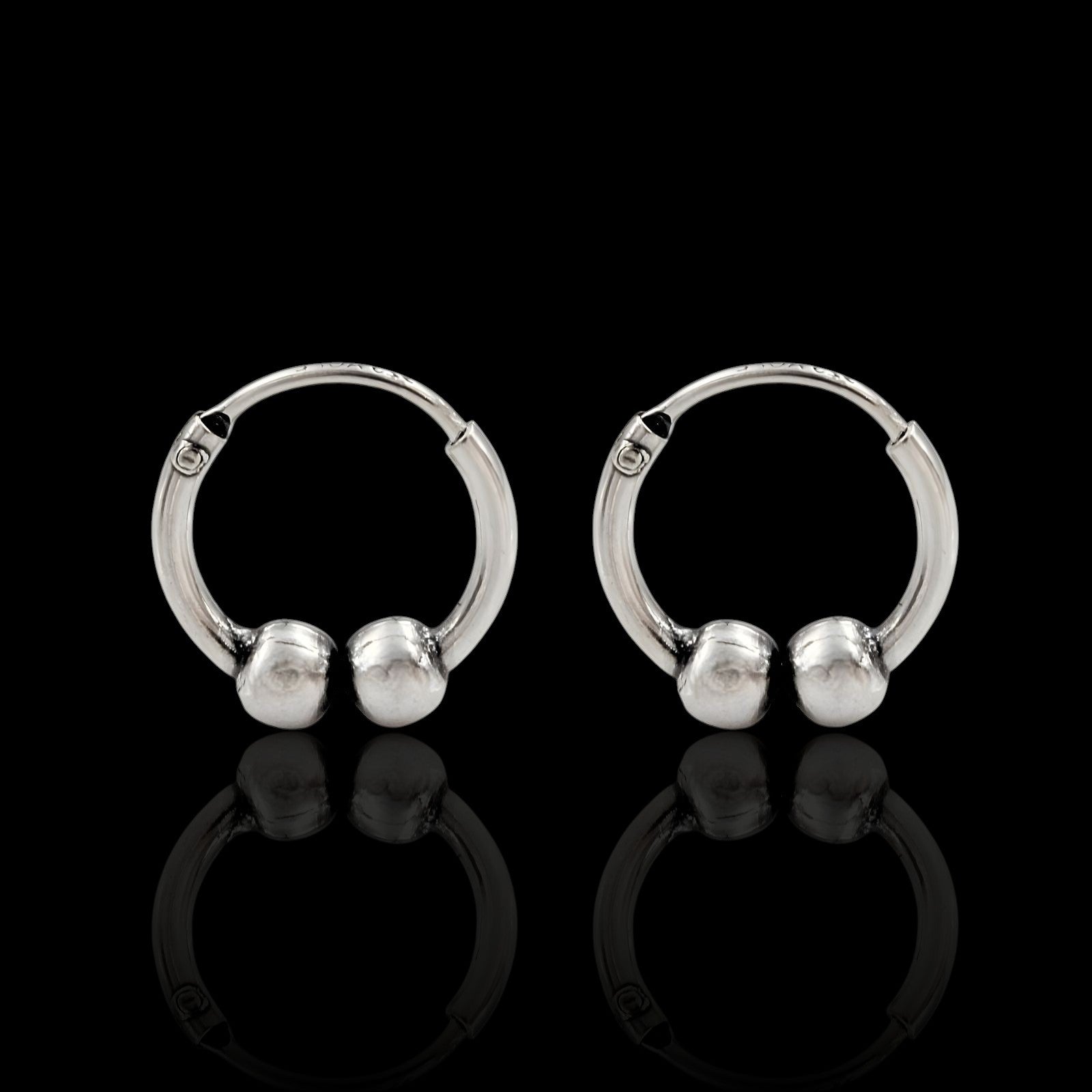 925 Real Sterling Silver Oxidized ball design bali hoop earrings for Girls - Pair