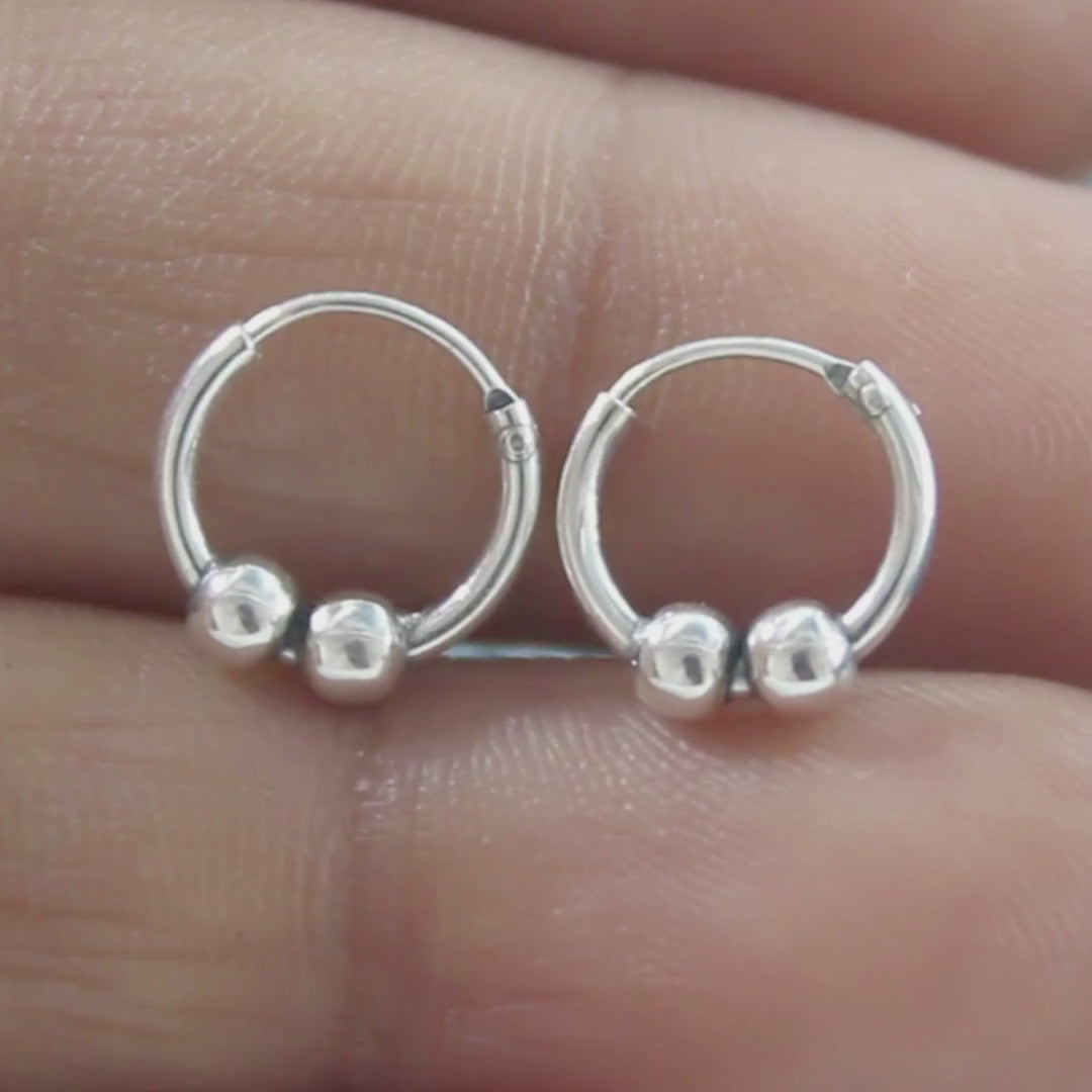 Featuring genuine 925 sterling silver with an oxidized finish, these Bali hoop earrings showcase spherical ball detailing that adds dimensional elegance. The darkened oxidized surface enhances the sculptural quality of each bead, creating a sophisticated interplay of light and shadow. Meticulously crafted using traditional Balinese techniques, they deliver authentic artisanal appeal with modern sensibility. The balanced weight distribution ensures comfortable all-day wear, while the secure hoop mechanism provides reliable stability. Ideal for those who value handcrafted jewelry that combines cultural heritage with refined aesthetic sophistication.