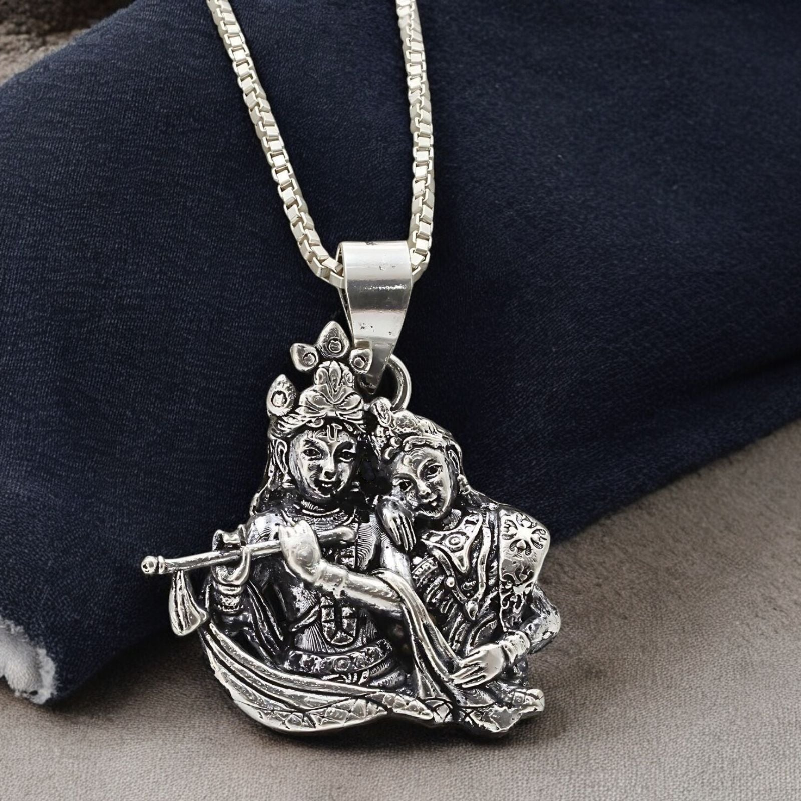 925 Real Sterling Silver Oxidized Lord Radha Krishna pendant