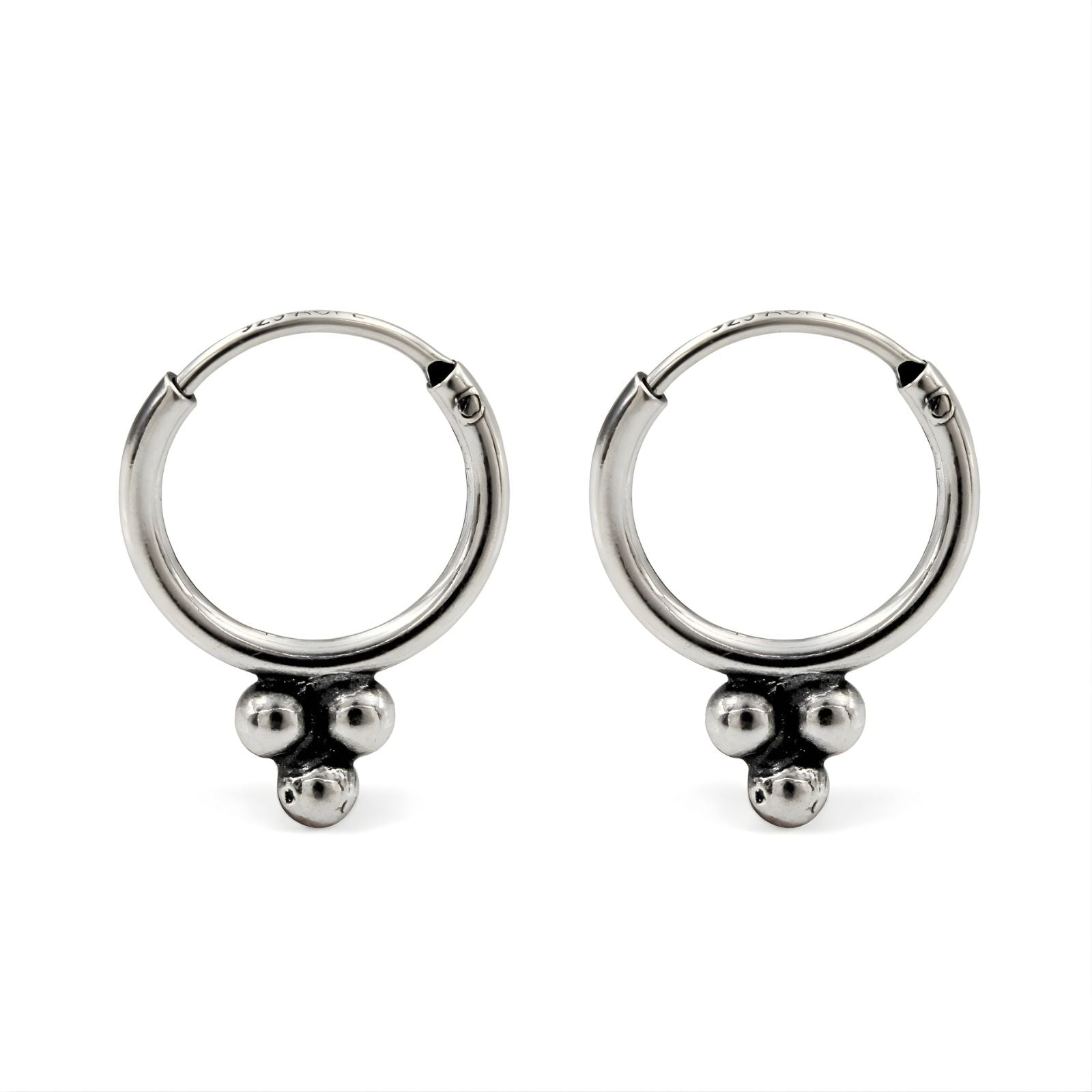 Featuring genuine 925 sterling silver with an oxidized patina, these small Bali hoop earrings showcase traditional artisanal craftsmanship in an accessible size. The darkened finish accentuates the intricate detailing characteristic of Balinese design, creating visual richness despite their petite proportions. Lightweight construction promotes all-day comfort, making them ideal for sensitive ears or those preferring subtle jewelry statements. The oxidized surface develops a distinctive character over time, enhancing their authentic appeal. Meticulously crafted with secure closure mechanisms, they deliver reliable performance and lasting durability. Perfect for collectors of genuine silver jewelry who appreciate cultural significance, quality materials, and the timeless elegance of handcrafted pieces that transcend fleeting trends.