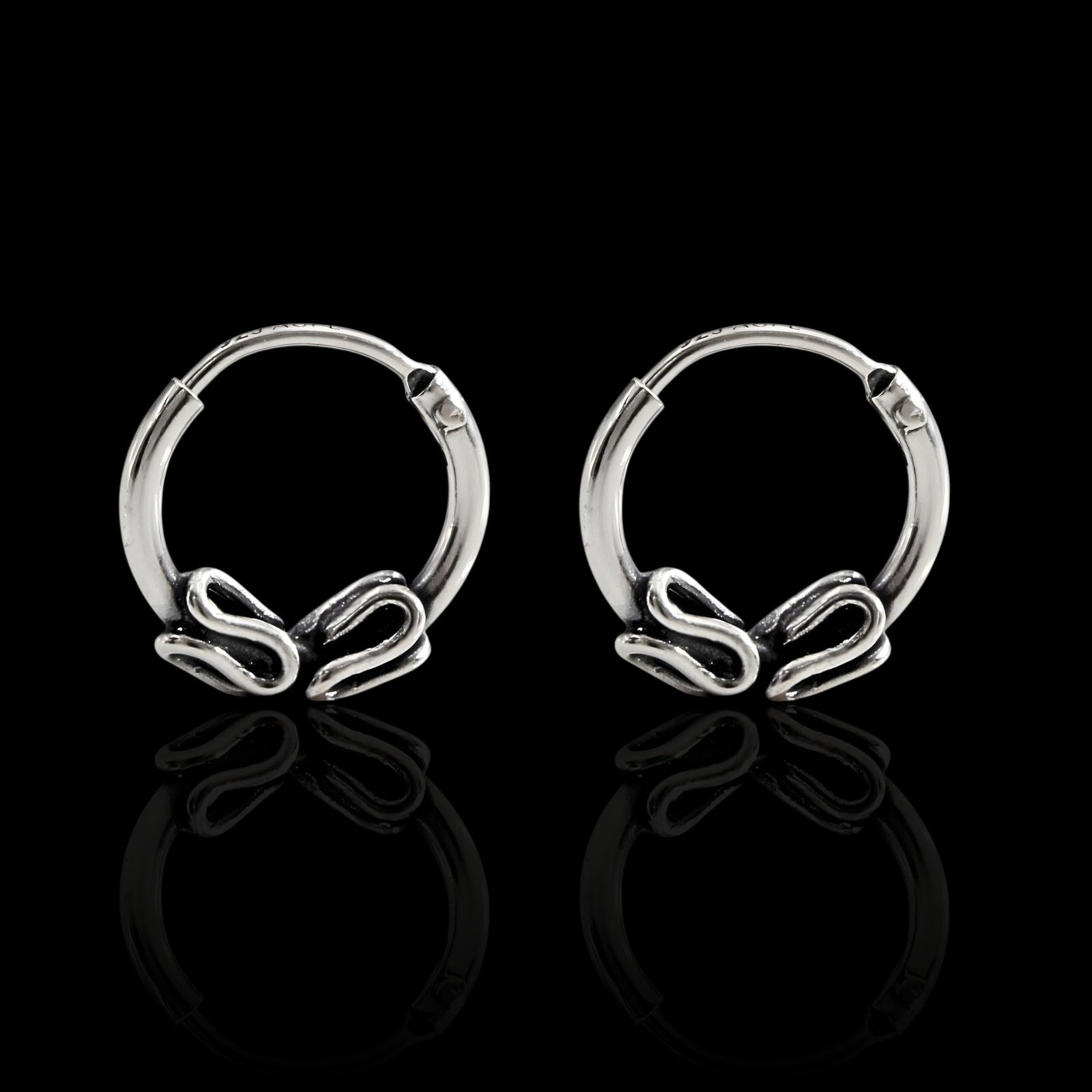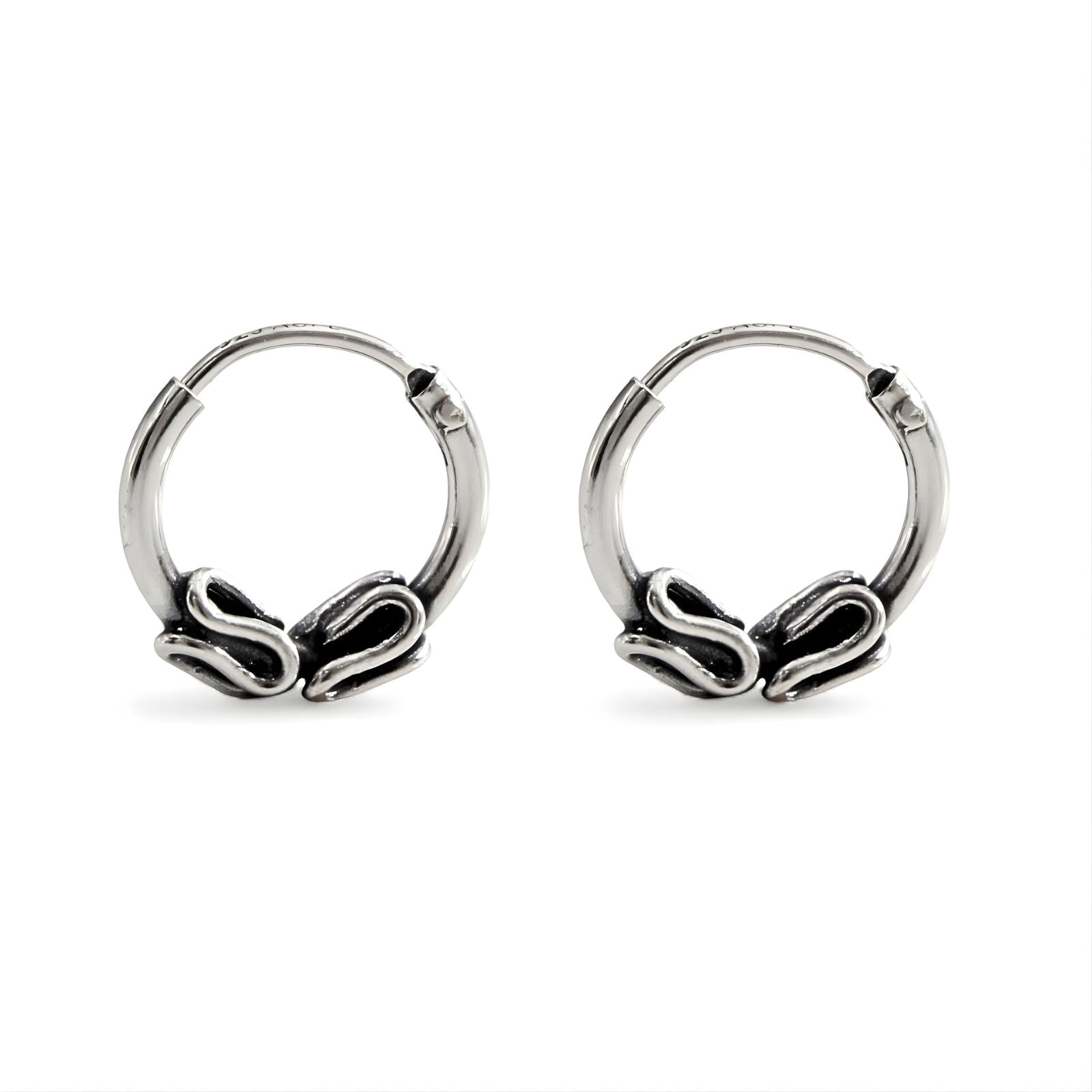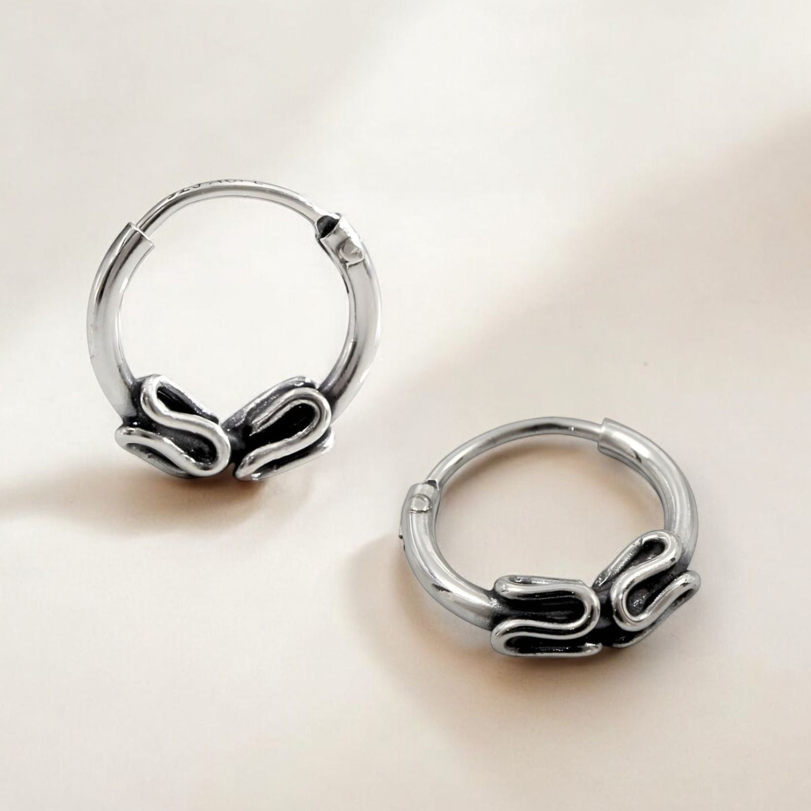 Crafted from authentic 925 sterling silver, these Bali hoop earrings showcase traditional oxidized detailing that adds depth and character. The compact design makes them ideal for everyday wear, while the timeless hoop silhouette complements various face shapes and styles. The oxidized finish enhances the intricate craftsmanship typical of Bali jewelry, creating a sophisticated look that transitions seamlessly from casual to formal occasions. Perfect for those seeking genuine silver jewelry with cultural artistry and enduring appeal.