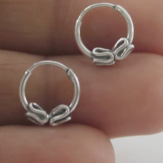 Cute 925 Real Sterling Silver Oxidized small Bali hoop Earrings for Girls - Pair