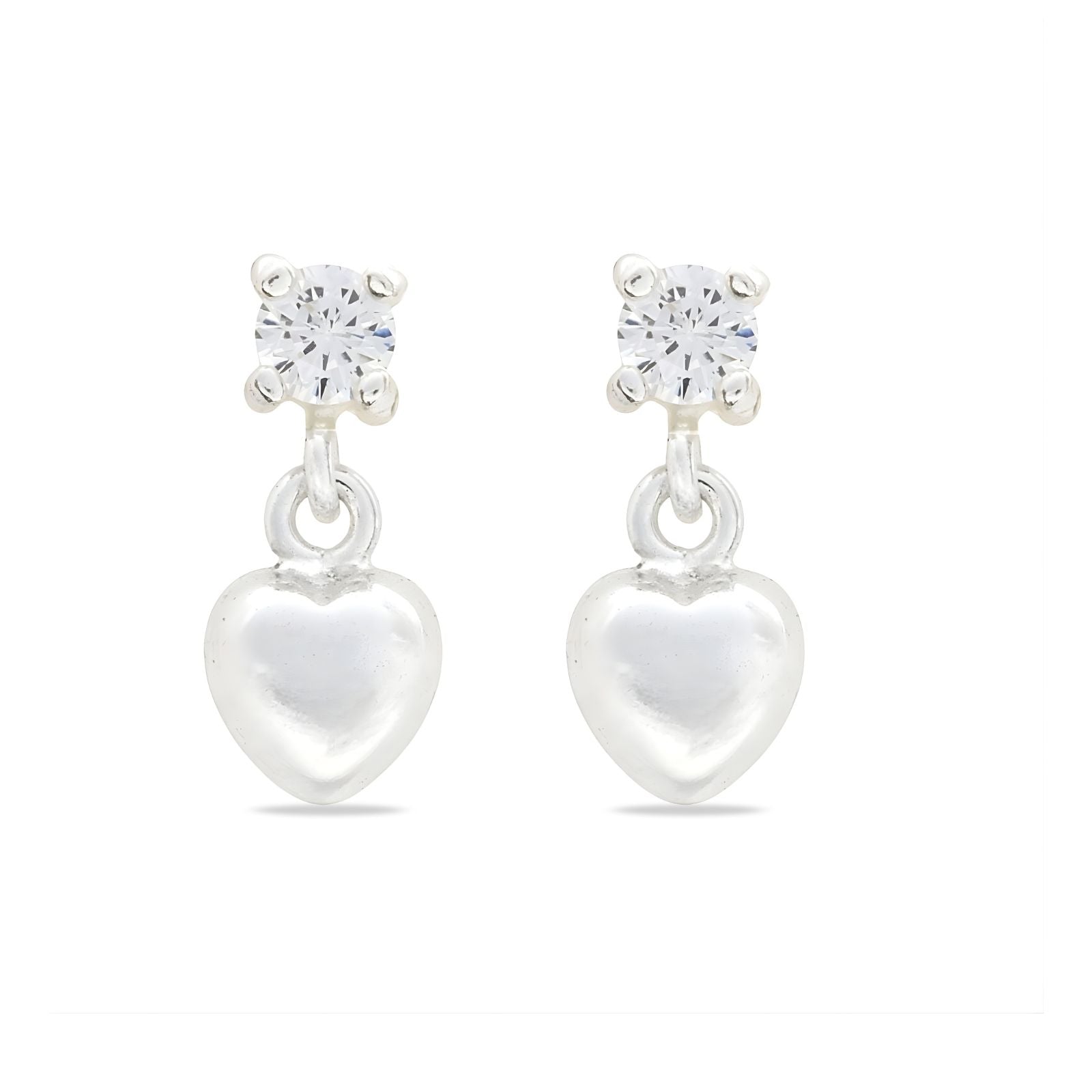 Divine 925 Real Sterling Silver White CZ girlish Plain Heart Drop stud Earrings - Pair