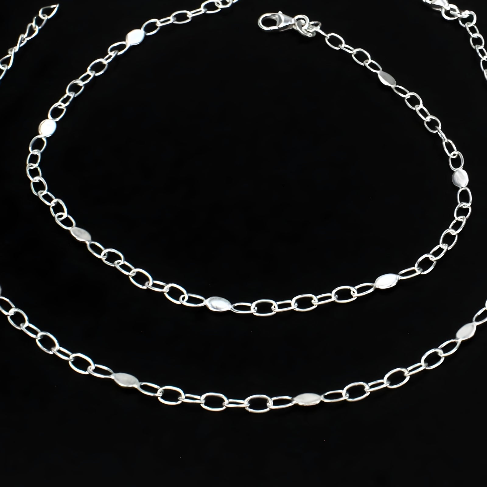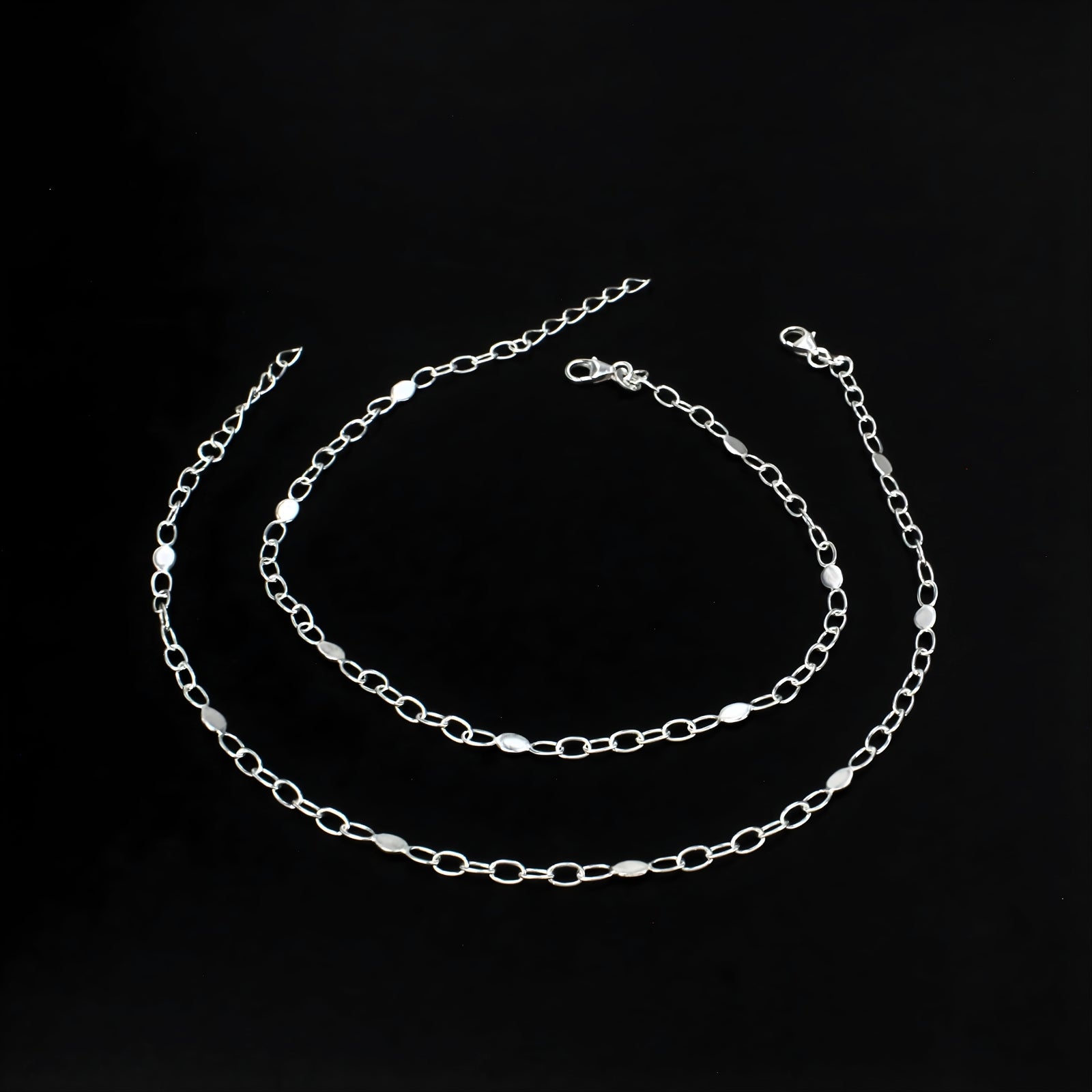 925 Sterling Silver Beach Look Chain Payal Anklet Pair 10.5"