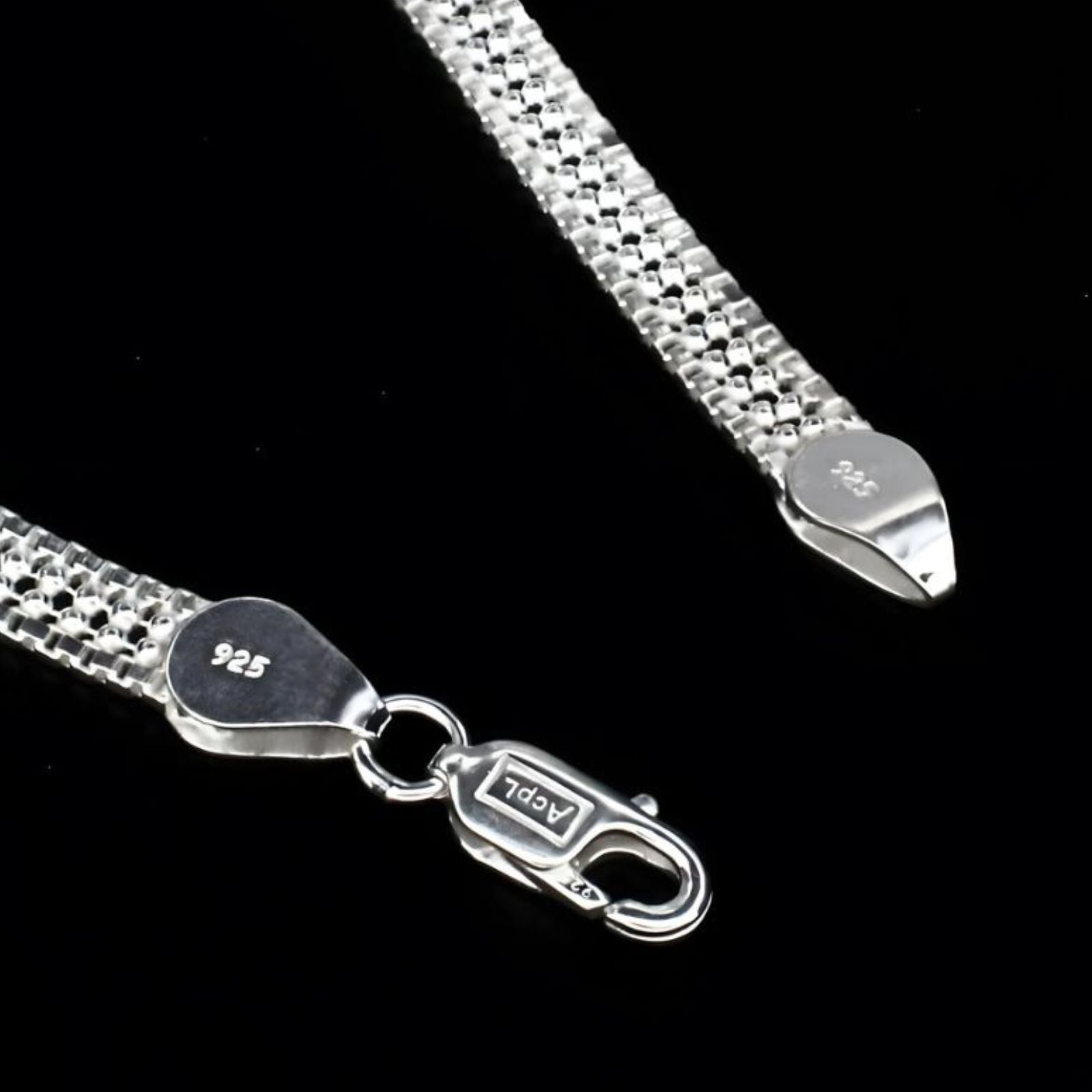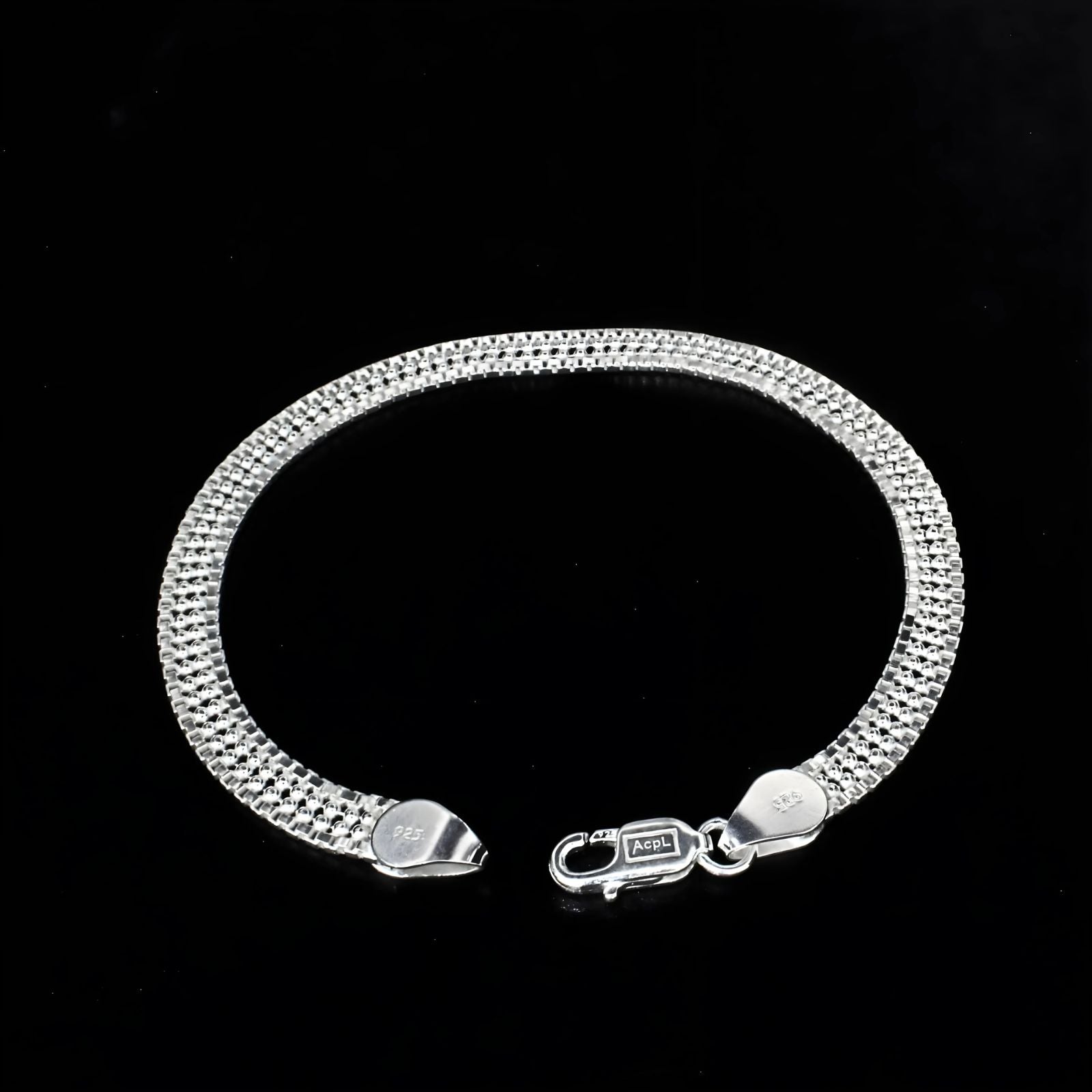 This 8.5-inch men's chain bracelet features an elegant flat design crafted from authentic 925 sterling silver. Its sleek, refined silhouette offers a sophisticated look that enhances any ensemble, providing both style and durability. Perfect for daily wear or formal occasions, this bracelet combines timeless appeal with expert craftsmanship.