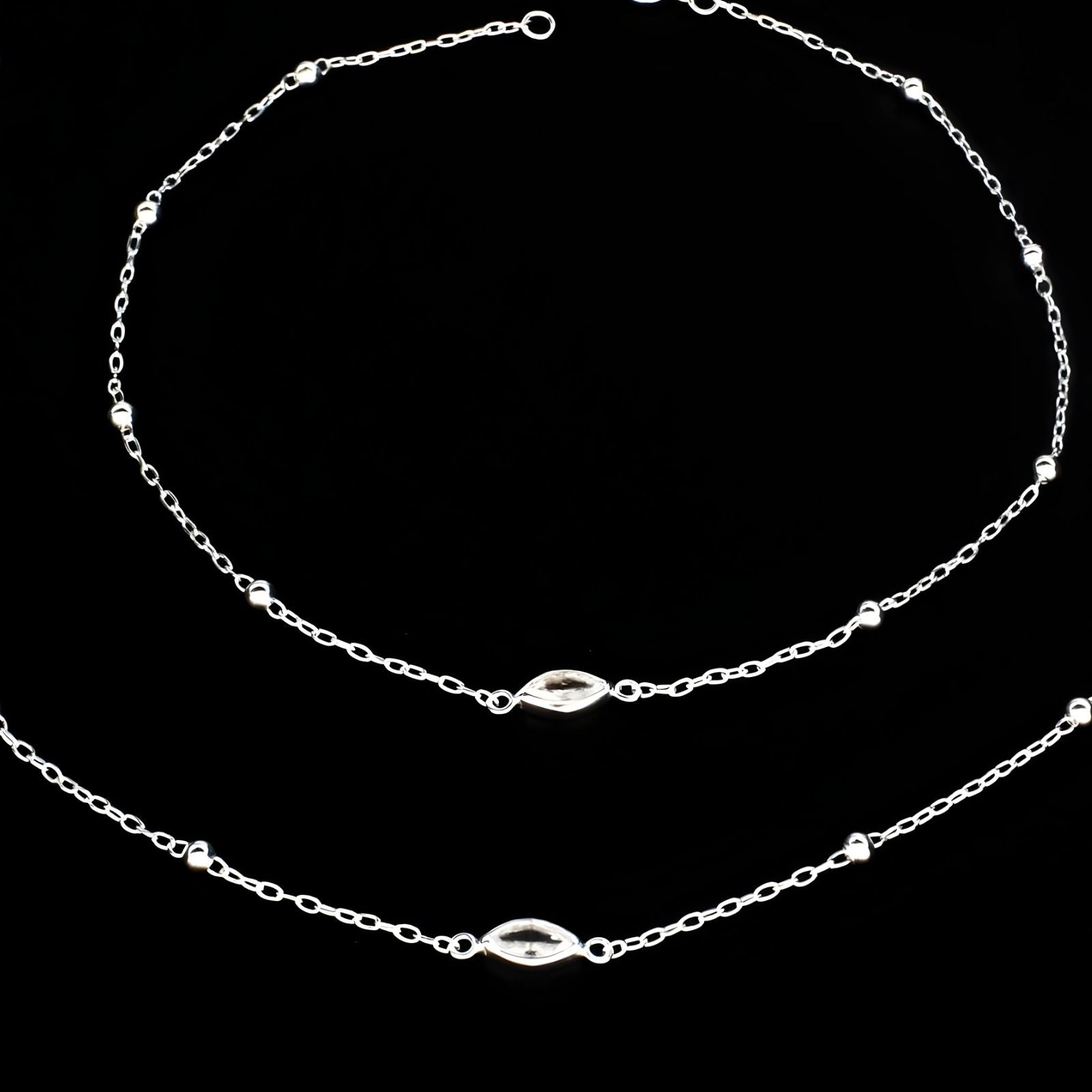 Elevate your ankle jewelry collection with this exquisite pair of sterling silver anklets, meticulously crafted from 925 sterling silver. Each piece features delicate white cubic zirconia stones set along an elegant beaded chain, creating a sophisticated sparkle that complements any occasion. Measuring 10.2 inches, these anklets offer the perfect fit for most wearers. The refined design balances minimalist aesthetics with timeless elegance, making them ideal for both everyday wear and special celebrations. Authentic sterling silver ensures durability and lasting brilliance, while the lightweight construction provides all-day comfort. A versatile addition to any jewelry wardrobe.