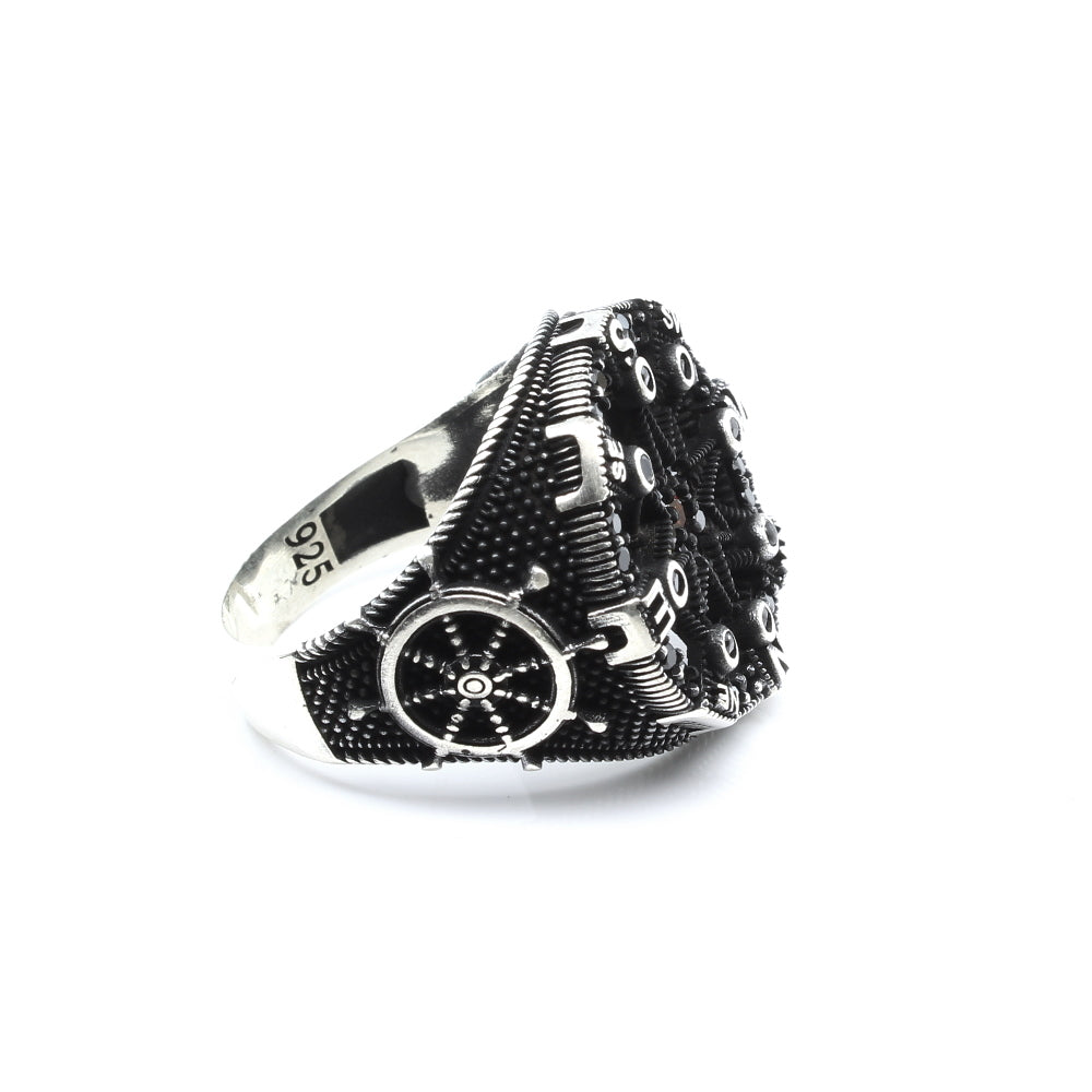 925 Sterling Silver Oxidized Turkish Style CZ Men's ring
