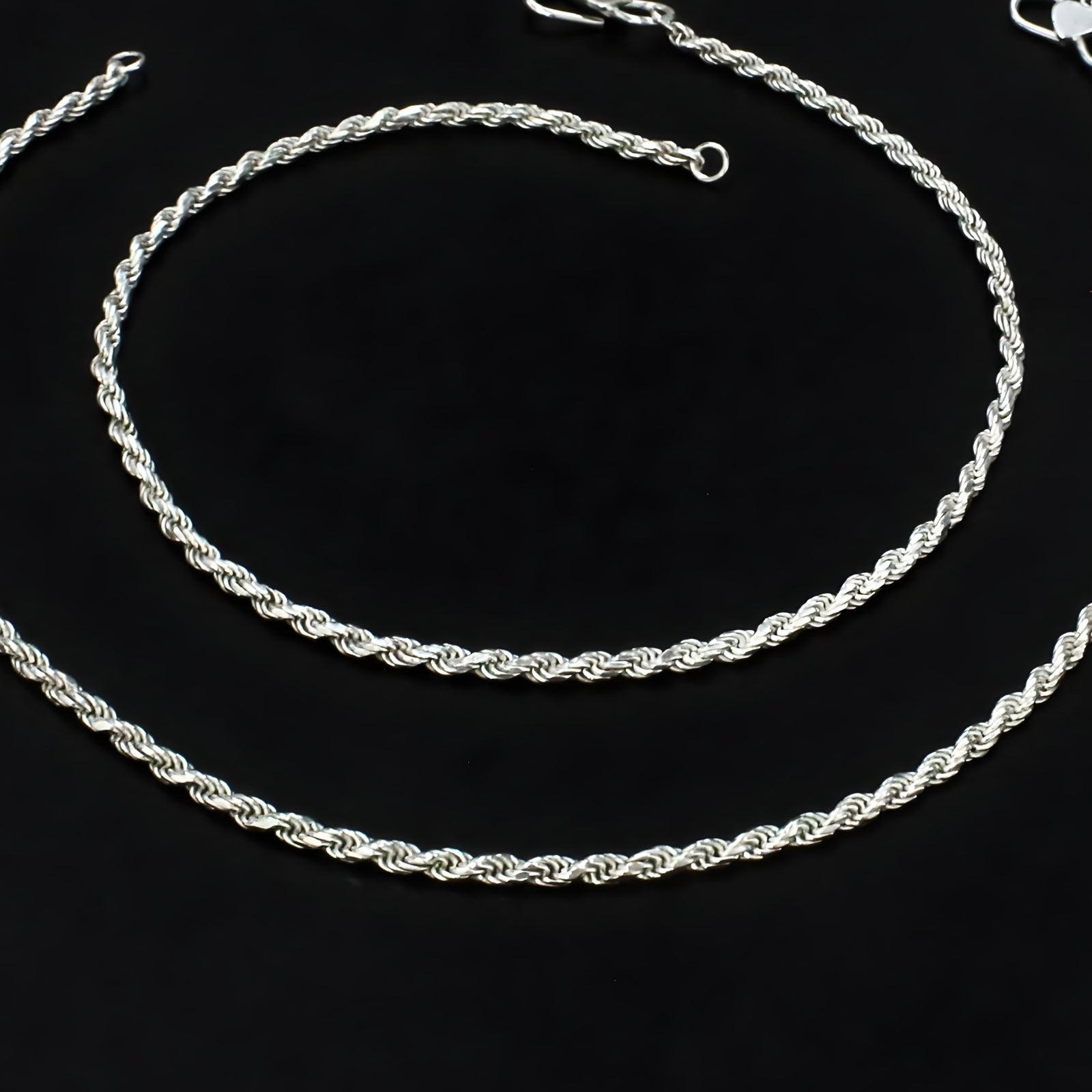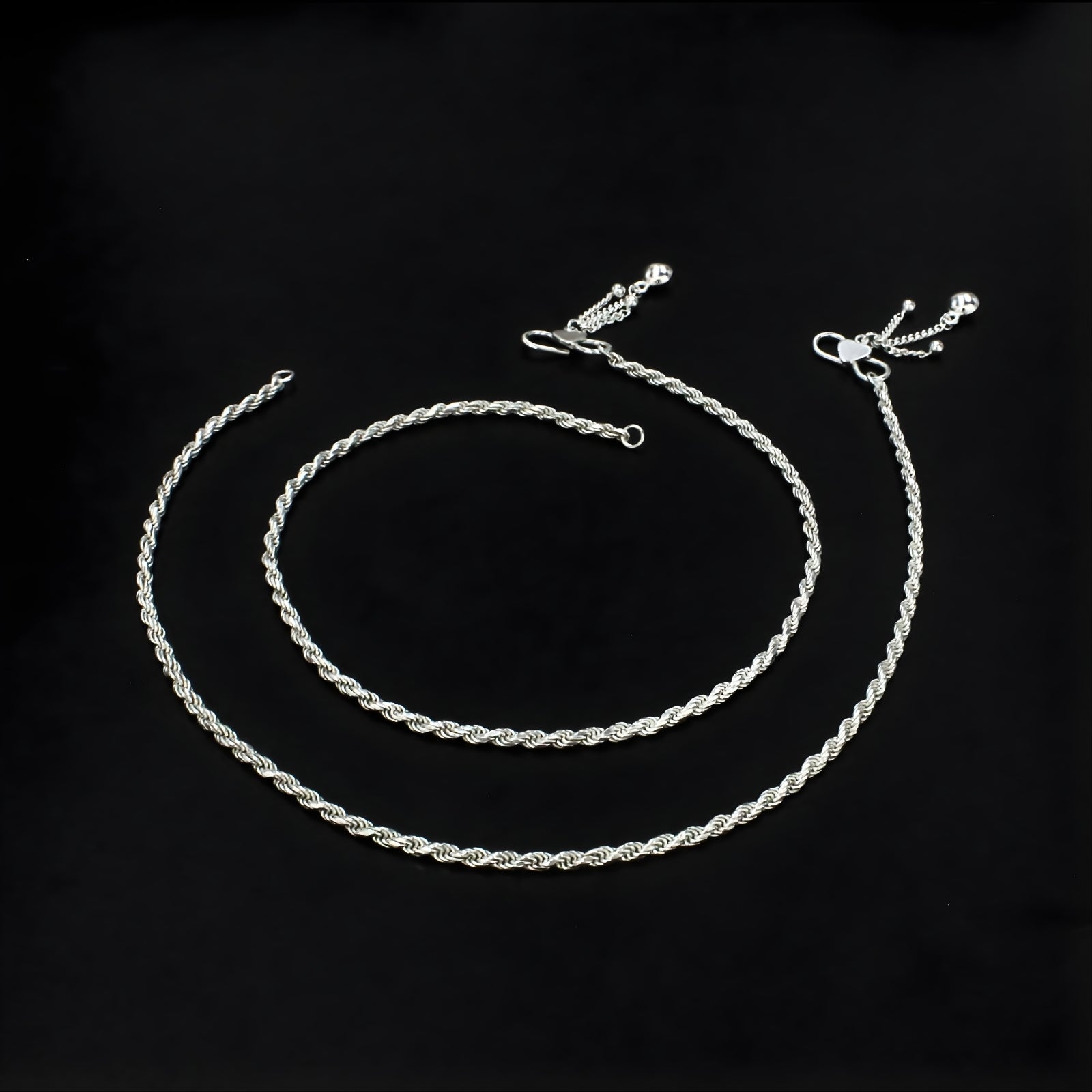 925 Sterling Silver rope design women payal Chain Anklet Pair 10.3"