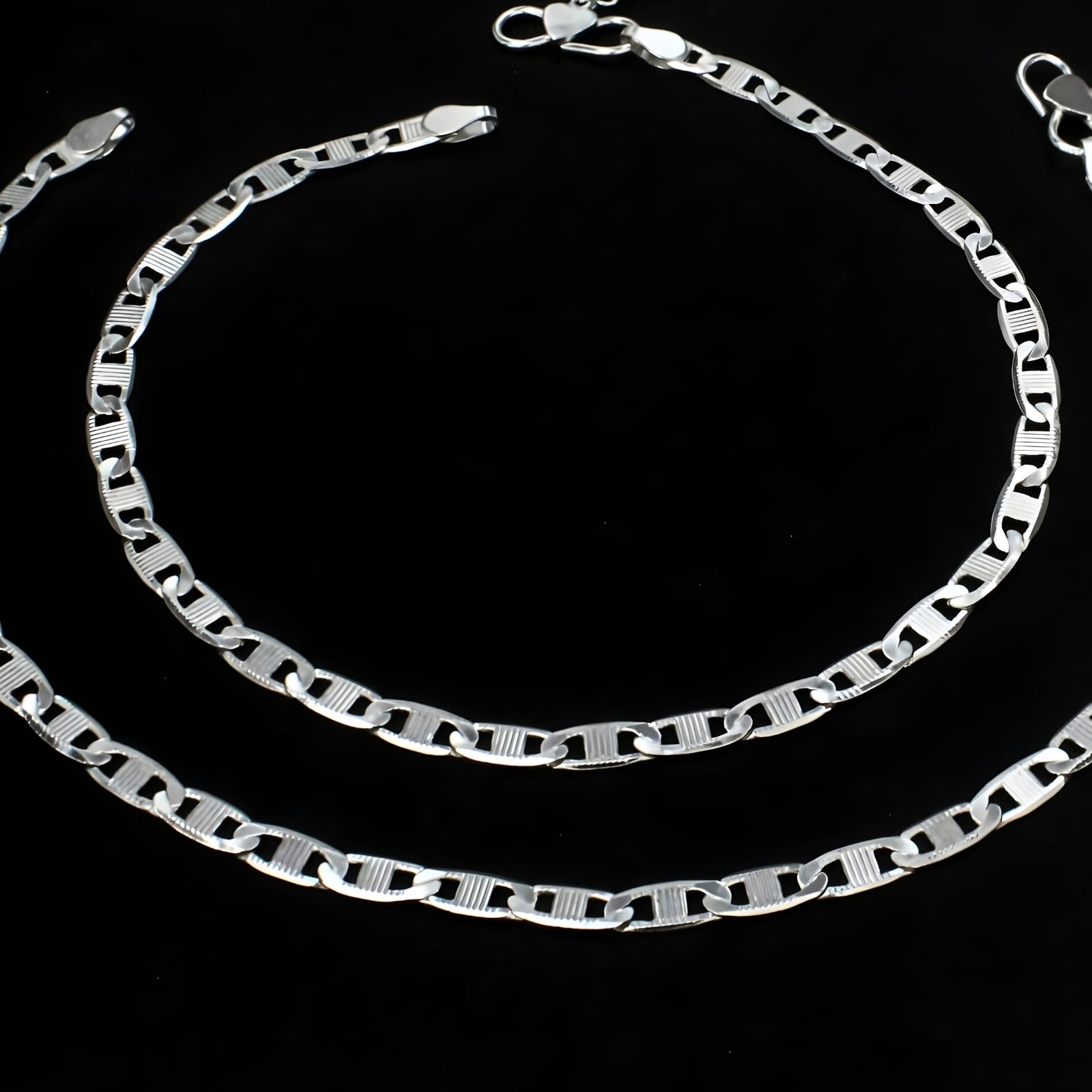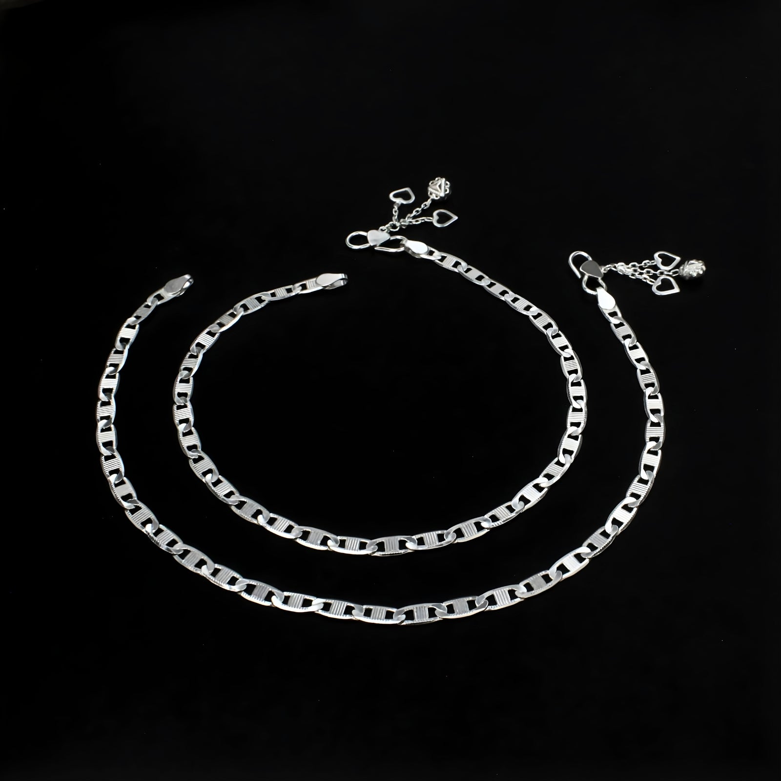 Elegant 925 sterling silver anklet pair featuring a classic flat mariner link design. Each piece measures 10.3 inches with a refined 4.3mm width, weighing 13.840 grams total. Crafted in India with authentic hallmarked silver, this traditional payal combines timeless appeal with everyday wearability. Perfect for layering or wearing solo, the secure link construction ensures durability. An ideal choice for festive occasions or daily elegance.