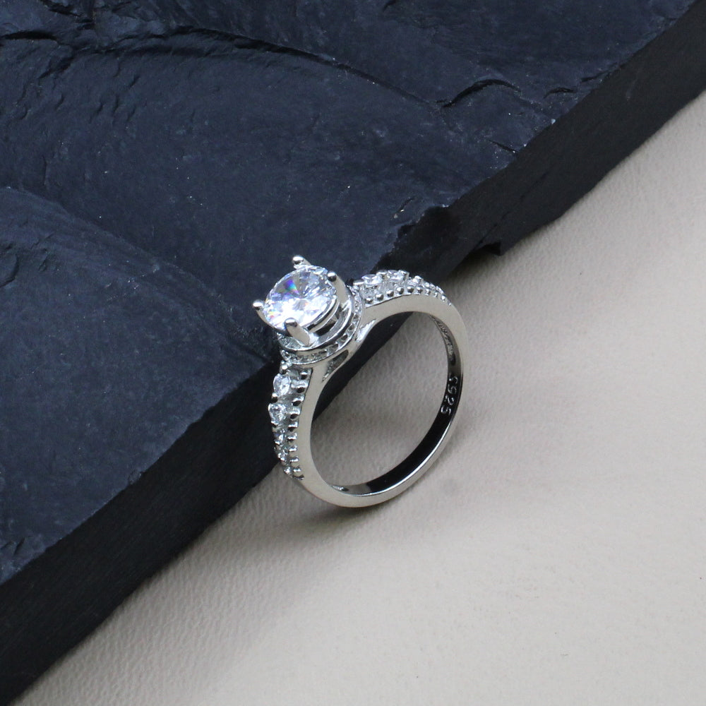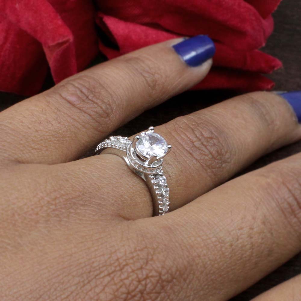 Beautiful Solid Sterling Silver Women Ring White CZ Studded Platinum Finish