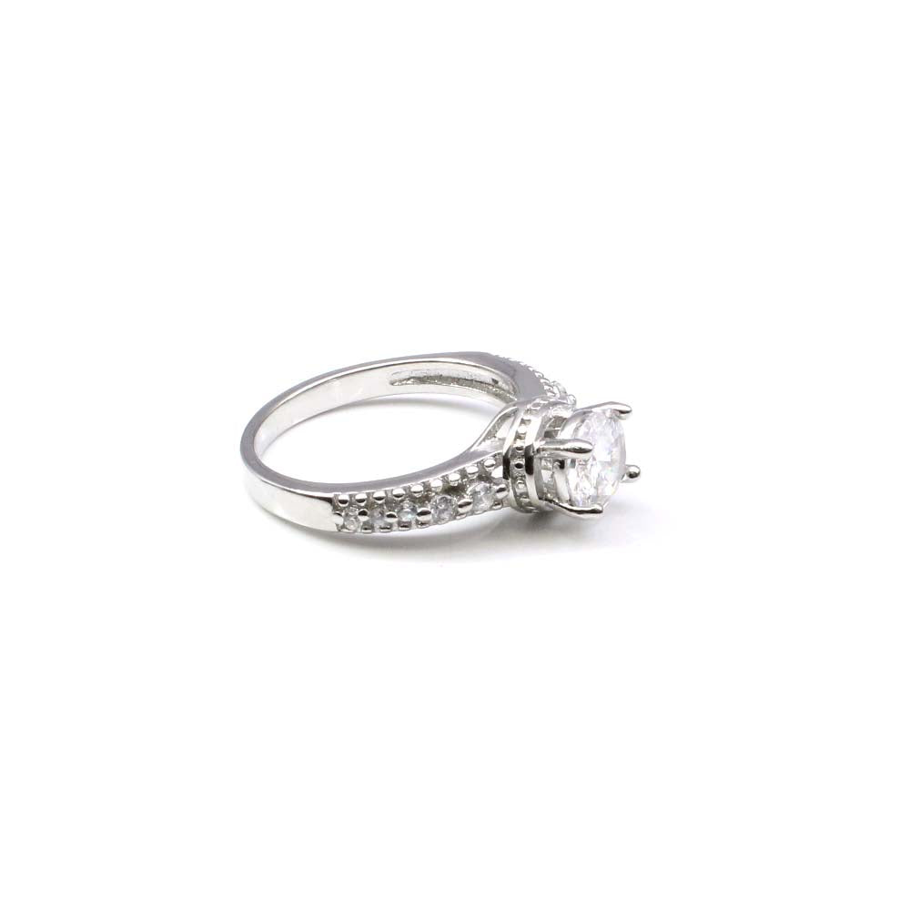 This beautiful solid sterling silver women's ring adds a special touch of elegance to any wardrobe. Featuring a platinum finished face with a white CZ centerpiece, this ring is sure to turn heads. Crafted from solid sterling silver, it's sure to last through any special occasion.