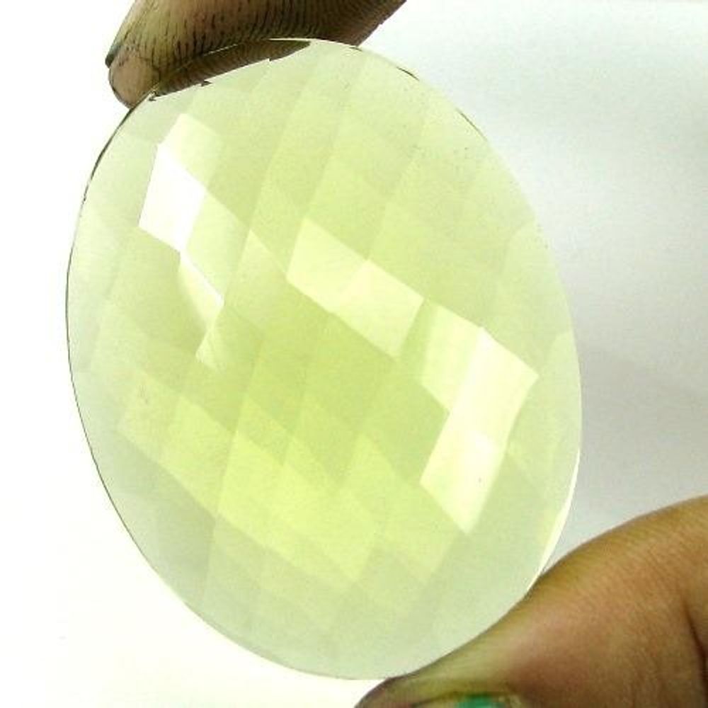 CERTIFIED 60.72Ct A+ NATURAL Lemon Quartz Oval Checker Faceted Gemstone
