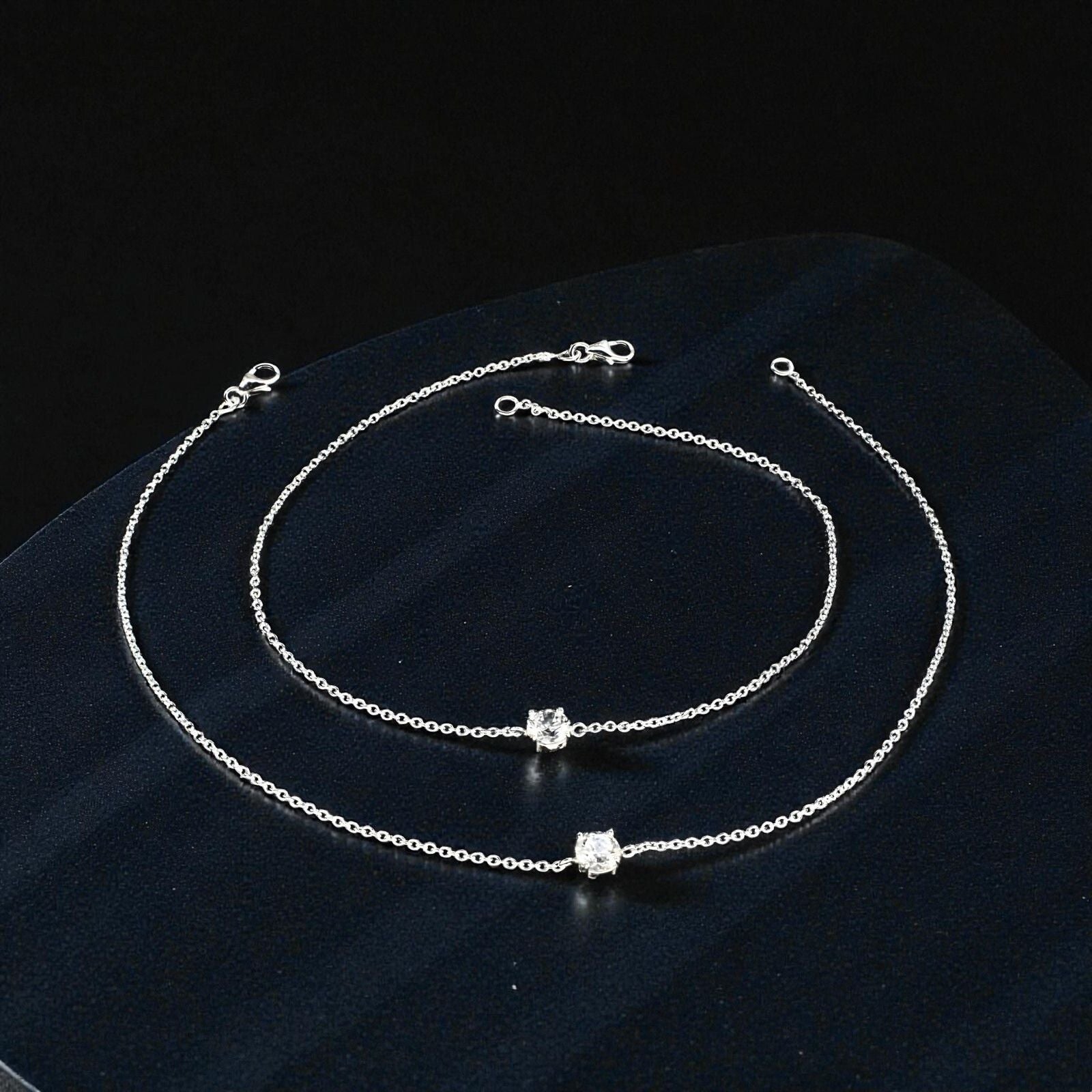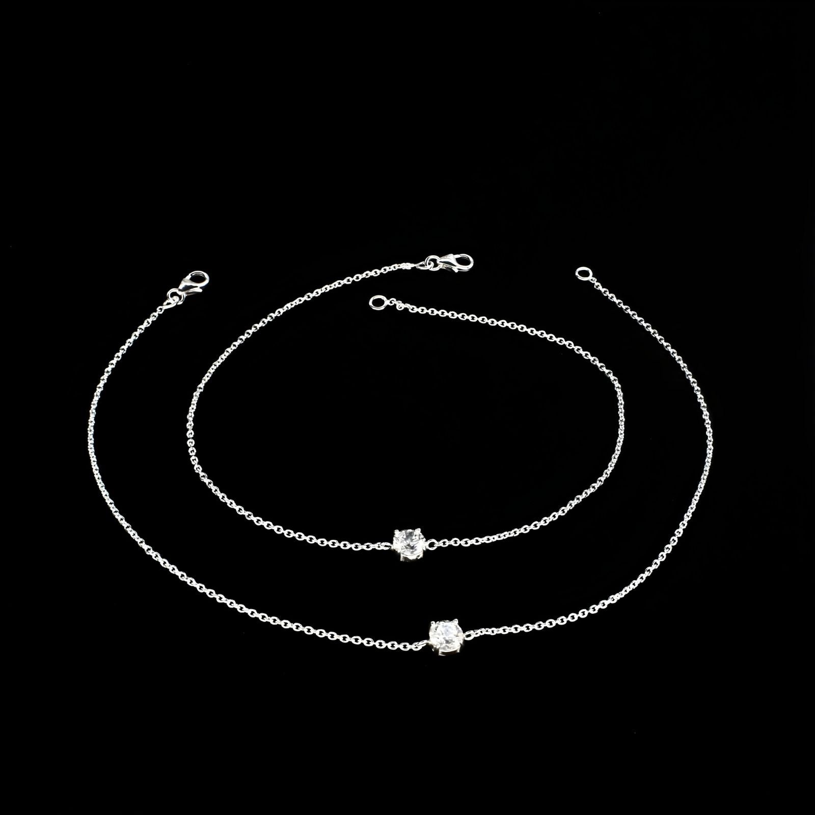 Adorn your feet with this stunning pair of 925 sterling silver anklets, featuring brilliant white cubic zirconia stones set along an elegant chain design. Measuring 10.3 inches, these girlish anklets deliver timeless sophistication with a contemporary sparkle. The premium sterling silver construction ensures lasting quality and a radiant polish that resists tarnishing. Each stone is carefully positioned to create a captivating shimmer with every step. Perfect for special occasions, evening wear, or everyday elegance, this versatile pair seamlessly transitions from casual to formal settings, making it an essential addition to any jewelry lover's collection.