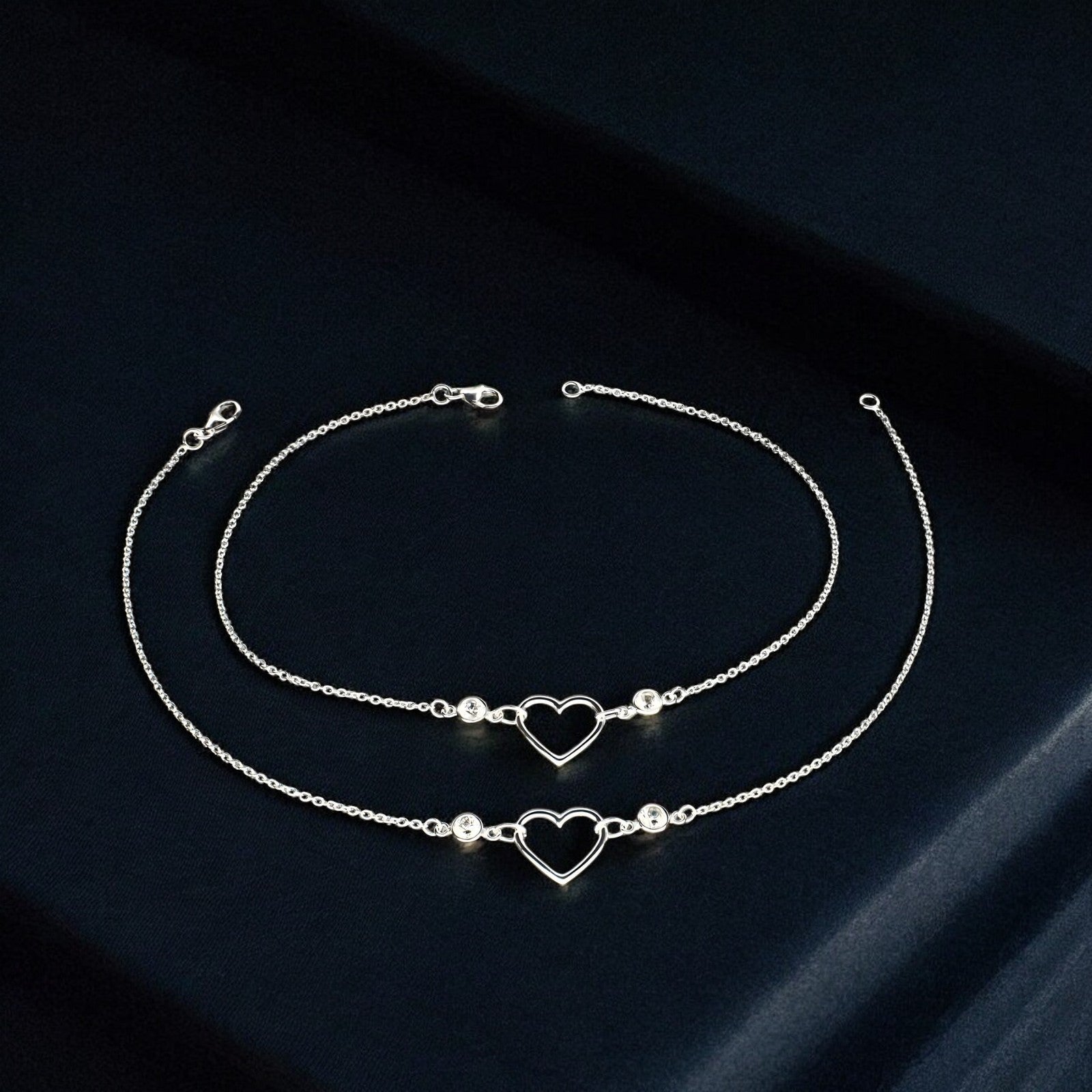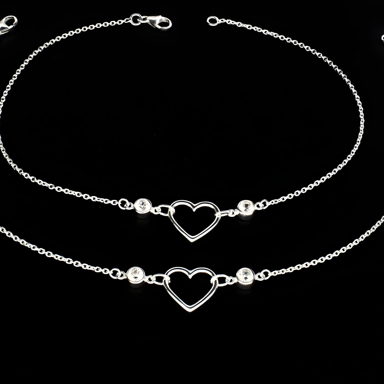 Exclusive 925 Sterling Silver girlish White CZ heart Chain Anklet Pair 10.3"