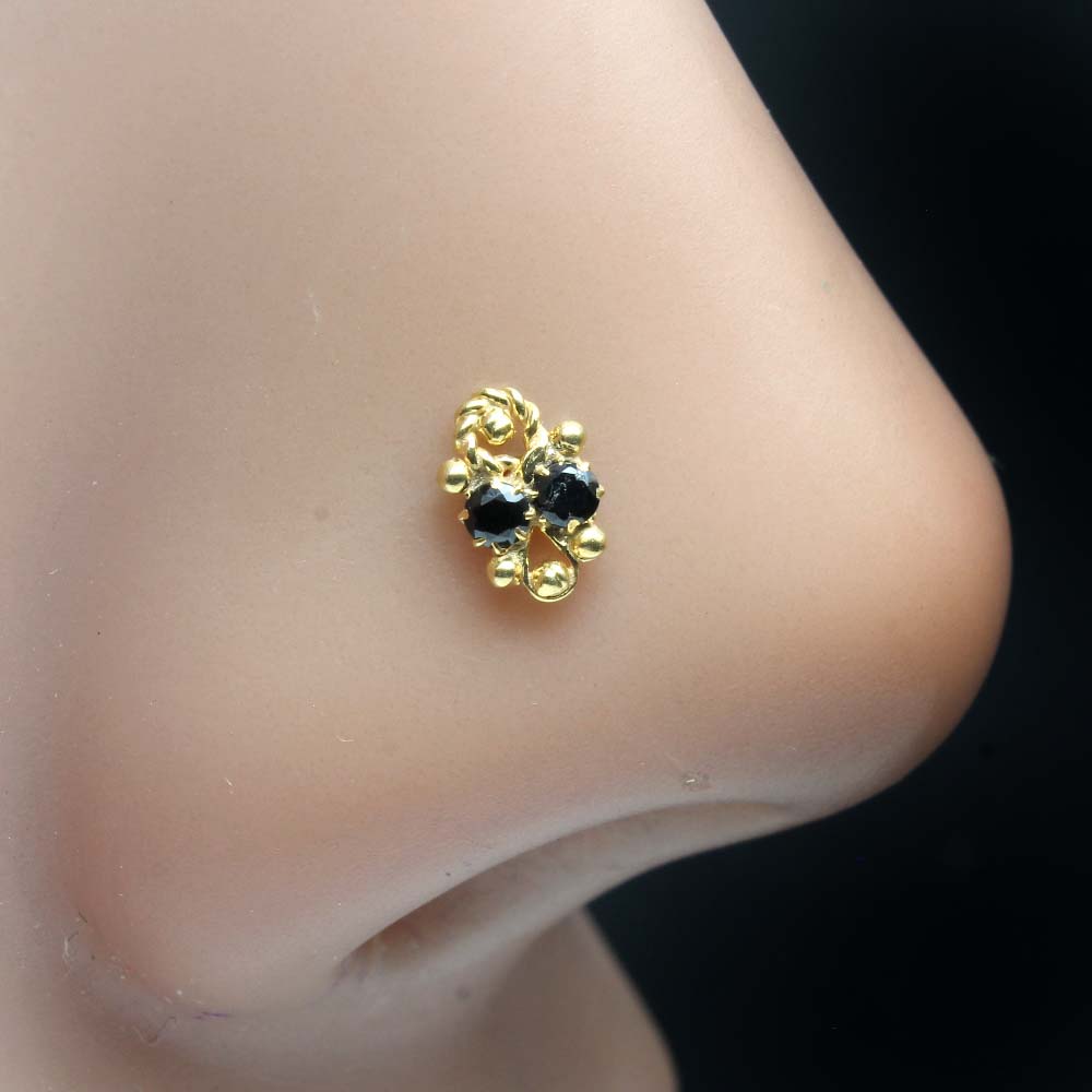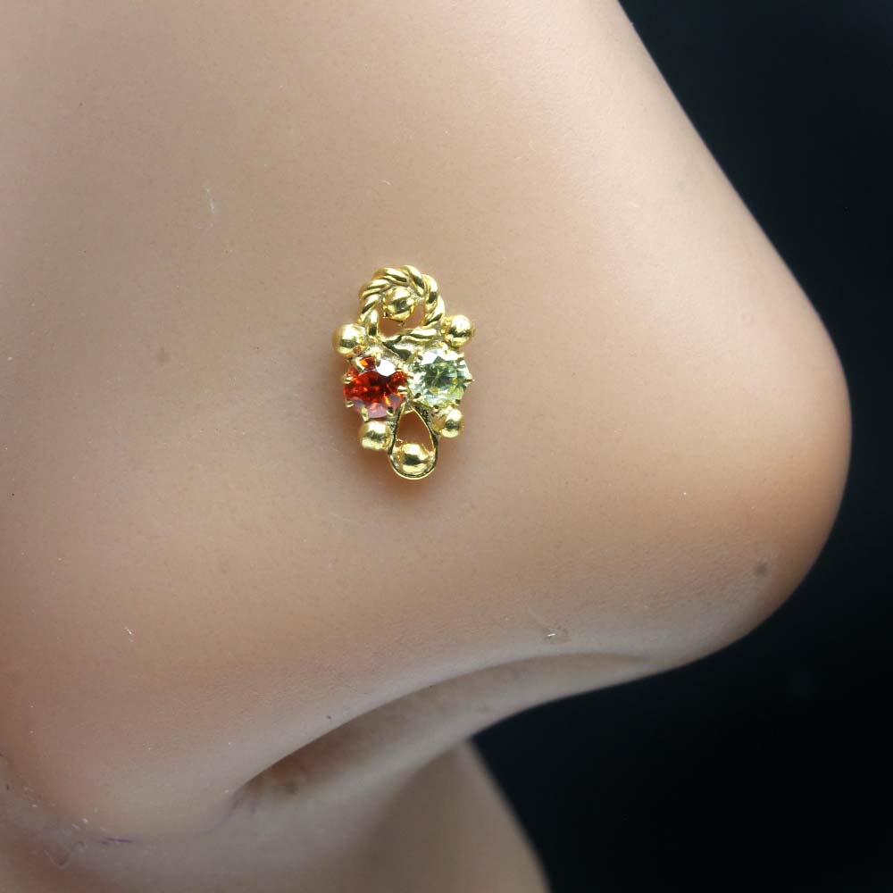 Ethnic Vertical Gold Plated Indian Women Style Nose Studs CZ Twist nose ring 24g