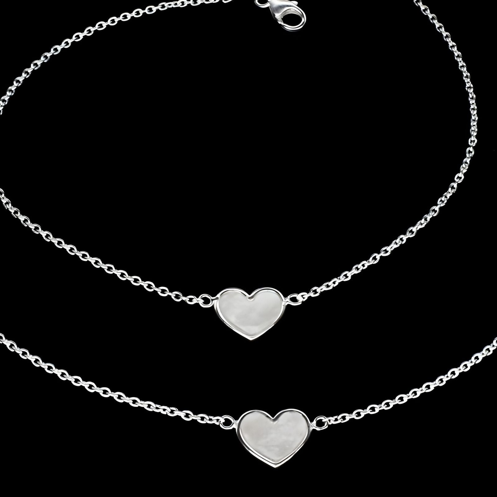 Enhance your beach collection with this refined pair of sterling silver anklets, featuring delicate heart charm accents ideal for coastal getaways. Meticulously crafted from premium 925 sterling silver, these anklets balance minimalist elegance with sentimental appeal. The subtle heart charms are strategically positioned along the chain, creating a graceful aesthetic that complements sun-kissed skin. At 10.5 inches, they offer an optimal fit for most wearers. The featherlight design ensures comfort during extended wear, whether you're lounging beachside or exploring tropical destinations. Authentic sterling silver provides exceptional durability and natural resistance to tarnishing, preserving the anklets' lustrous finish. These versatile pieces transition effortlessly from resort wear to everyday styling, making them an essential addition to any jewelry wardrobe.