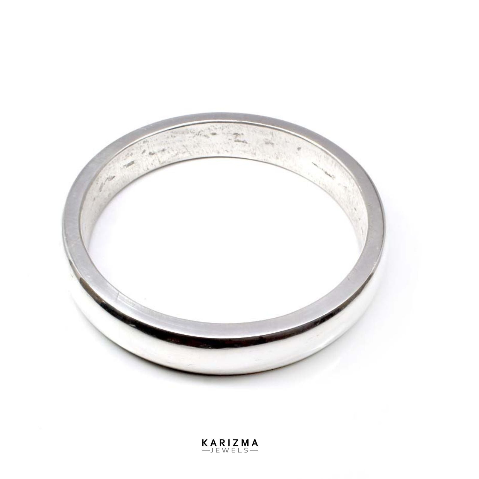 Solid & Jointless Pure Silver Men's Kada by Karizma Jewels. This bangle is expertly crafted using a specialized casting procedure to create a completely jointless design. Made from pure silver, these "Chandi ka Bejod Kada" are not only stylish but also hold significant astrological value and are often used in Red Book remedies.