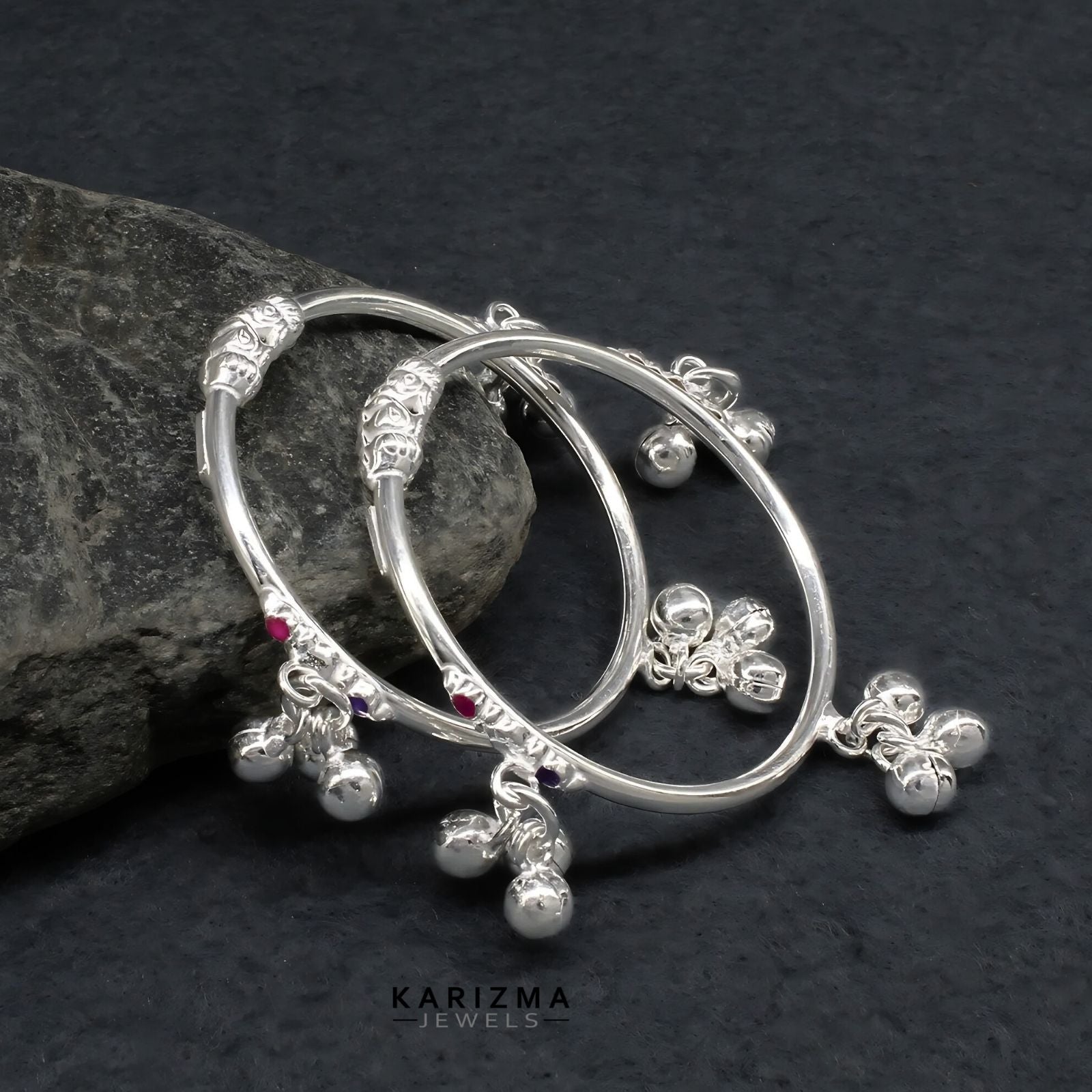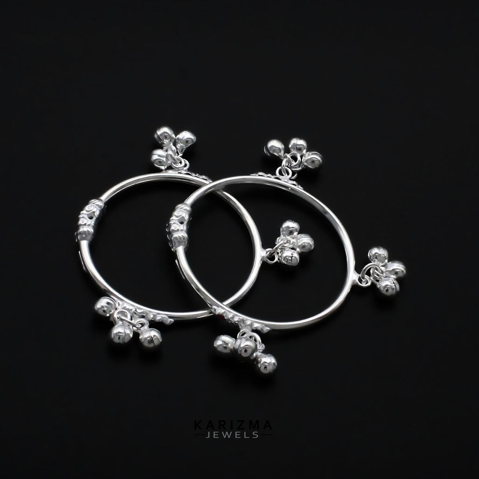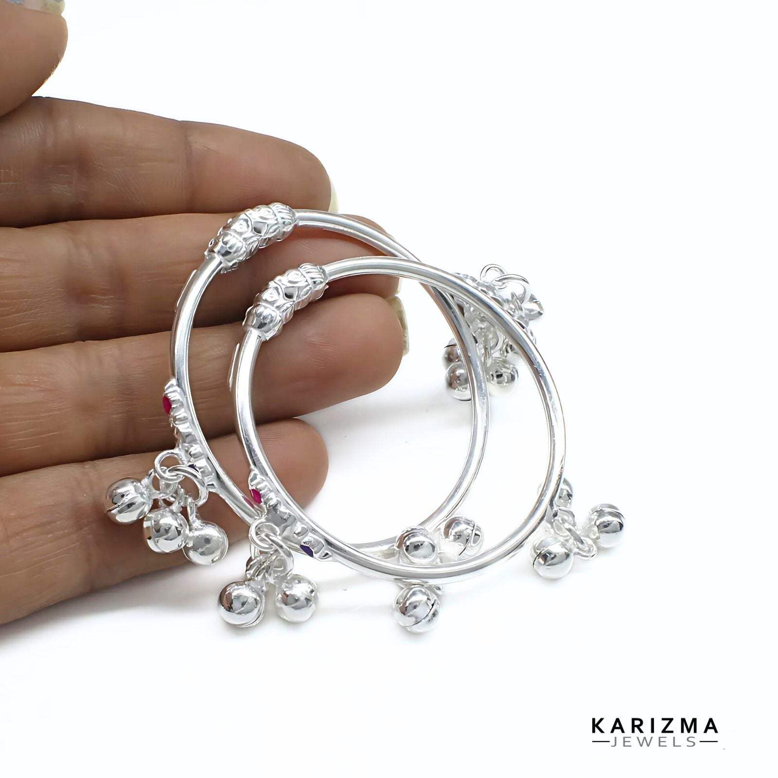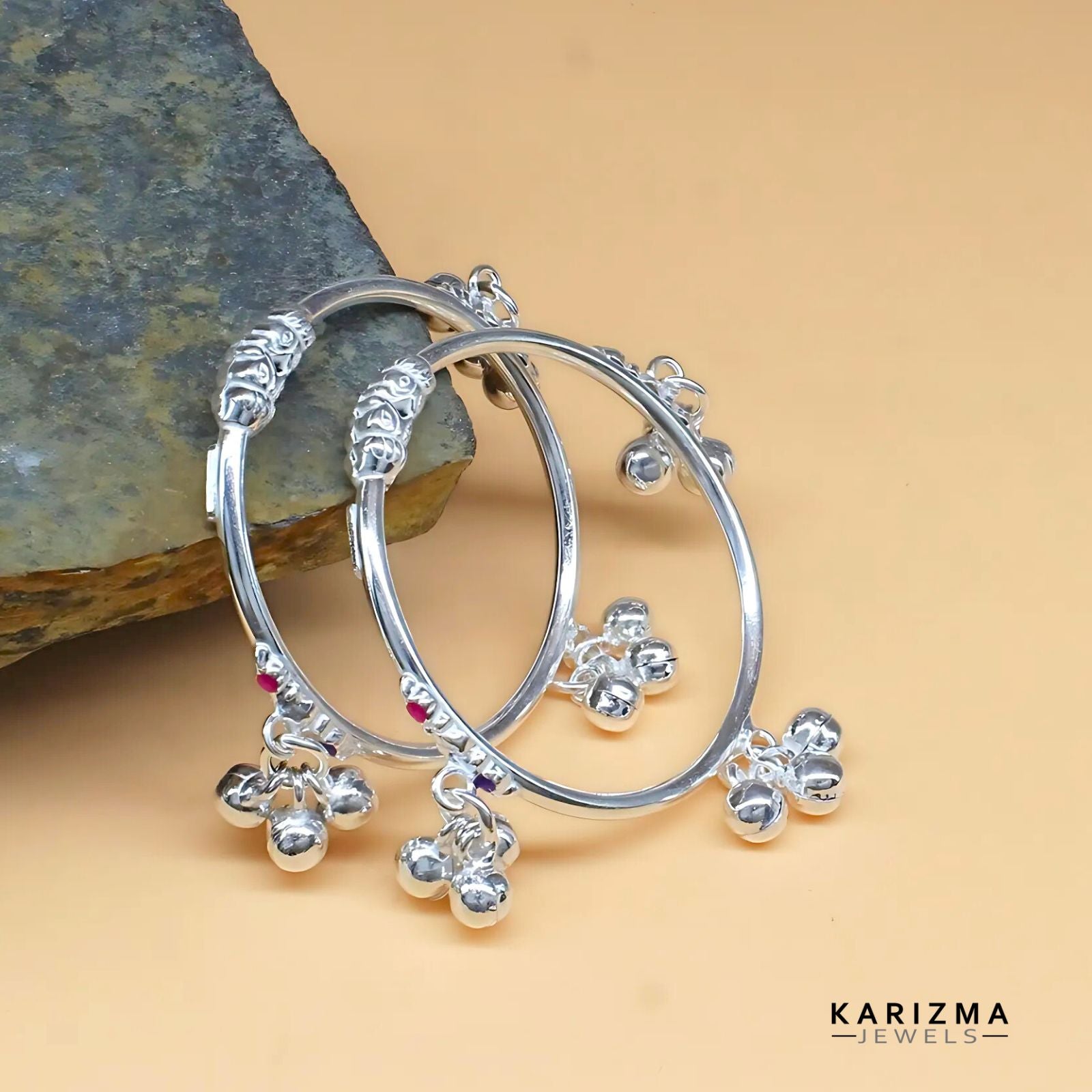 Crafted from genuine silver, this pair of bangles is a charming accessory for kids. The hollow design and jingle bells add a playful touch, while the durable material ensures long-lasting wear. Perfect for dressing up or everyday wear, these bangles are a versatile and stylish addition to any child's jewelry collection.