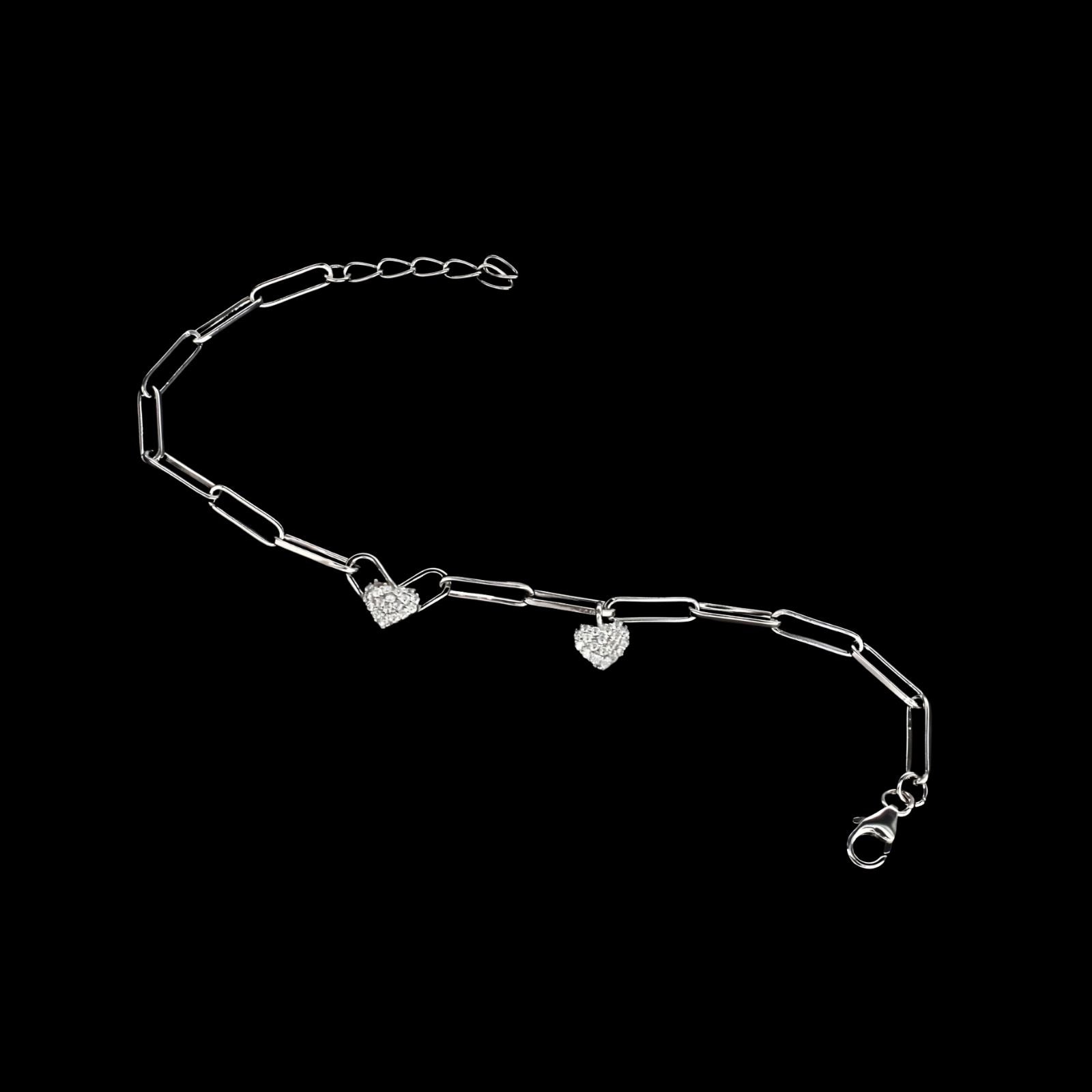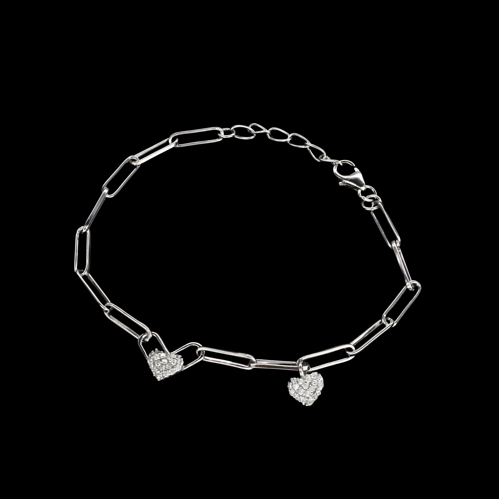 Crafted from 925 sterling silver, this bracelet combines timeless elegance with contemporary design. The delicate paperclip chain provides a modern aesthetic, while charming white cubic zirconia hearts add a touch of sparkle and sentimentality. Perfect for everyday wear or special occasions, this piece offers versatility and durability. Ideal for gifting to young women who appreciate refined jewelry that balances sophistication with playful charm.