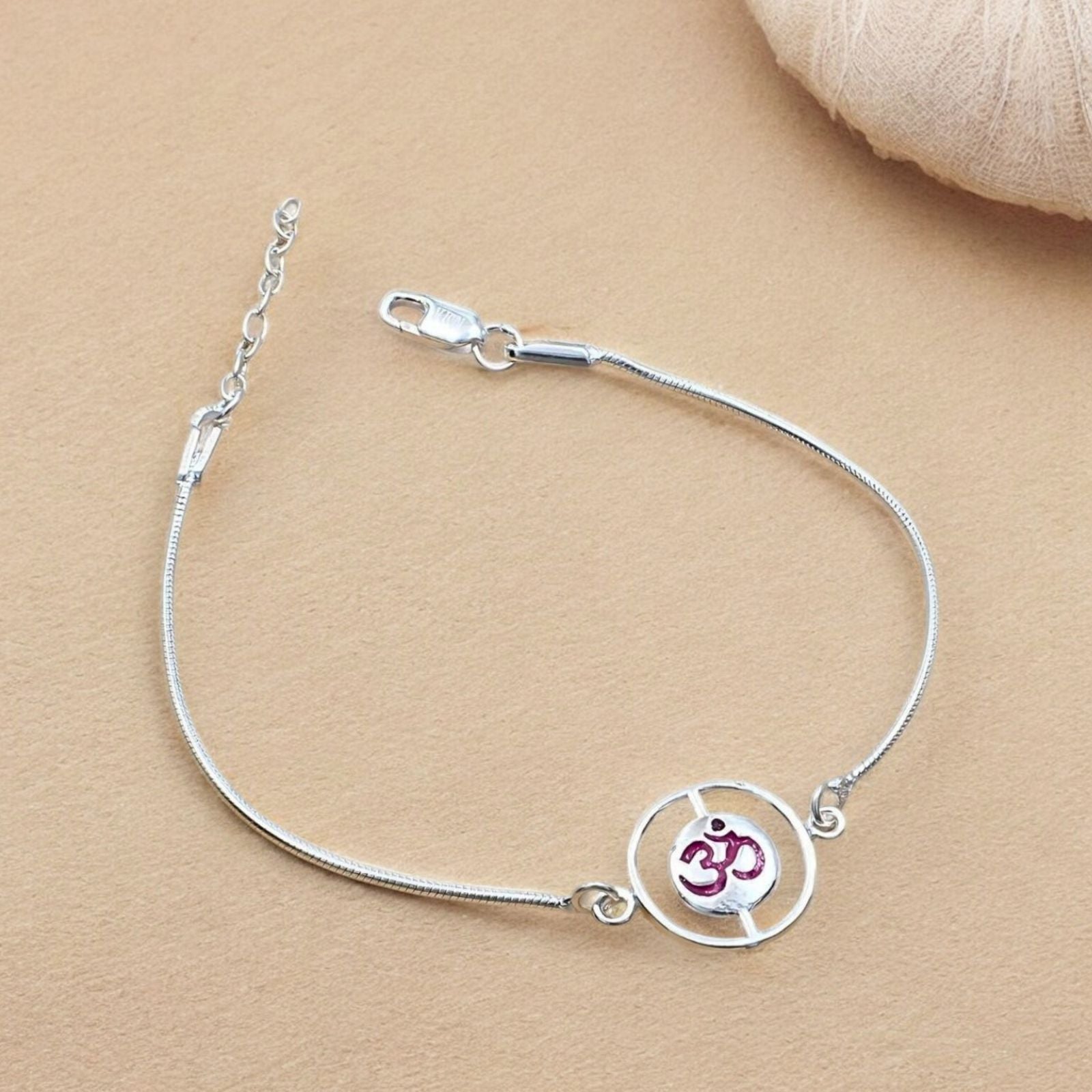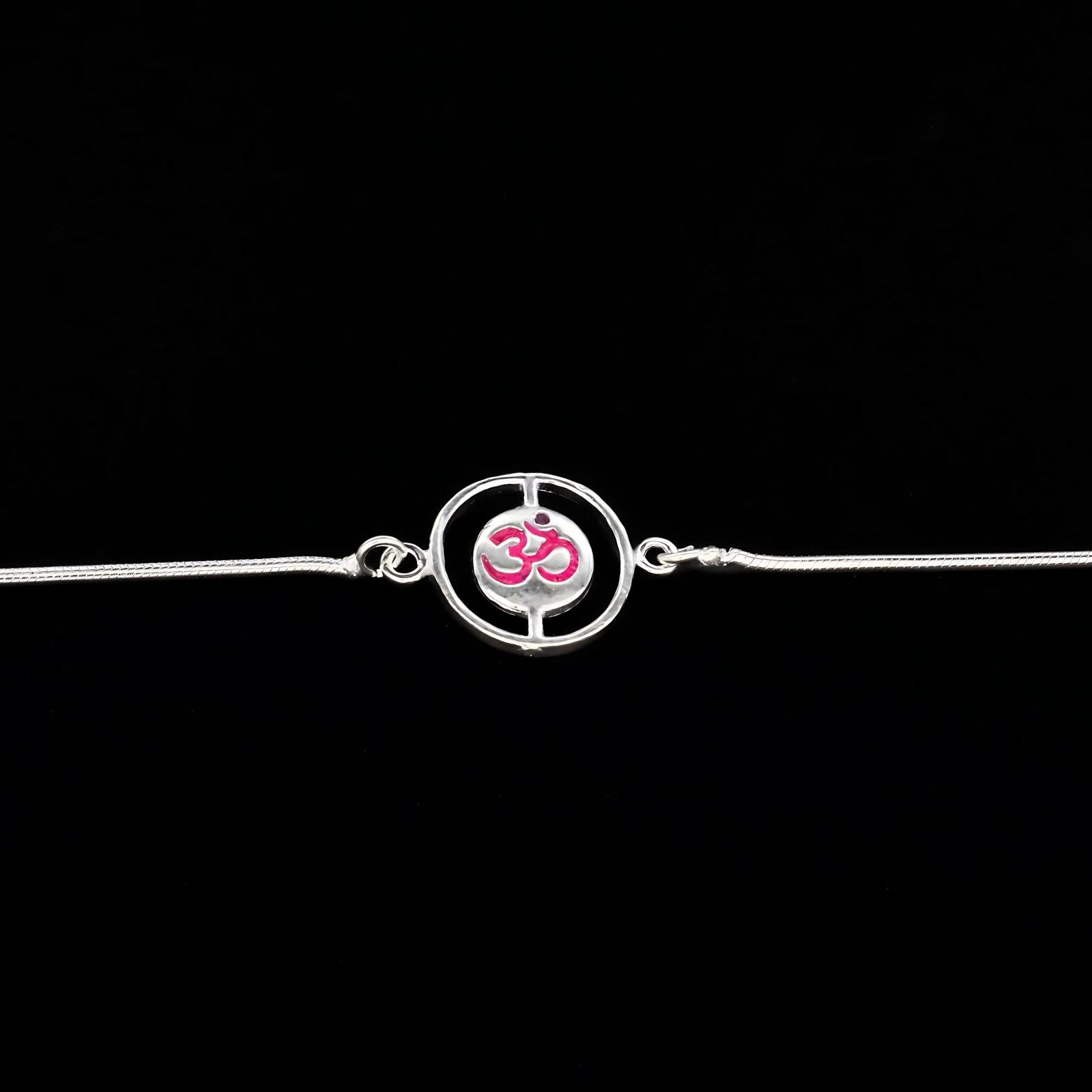 Unique Real Silver Bracelet handmade Om Rakhi 8"