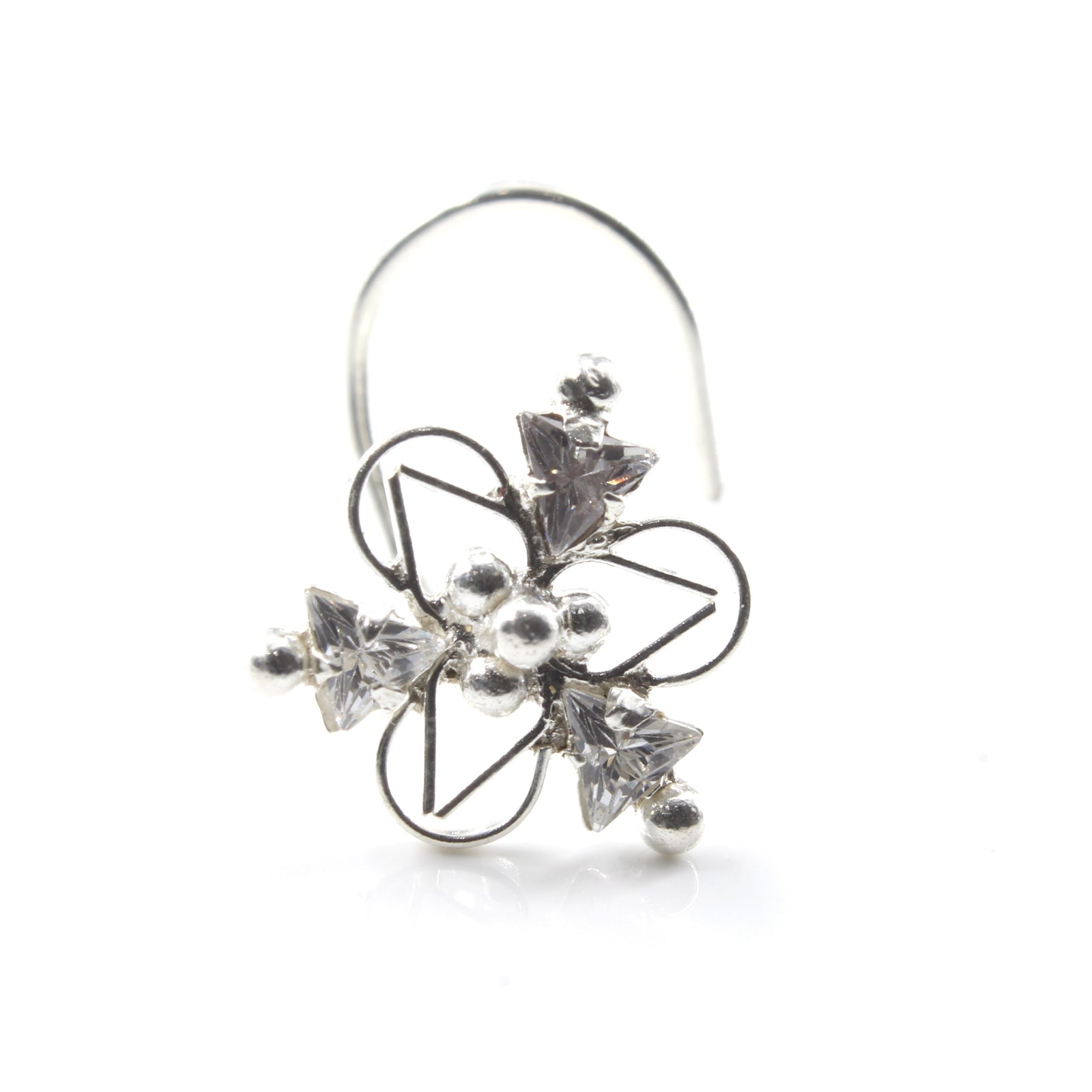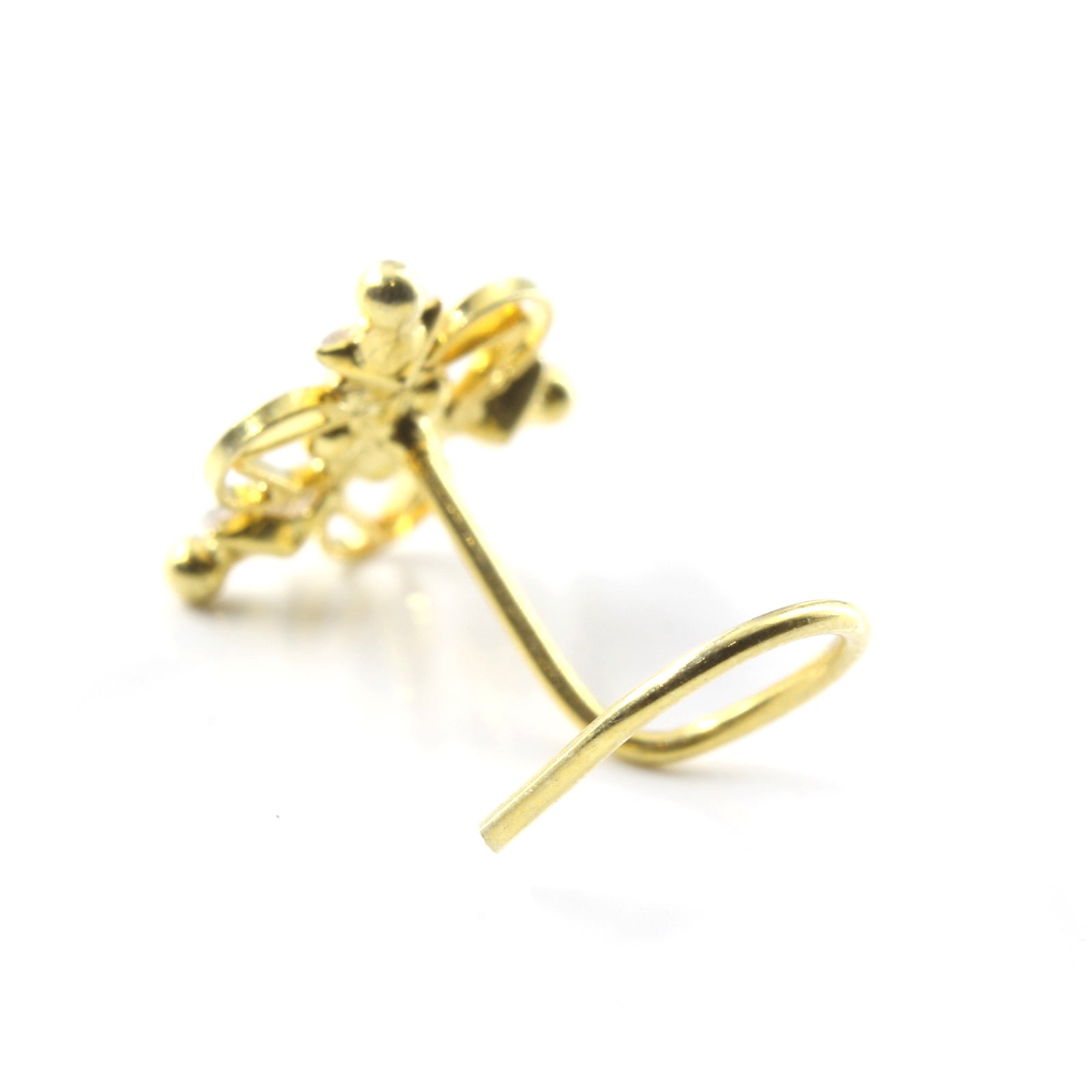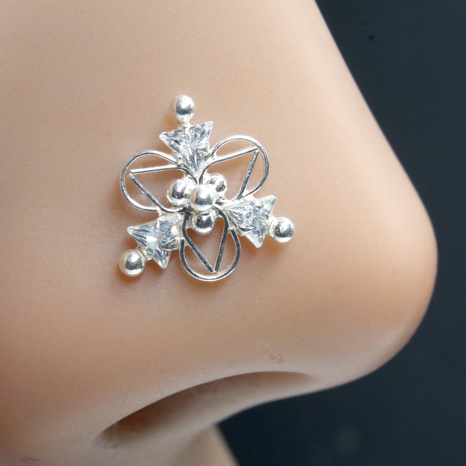 Indian Real Sterling Silver White CZ Women party wear Corkscrew nose ring 22g