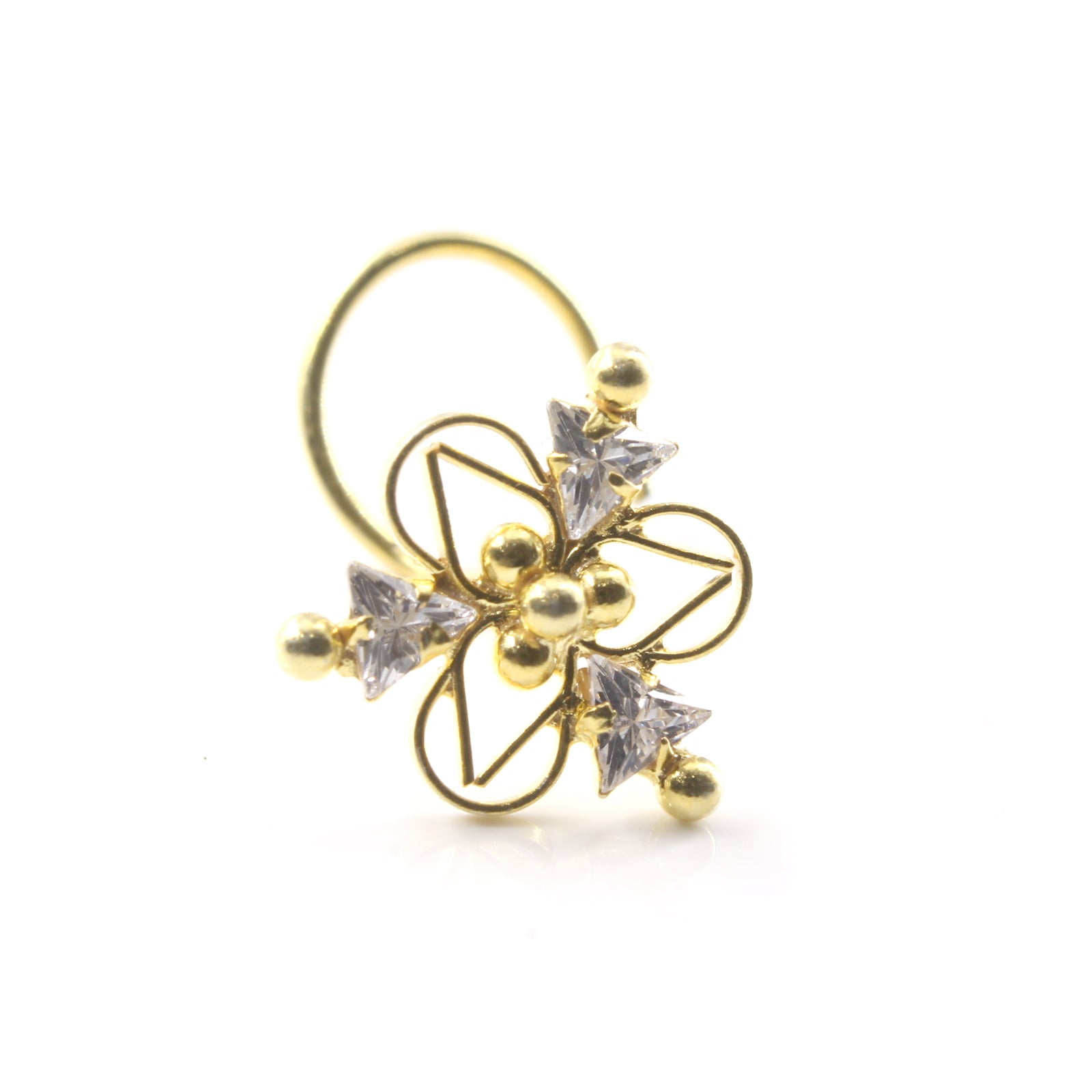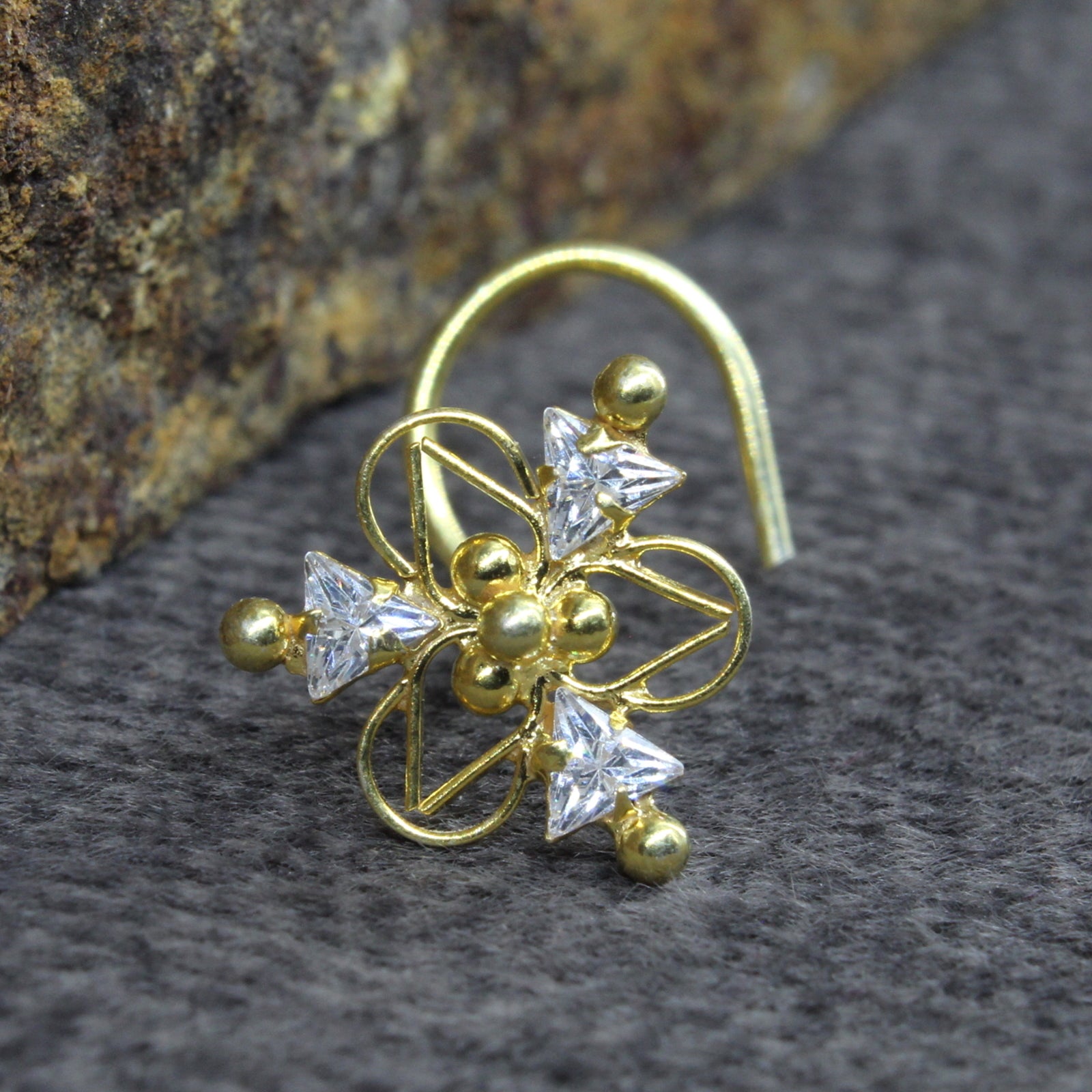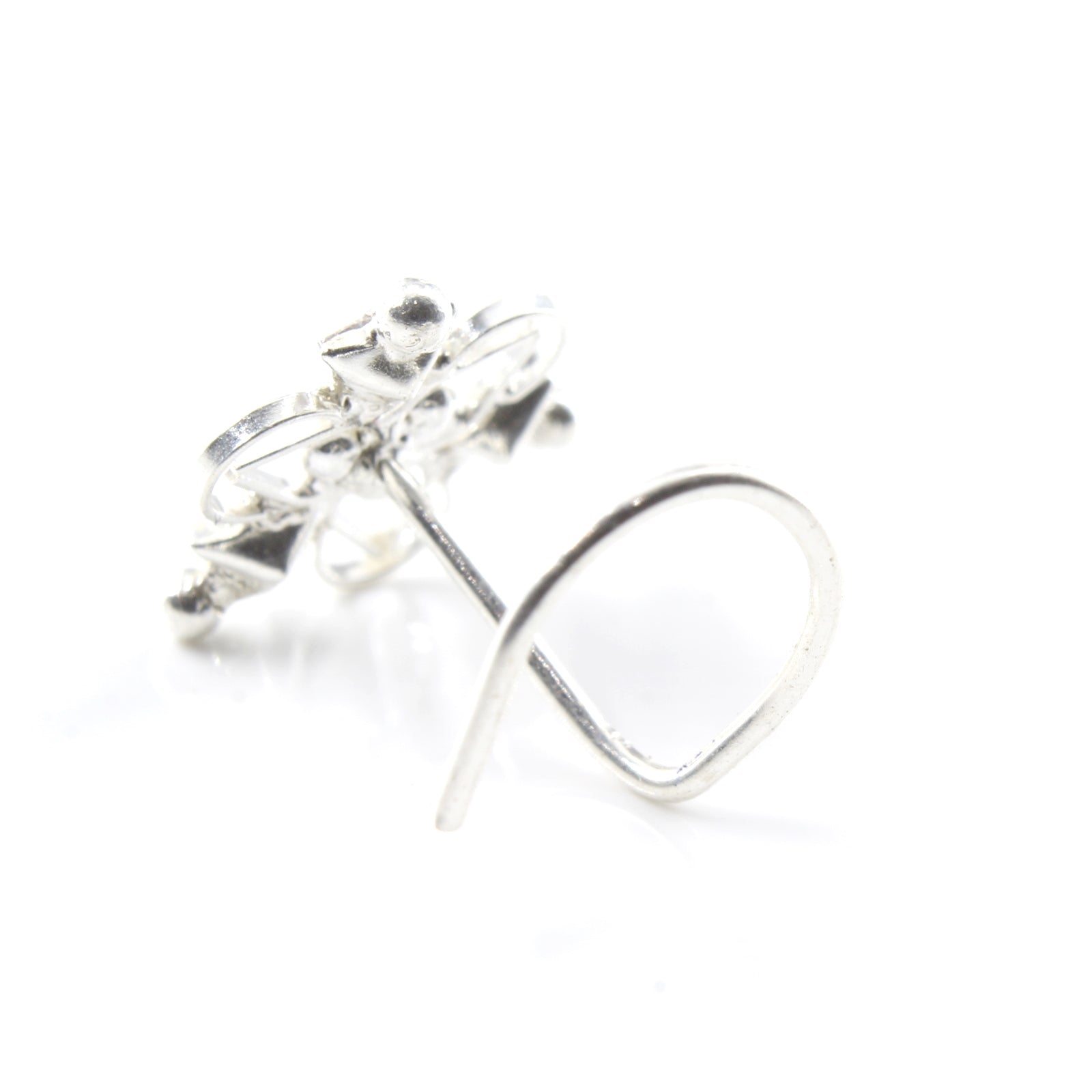 Indian Real Sterling Silver White CZ Women party wear Corkscrew nose ring 22g