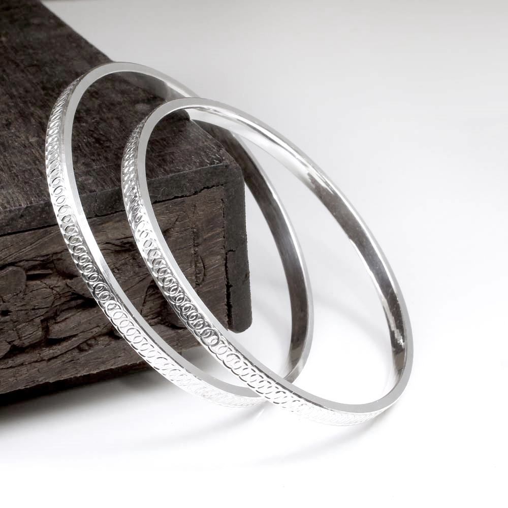 Add a touch of class to any outfit with this sterling silver bangle bracelet. Crafted from solid sterling silver, it is sturdy and durable without sacrificing style. An elegant addition to any jewelry collection.