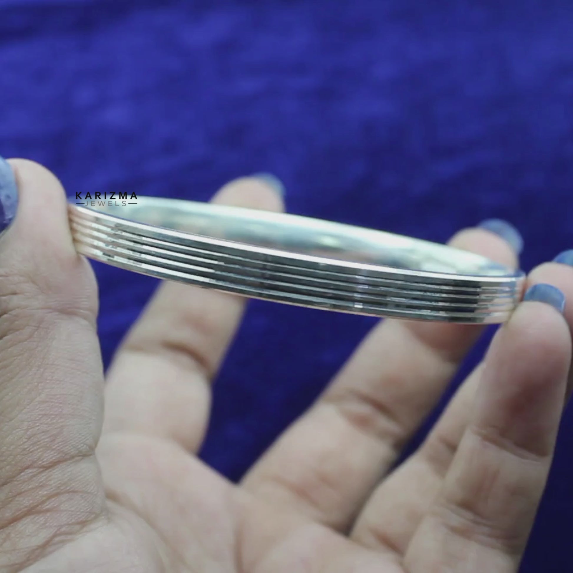 Solid Pure Silver Flat design Men's Bangle 6.6 CM Kada