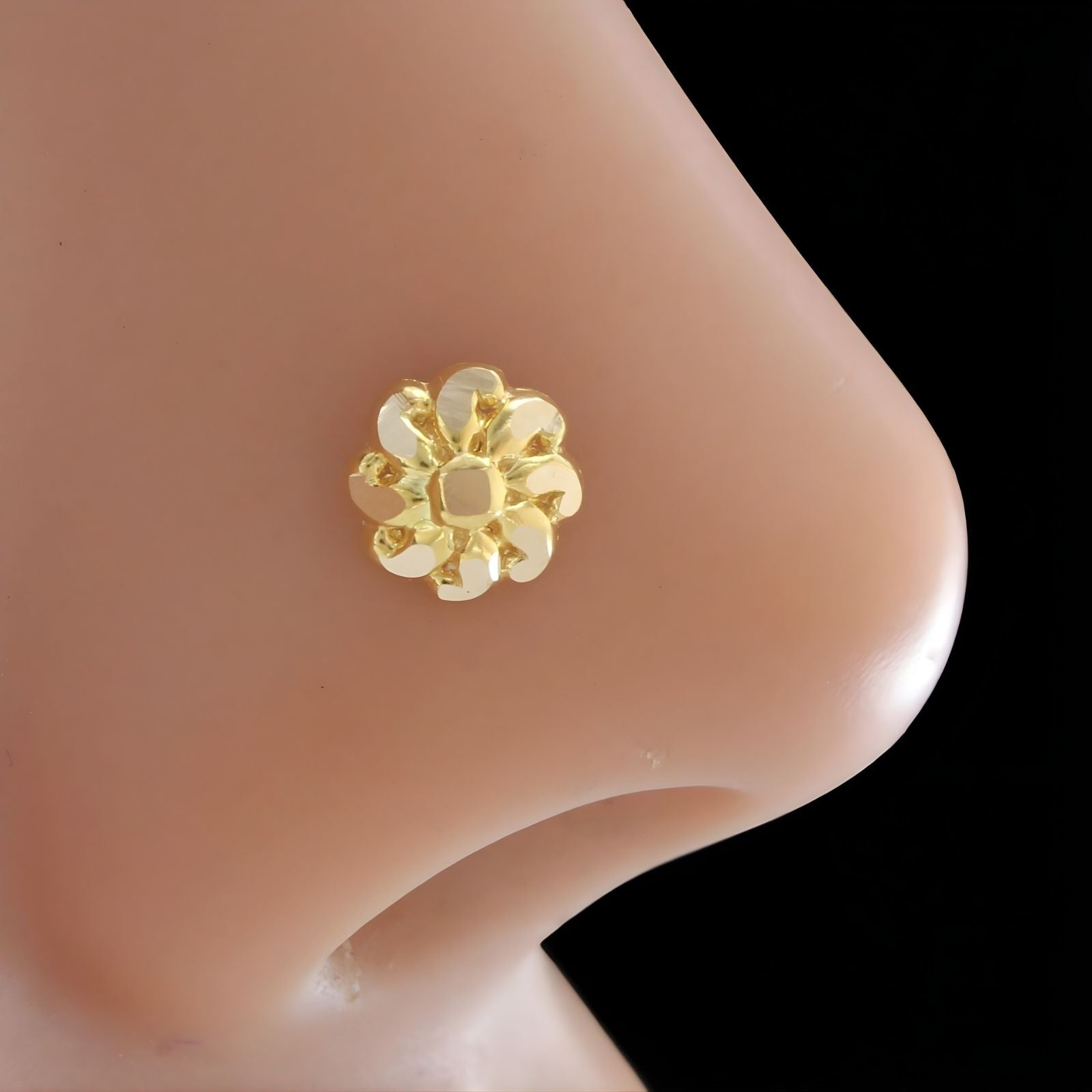 18K Real Gold Two in One women Nose pin cum Earring Gold Screw Back