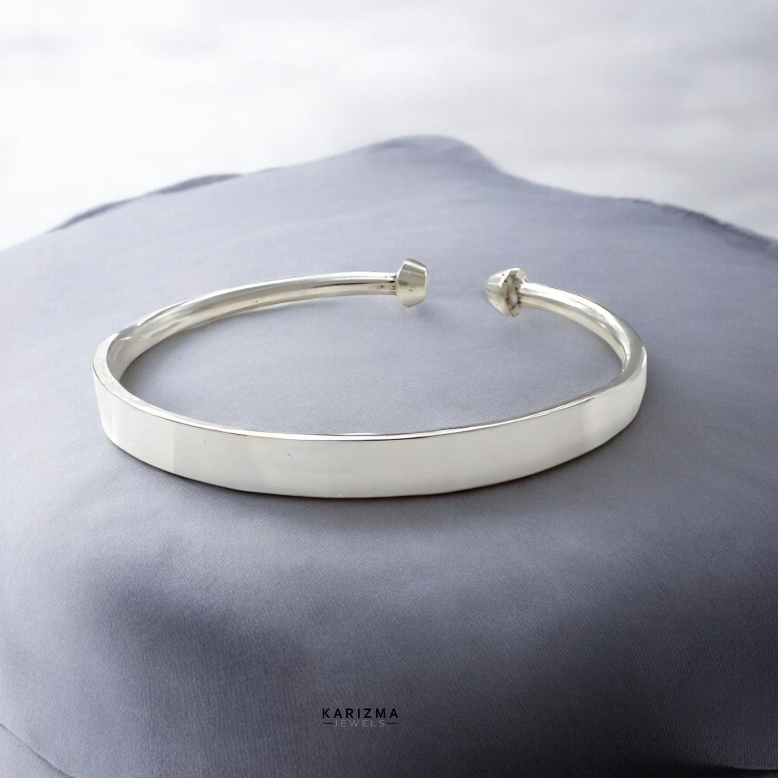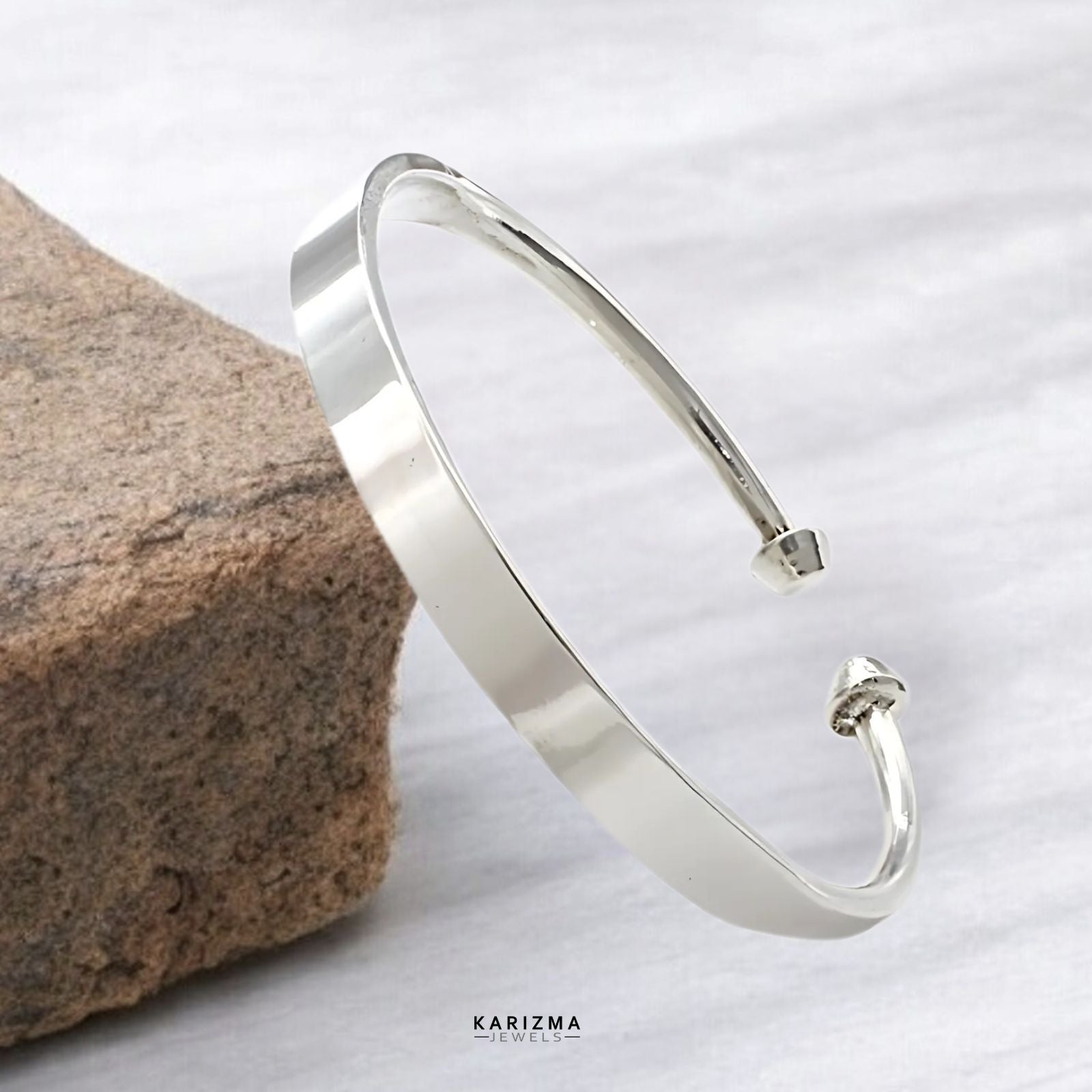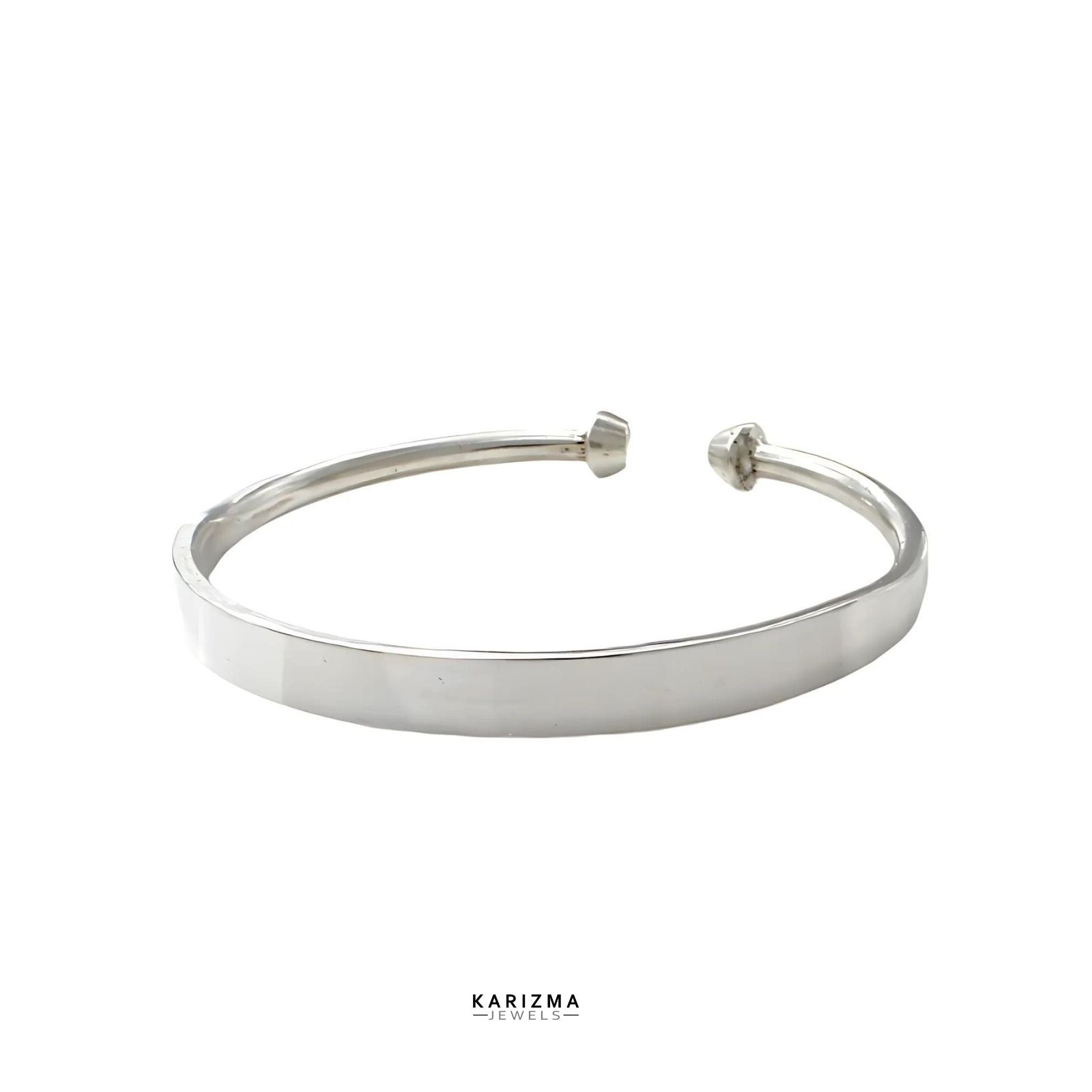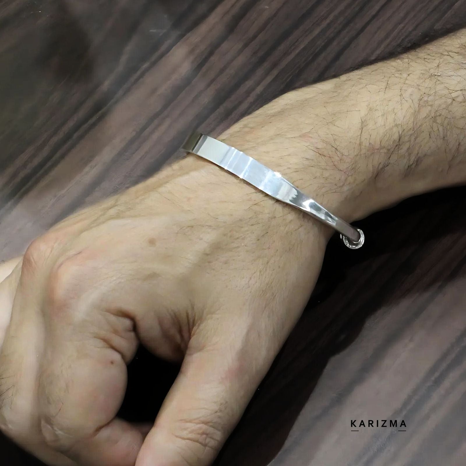 This Pure Silver Men's Bangle Bracelet is a sleek and stylish addition to any outfit. Made from high-quality silver, the bangle is durable and eye-catching. Its simple design will elevate any look, making it perfect for both casual or formal occasions. A must-have accessory for any fashion-forward man.