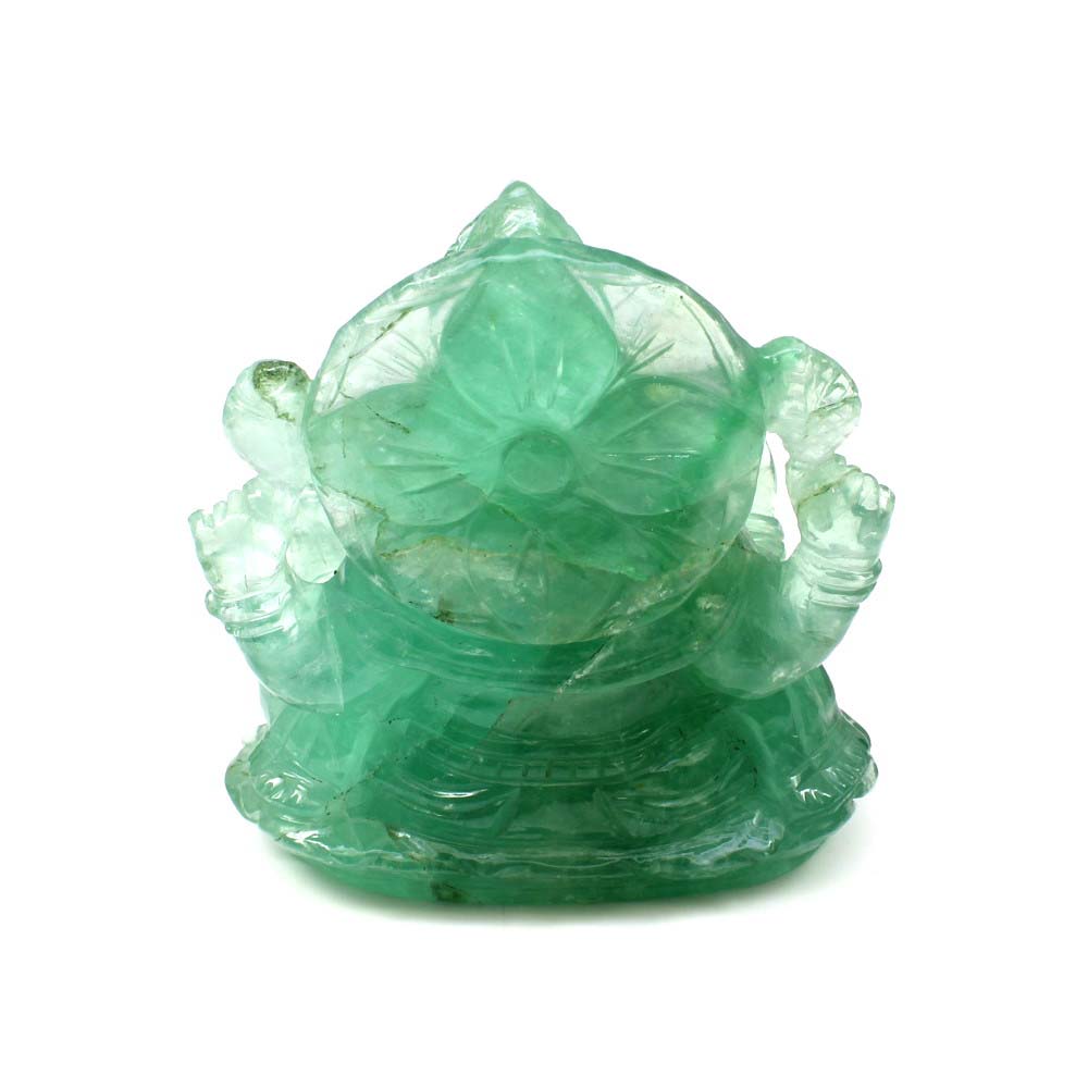 Lord Ganesha Idol Green Fluorite Carved Sculpture Art