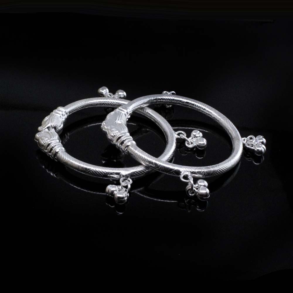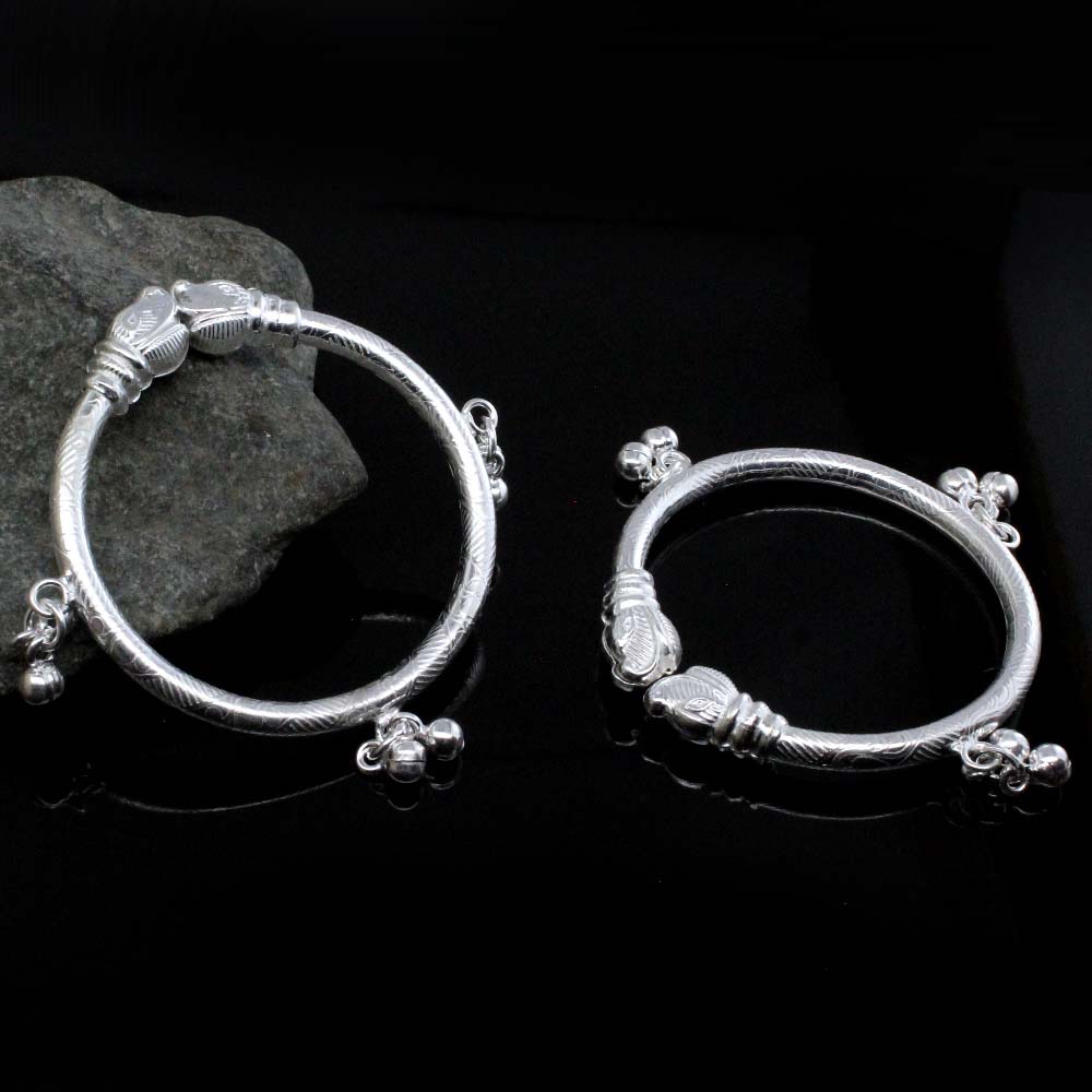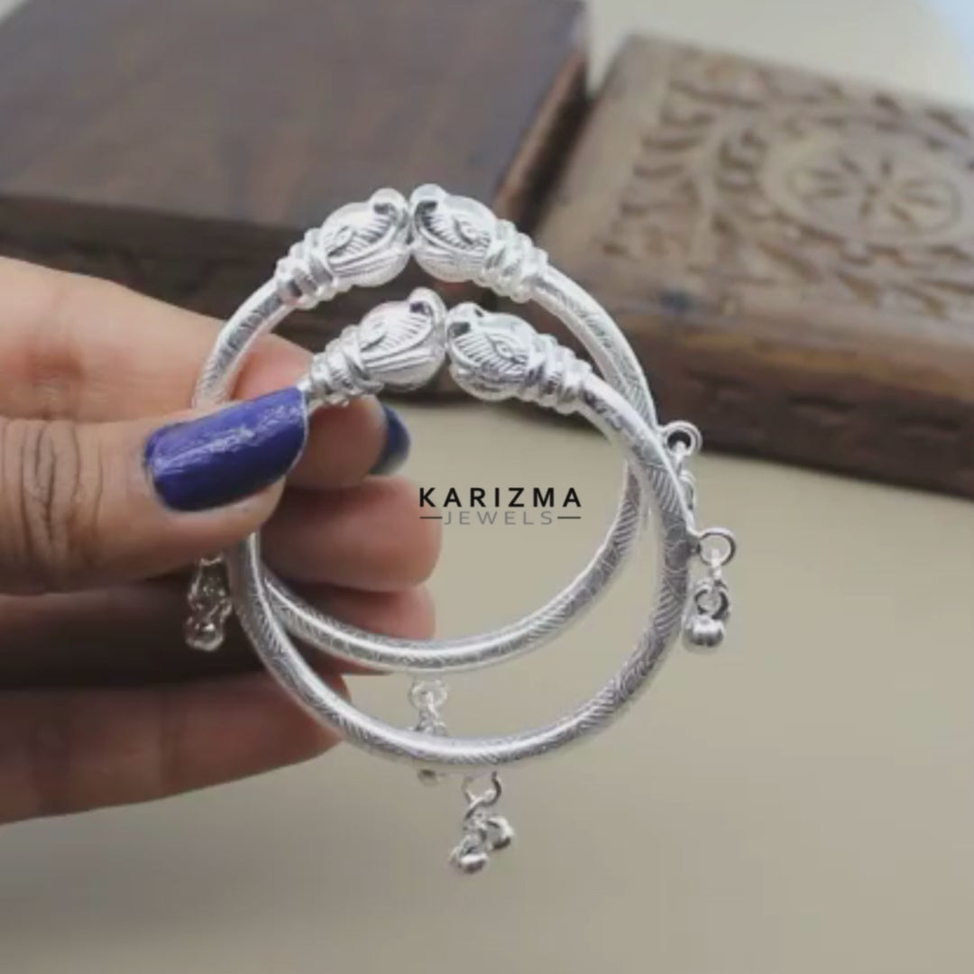 Our Elephant face Real Silver Bangles are perfect for those who want to make a statement. The adjustable design allows for a comfortable fit while the jingle bells on the bracelet will add a touch of charm to your look. Crafted from real silver, these bangles are high quality and durable.