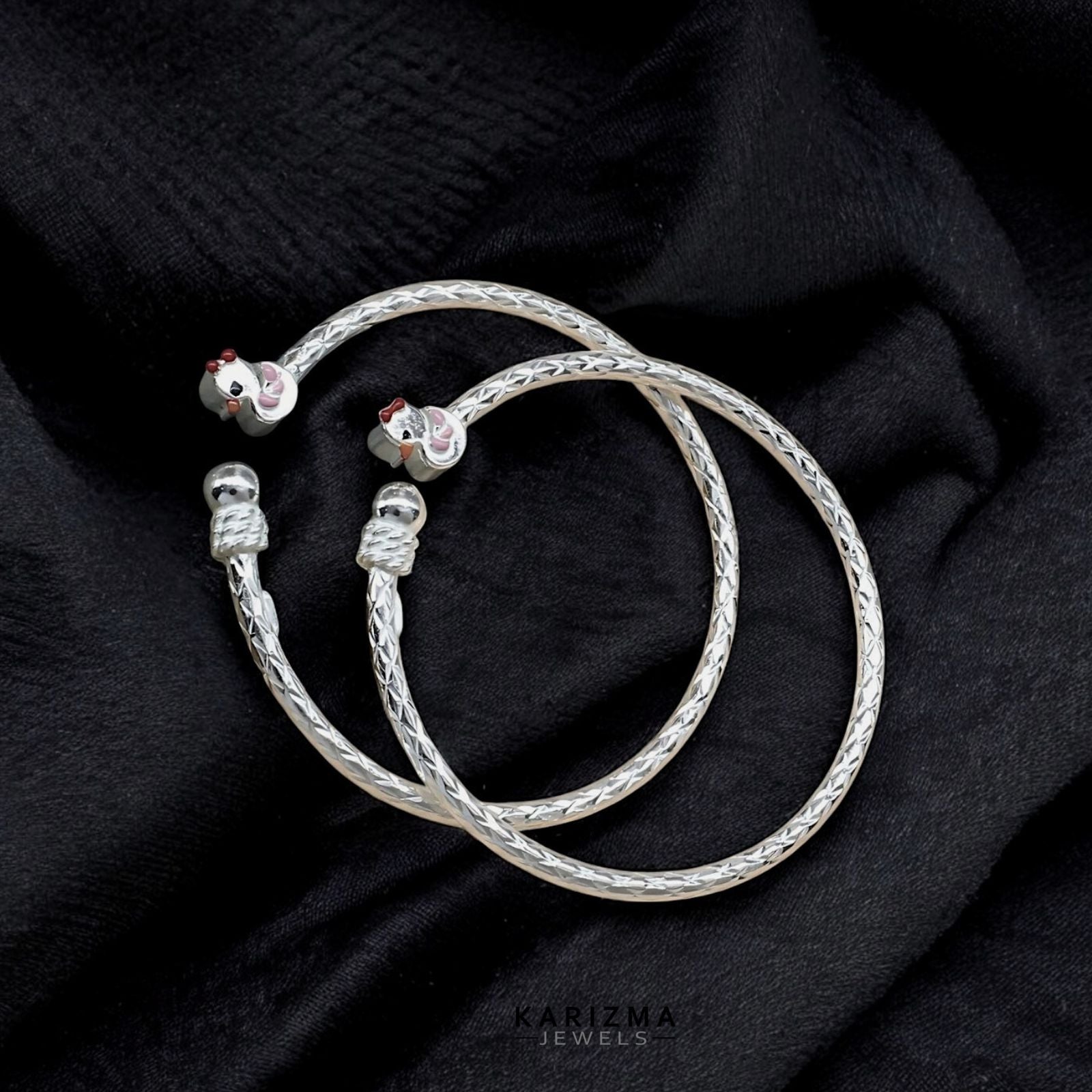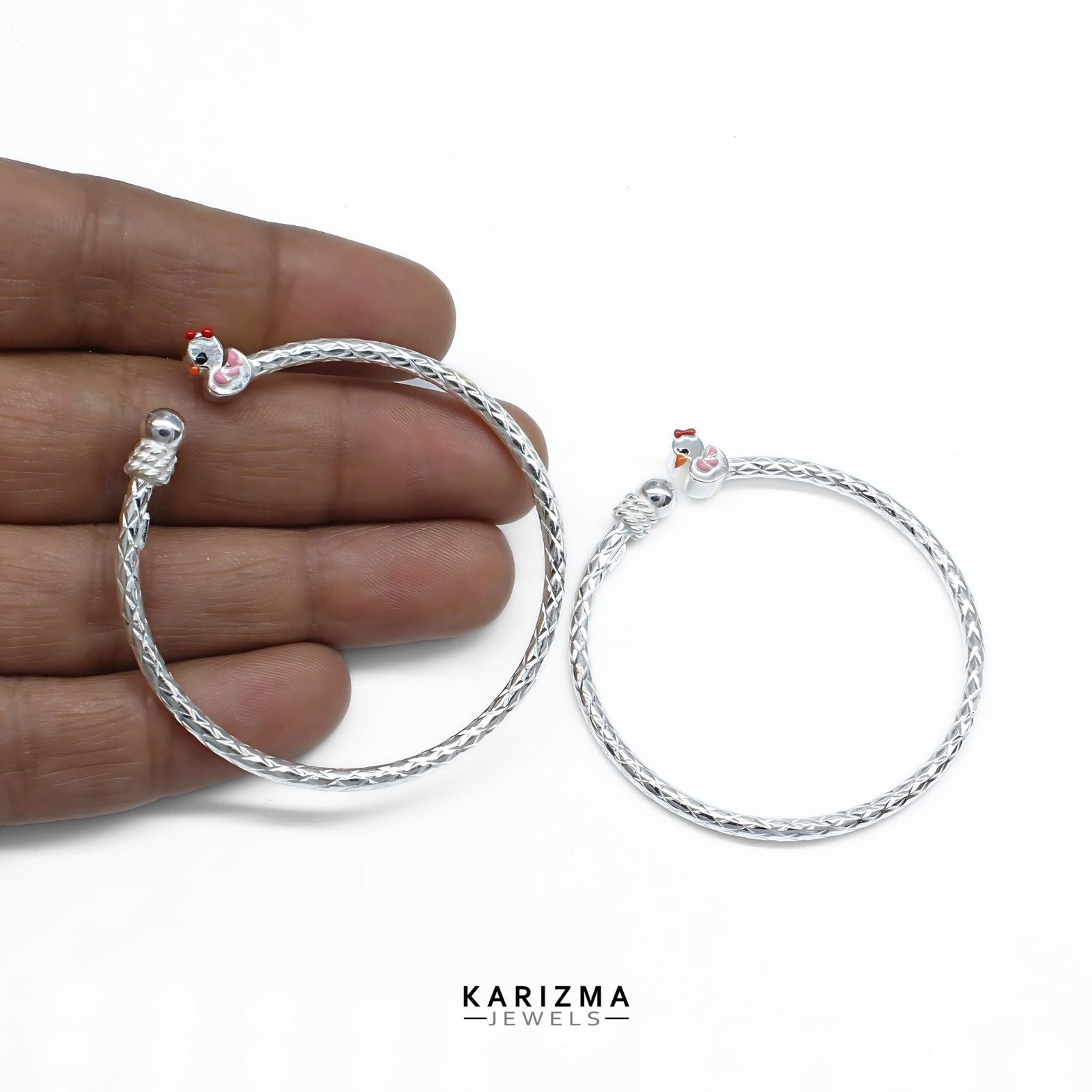 Crafted with high-quality 925 silver and featuring a charming duck design, these bangles make a delightful gift for kids. The sturdy bangle construction ensures long-lasting wear and the timeless design adds a touch of elegance to any outfit. Perfect for any occasion, these bangles are a truly special gift for your little ones.