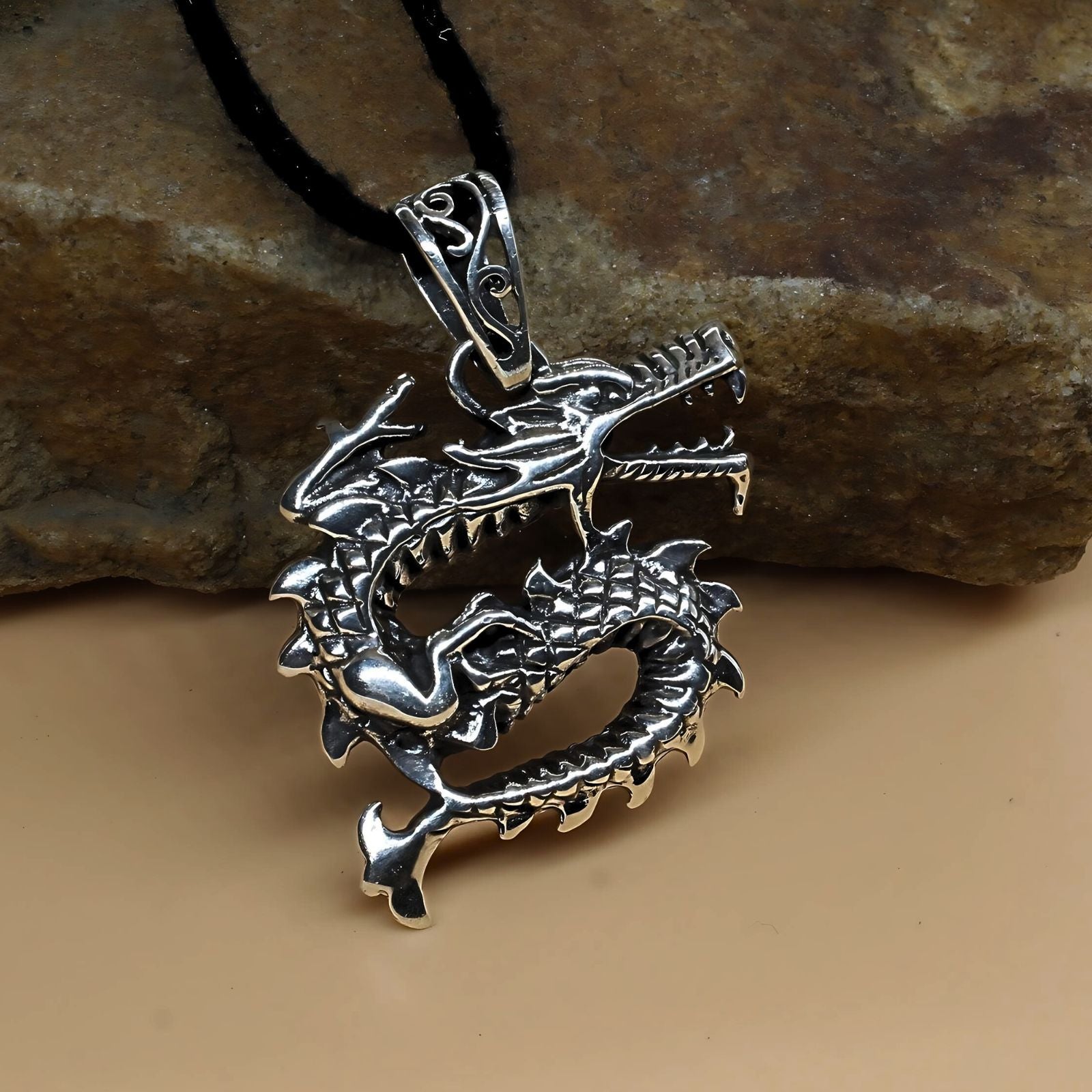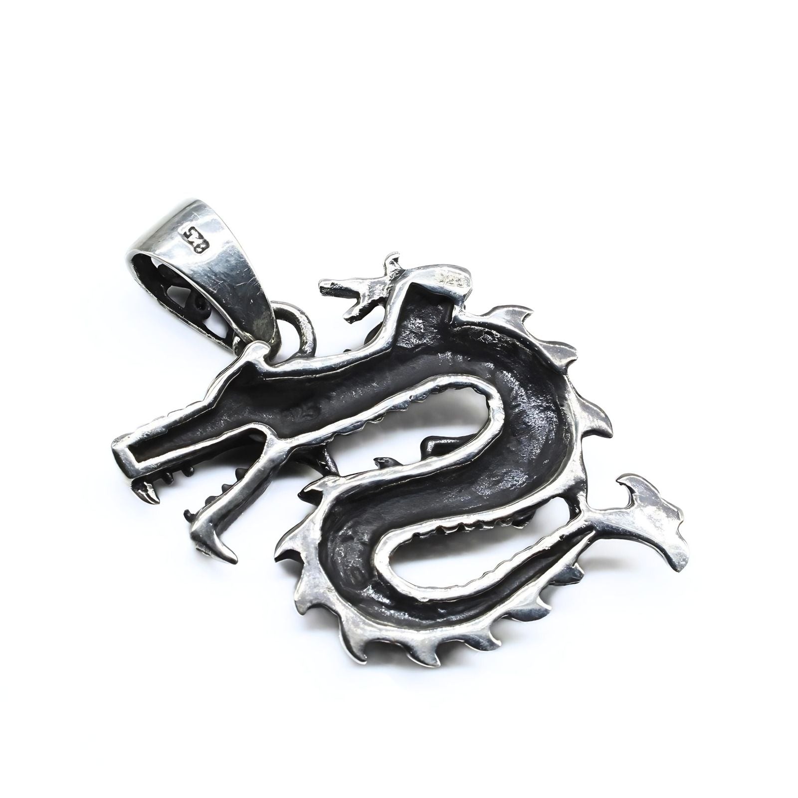Expertly crafted from real 925 silver, this dragon charm pendant showcases intricate oxidized details for a stunning and unique appearance. Add a touch of elegance and personality to any outfit with this amazing pendant.