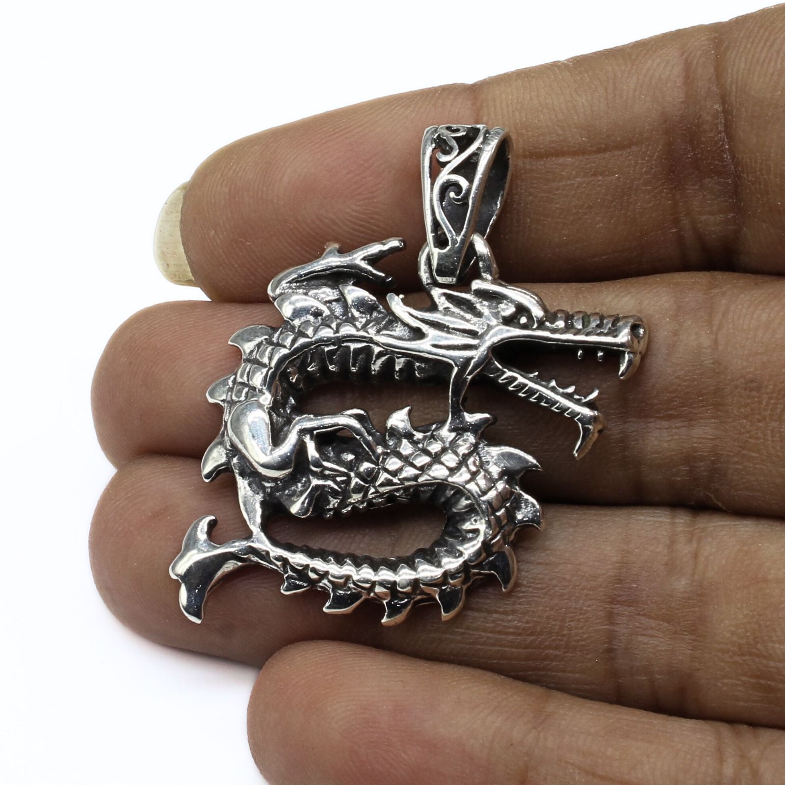 Real 925 Silver Oxidized amazing Dragon Charm Pendant
