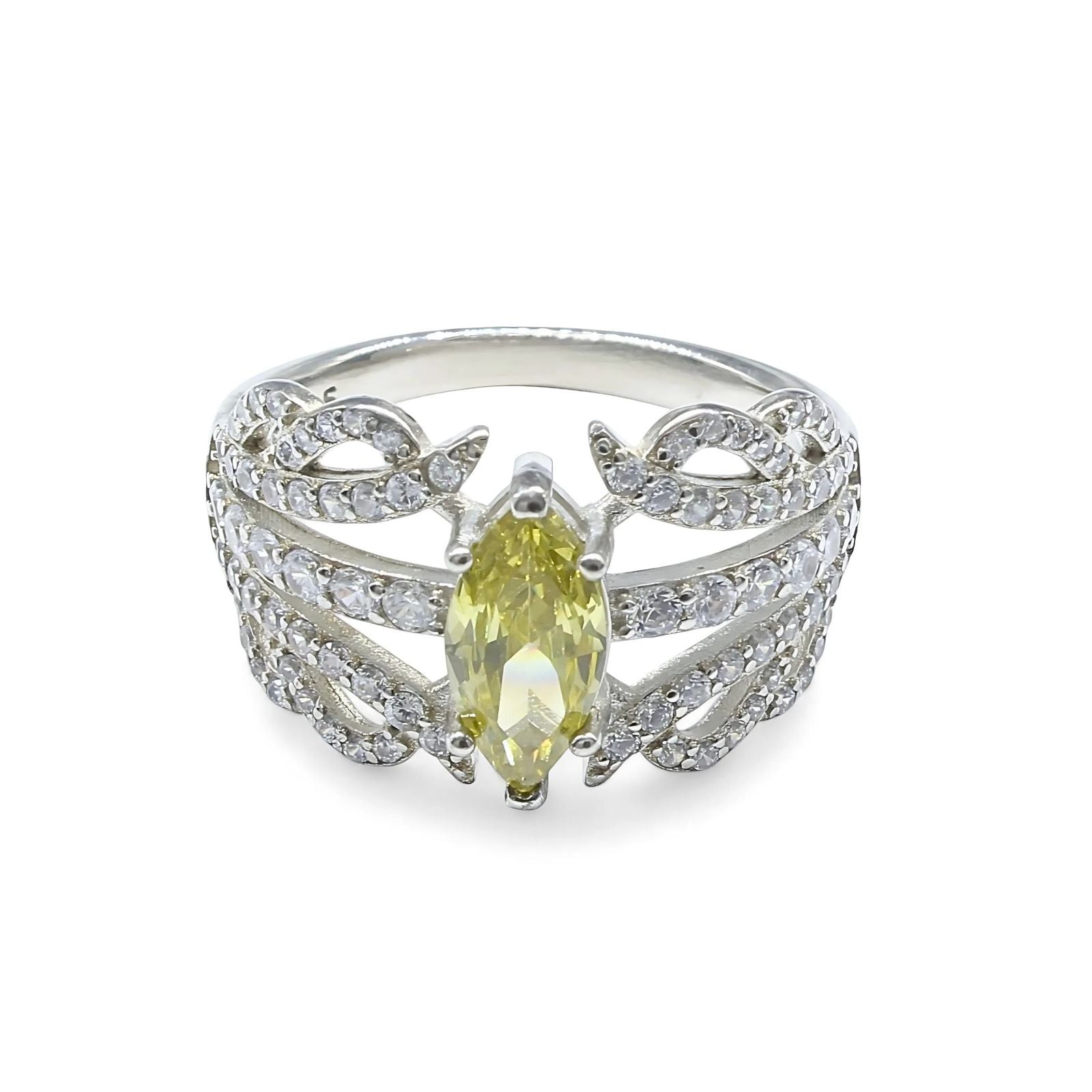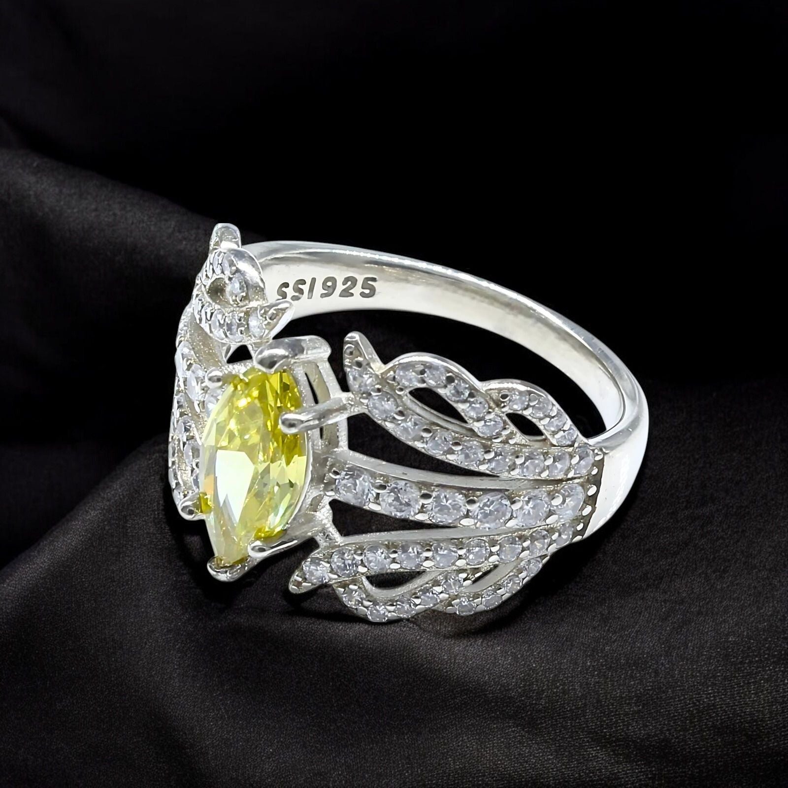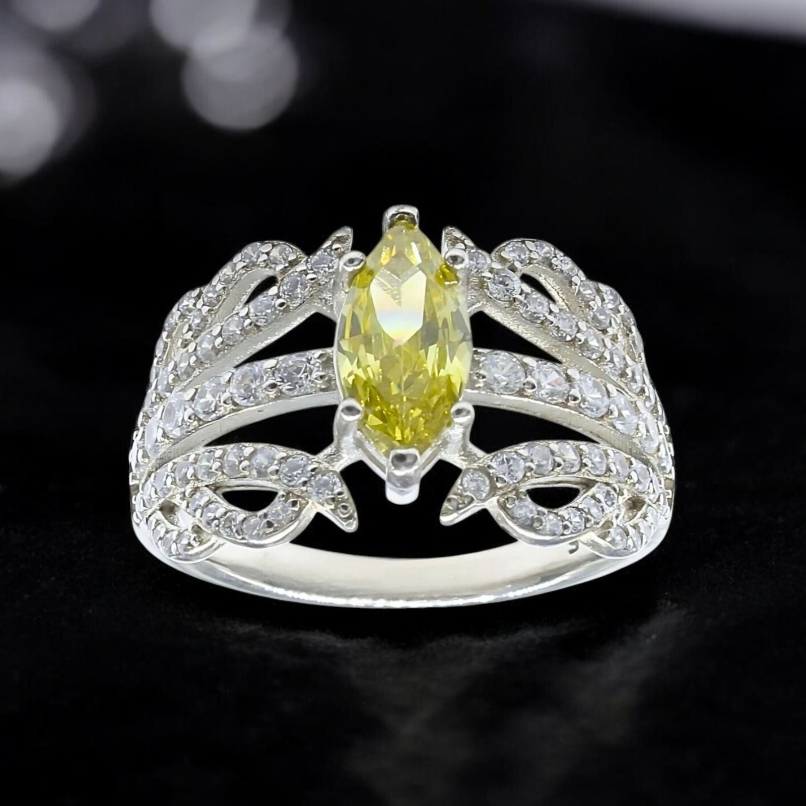 Real 925 Sterling Silver Lemon White CZ Women gorgeous Engagement Ring