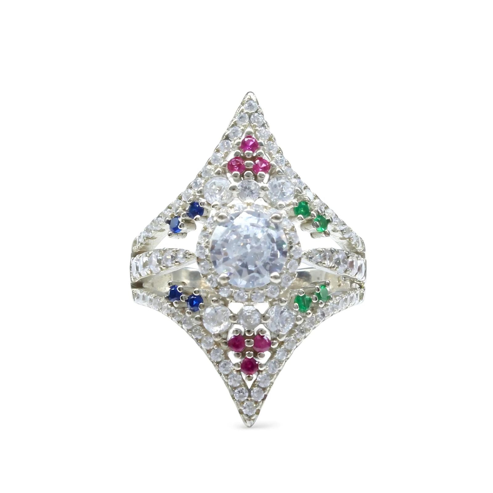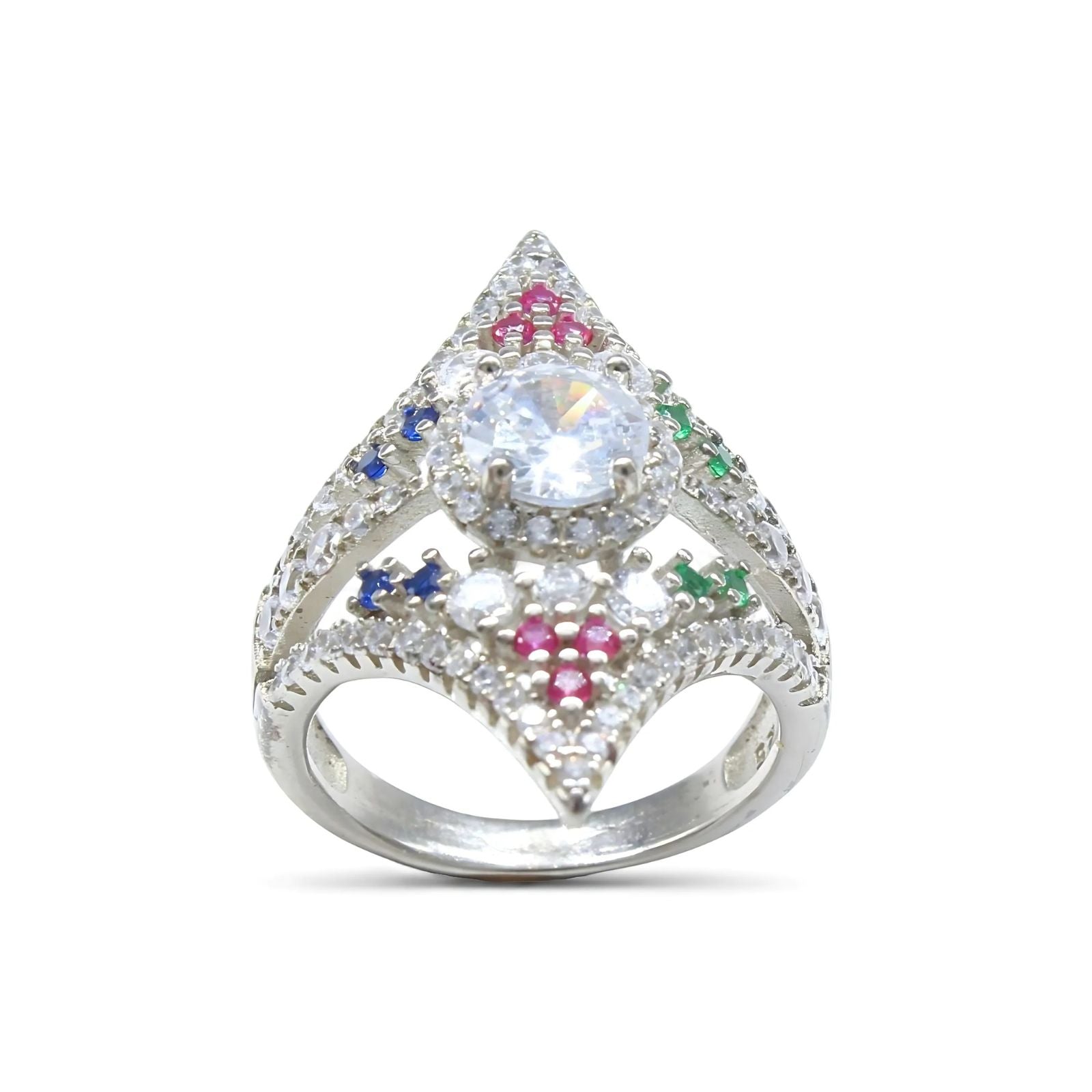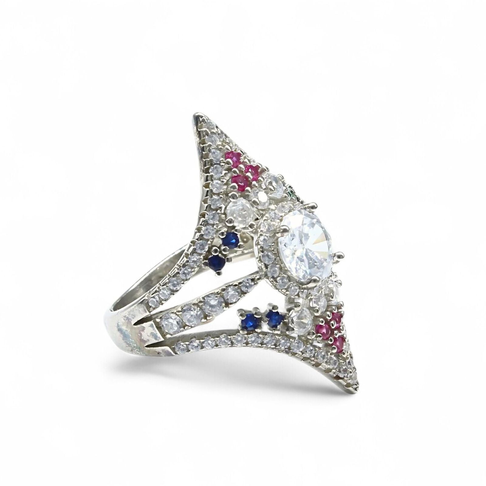 Real 925 Sterling Silver Multi CZ Women statement Ring