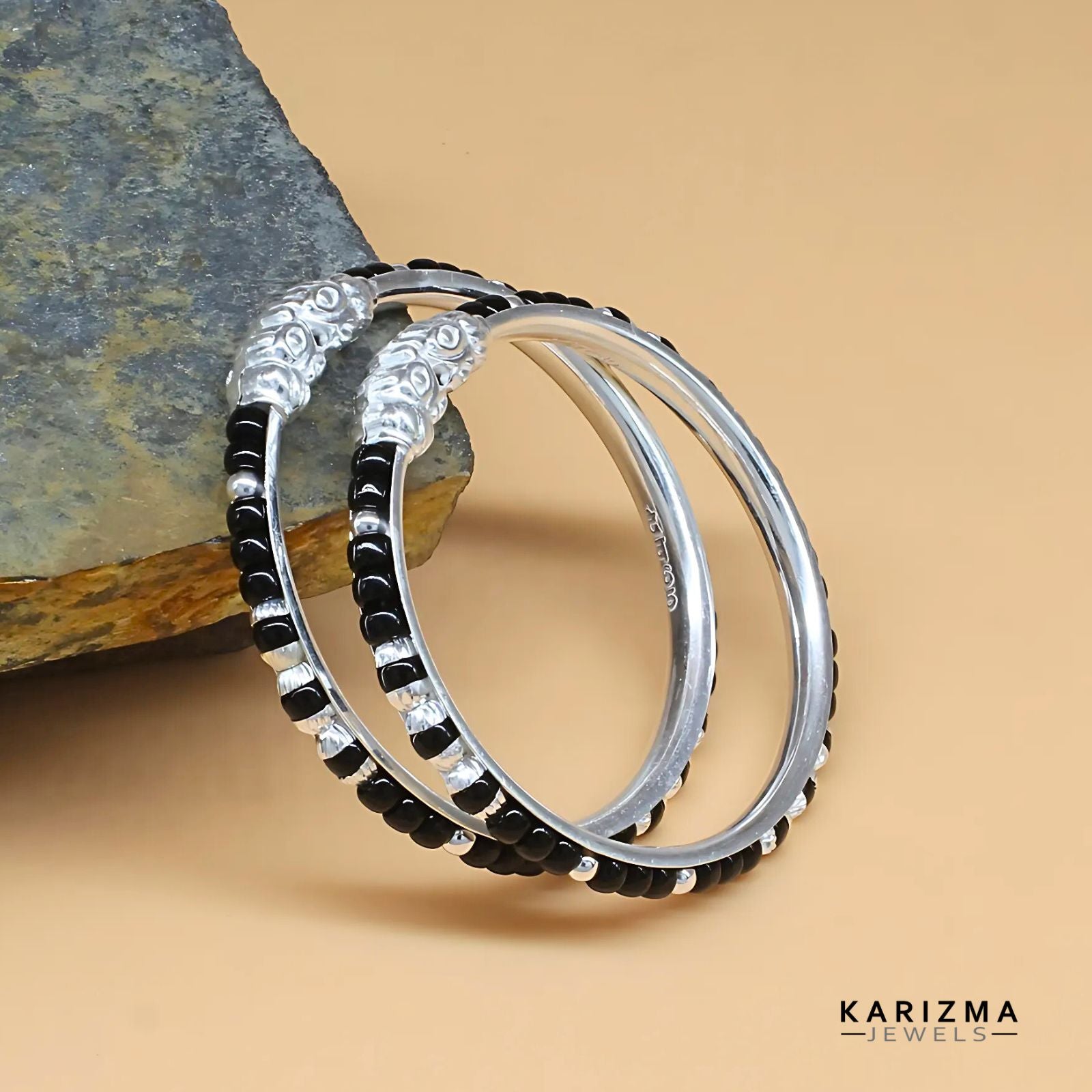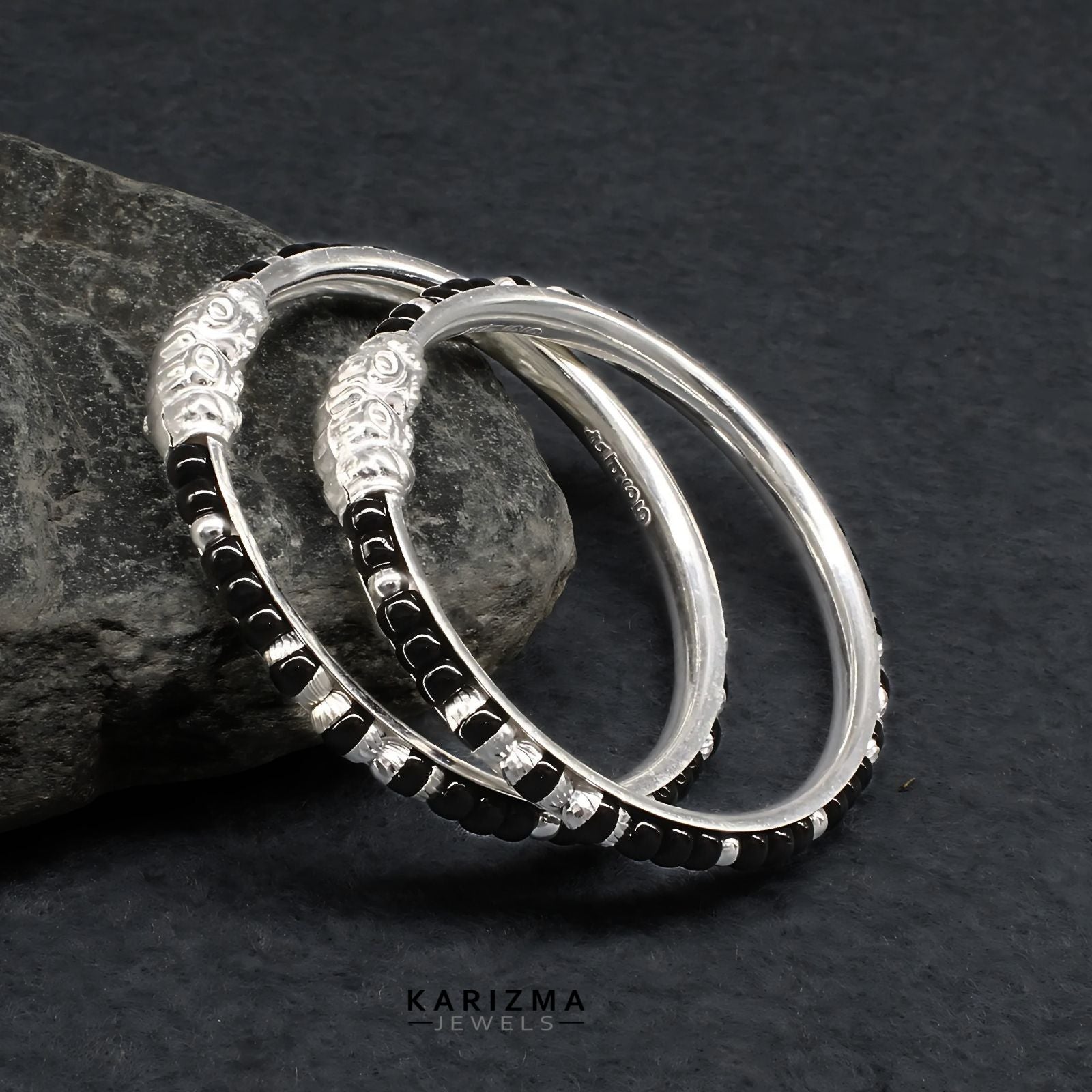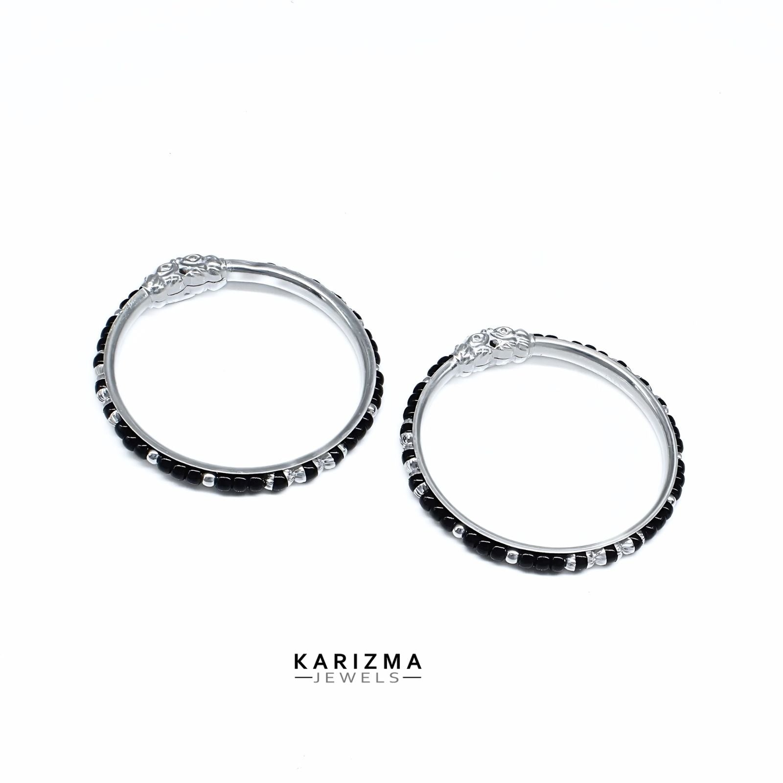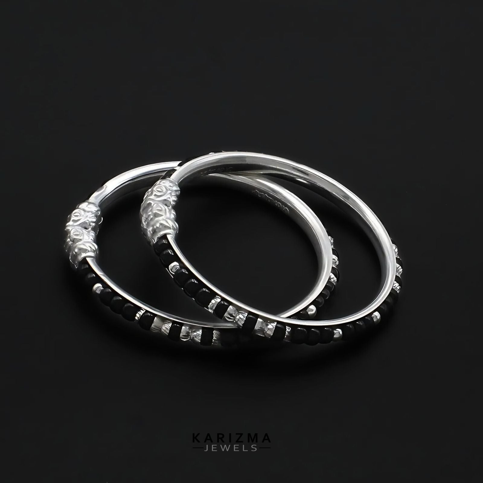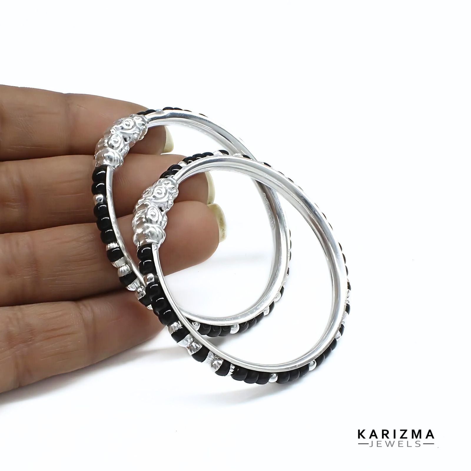 Real Silver cultural design Black Beads Nazariya kids Bangles Bracelet - Pair