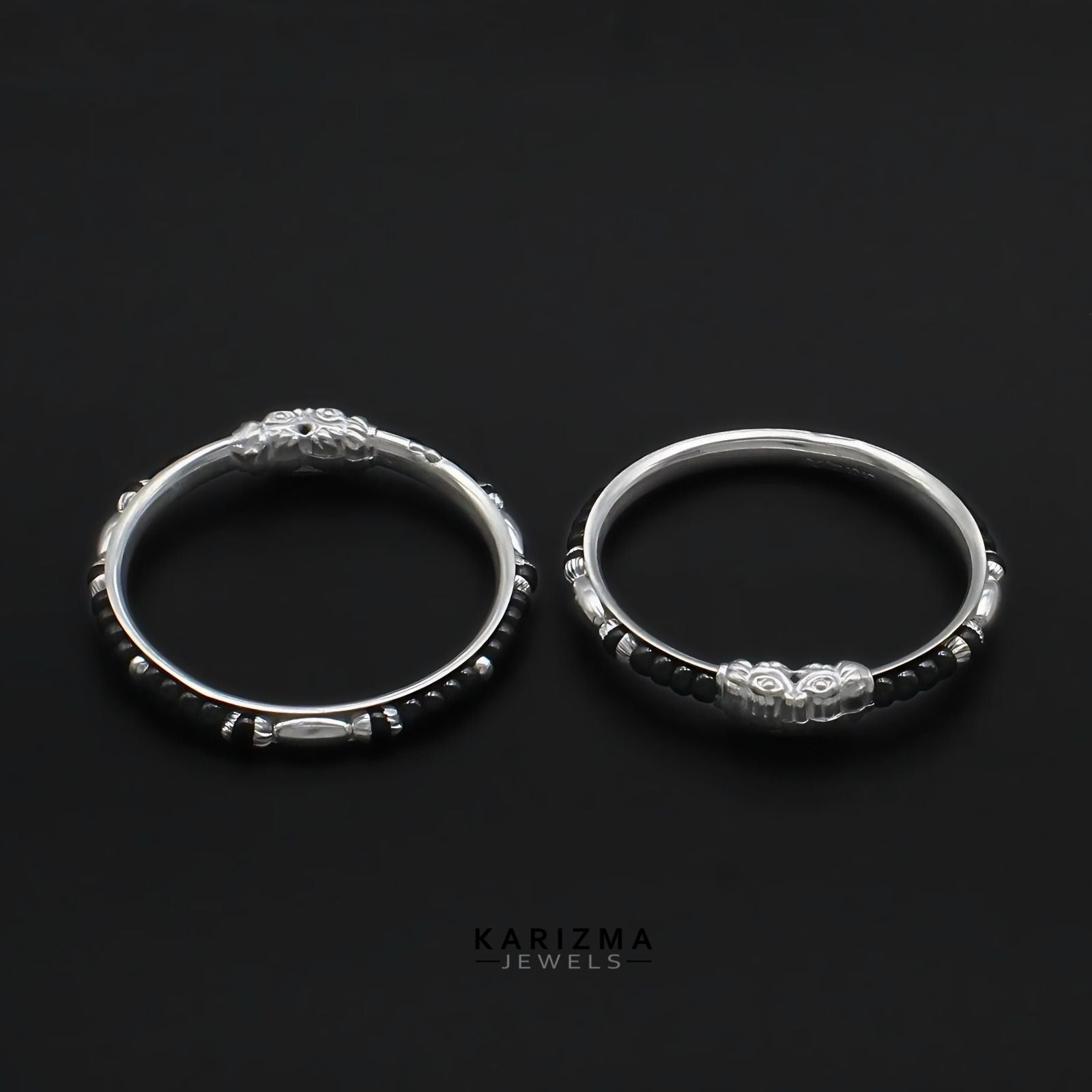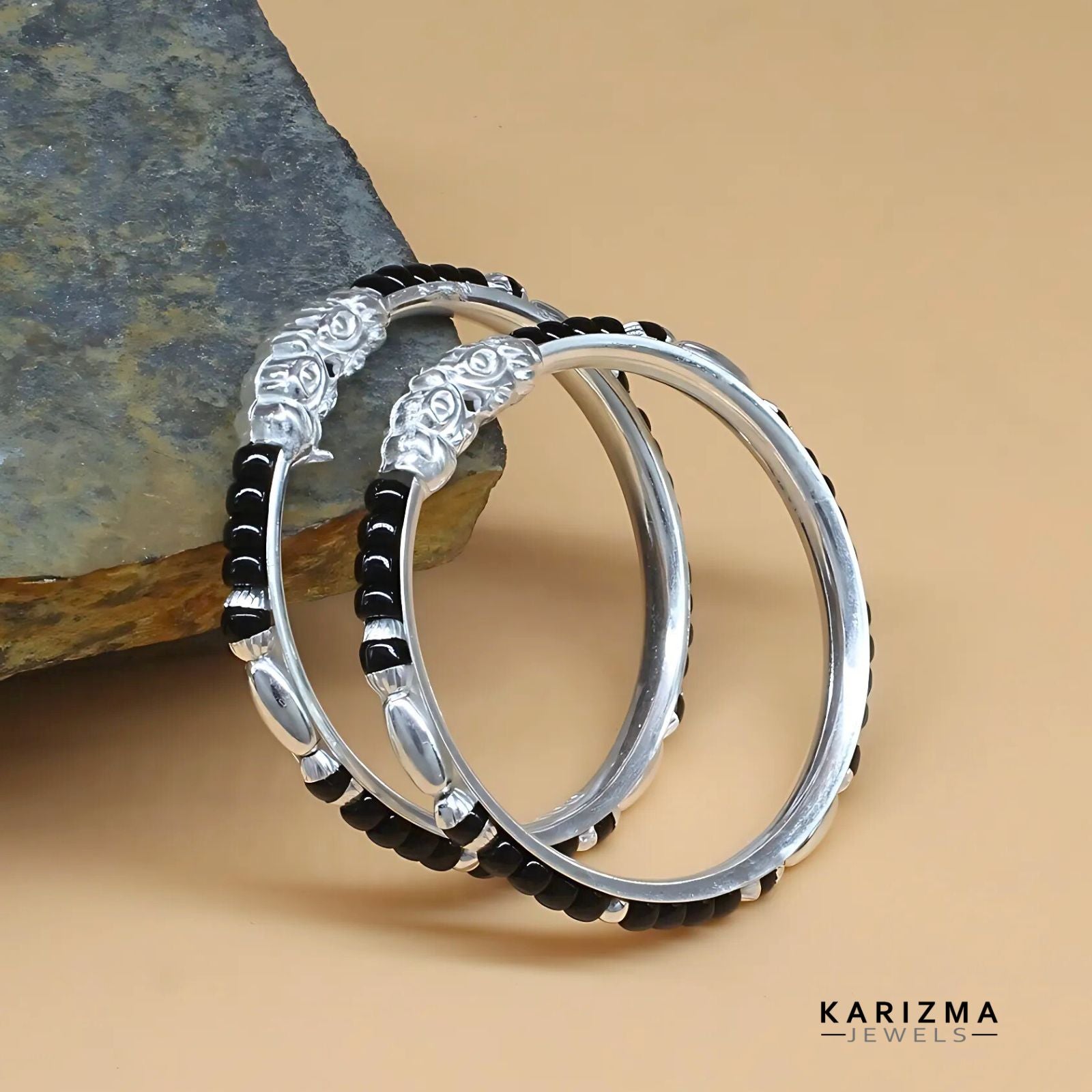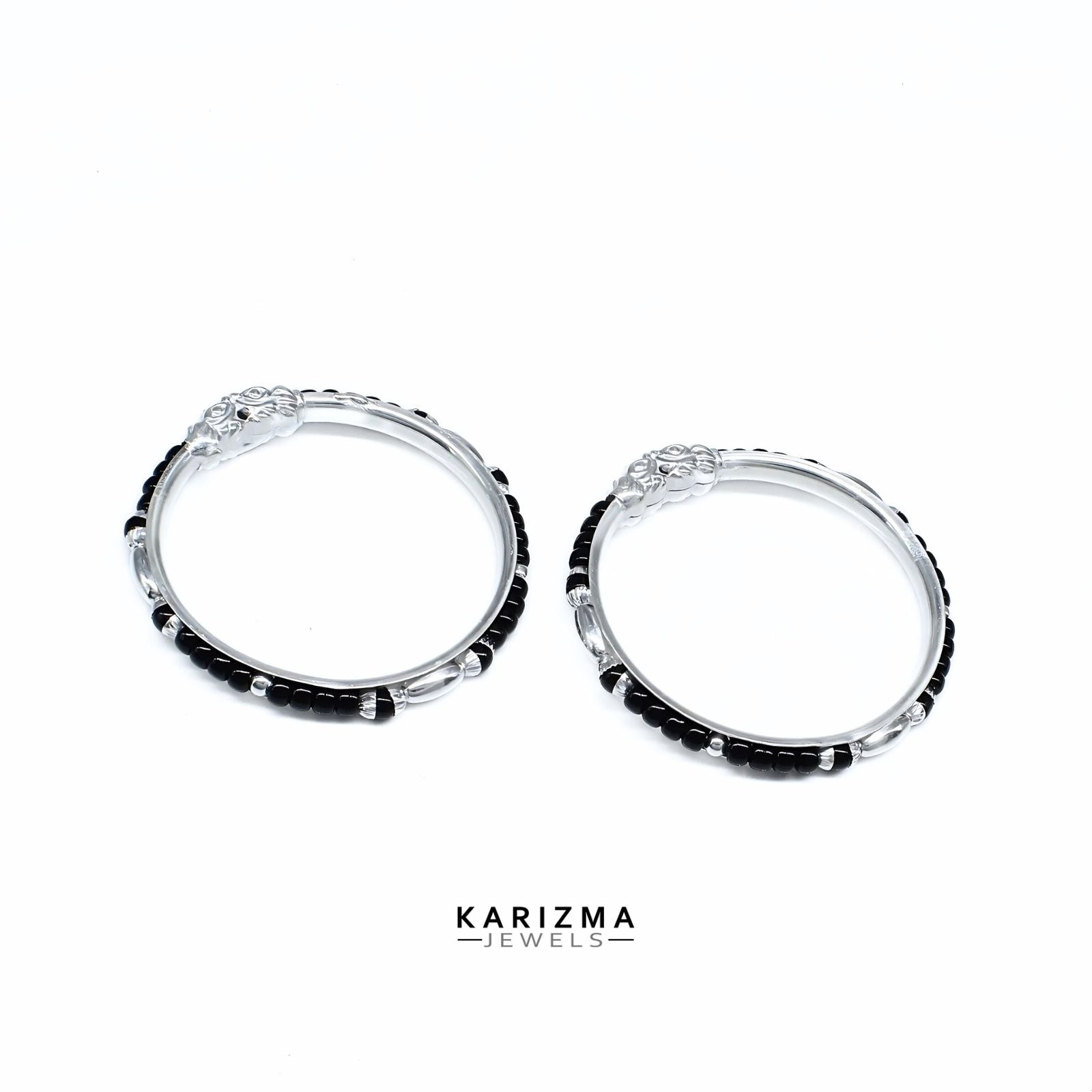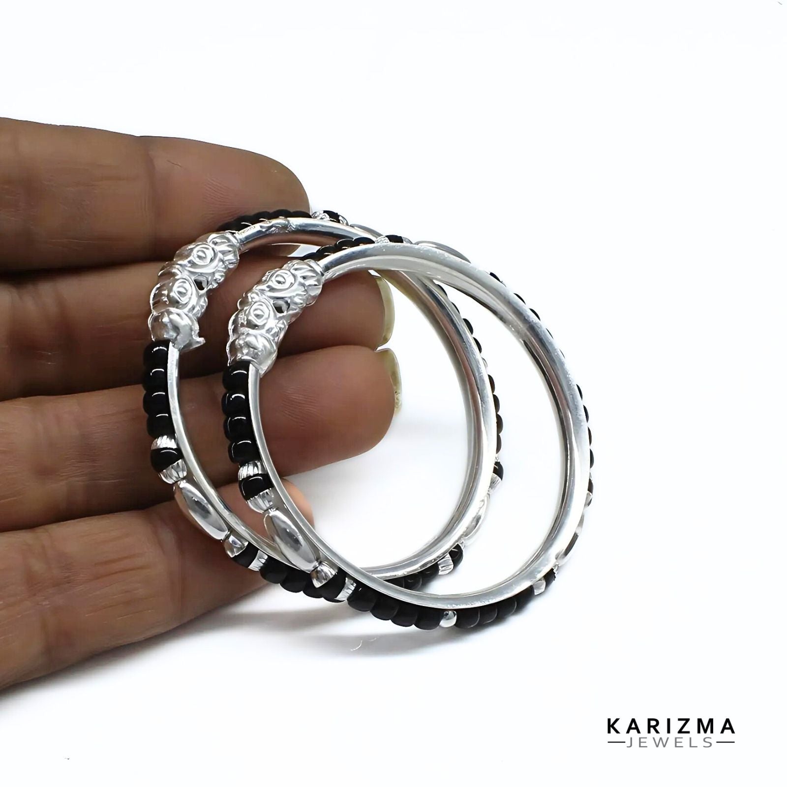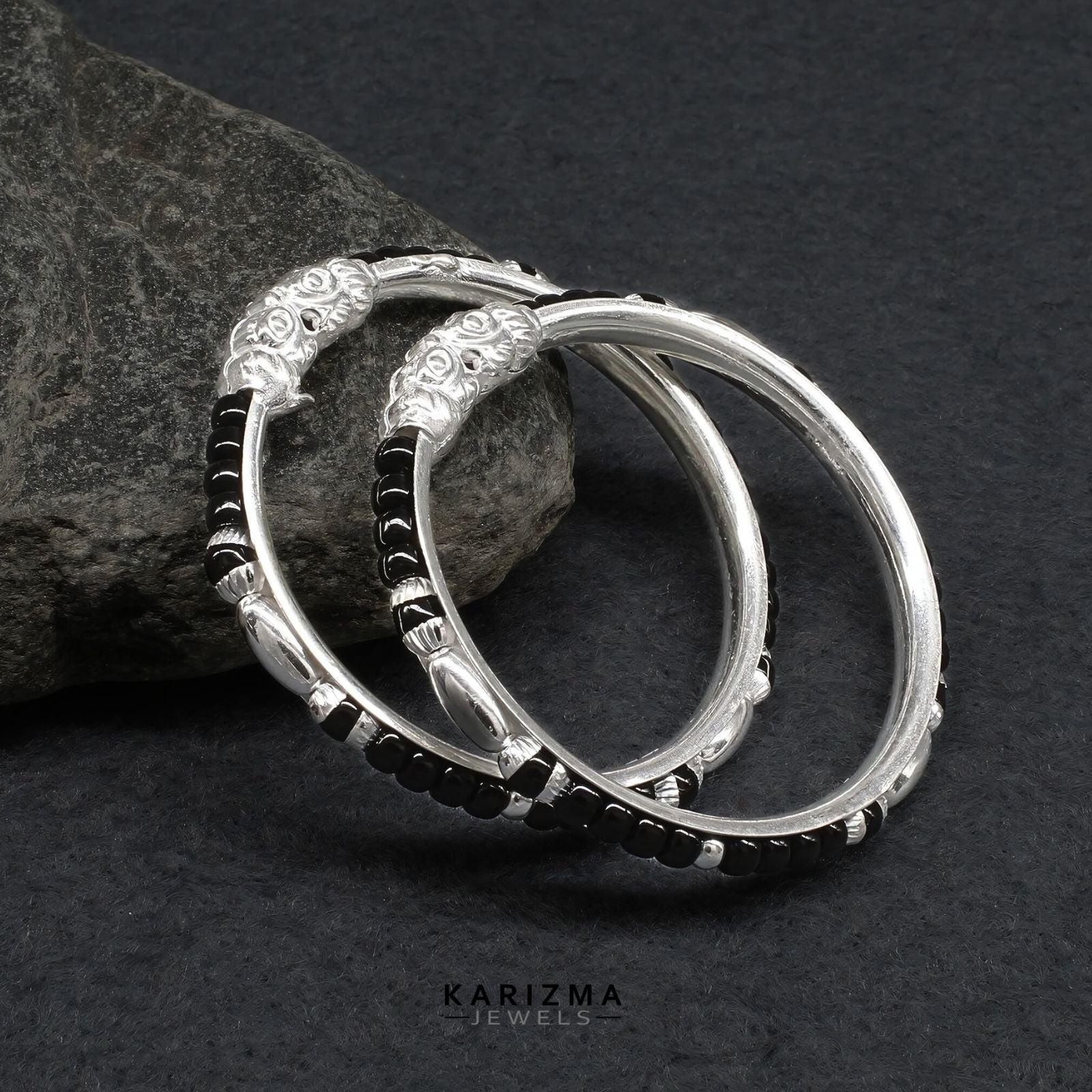 Real Silver unique trendy Black Beads Nazariya kids Bangles Bracelet - Pair