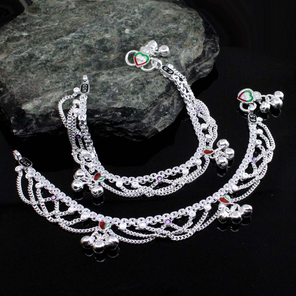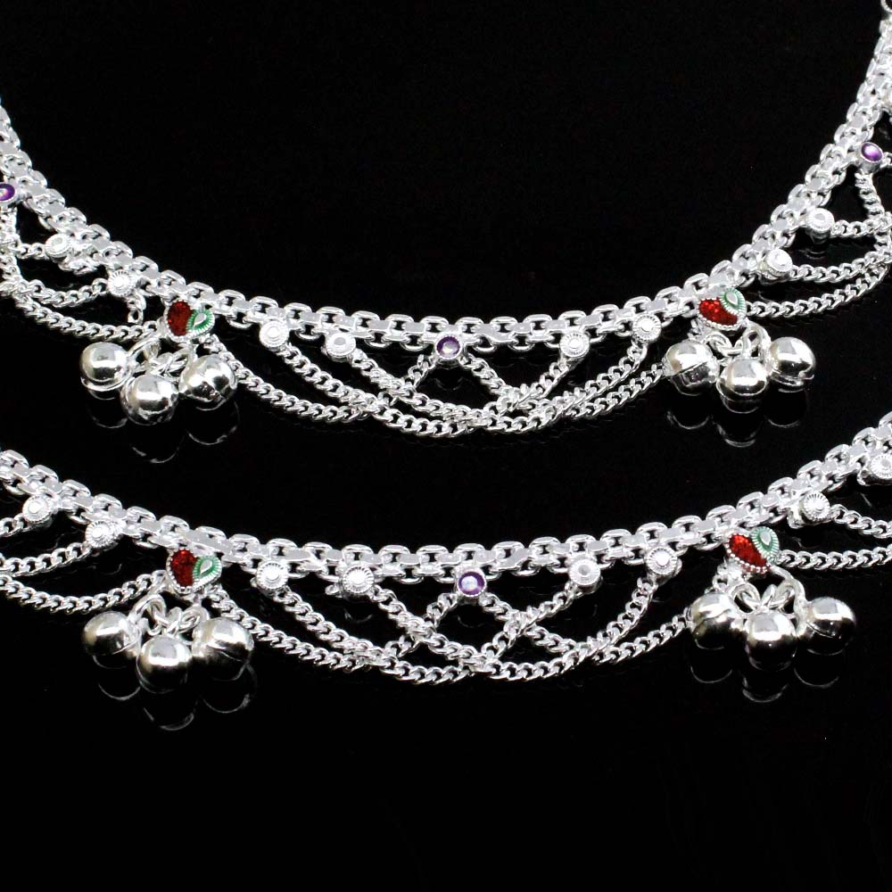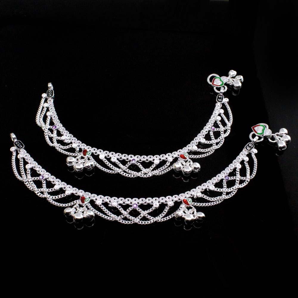 These Real Solid Sterling Silver Jhallar Anklets are the perfect accessory for any look. Crafted with classic chain-link detailing, they are designed with a 6.5” length, making them perfect for kids. Made from quality sterling silver, these anklets are durable and stylish.