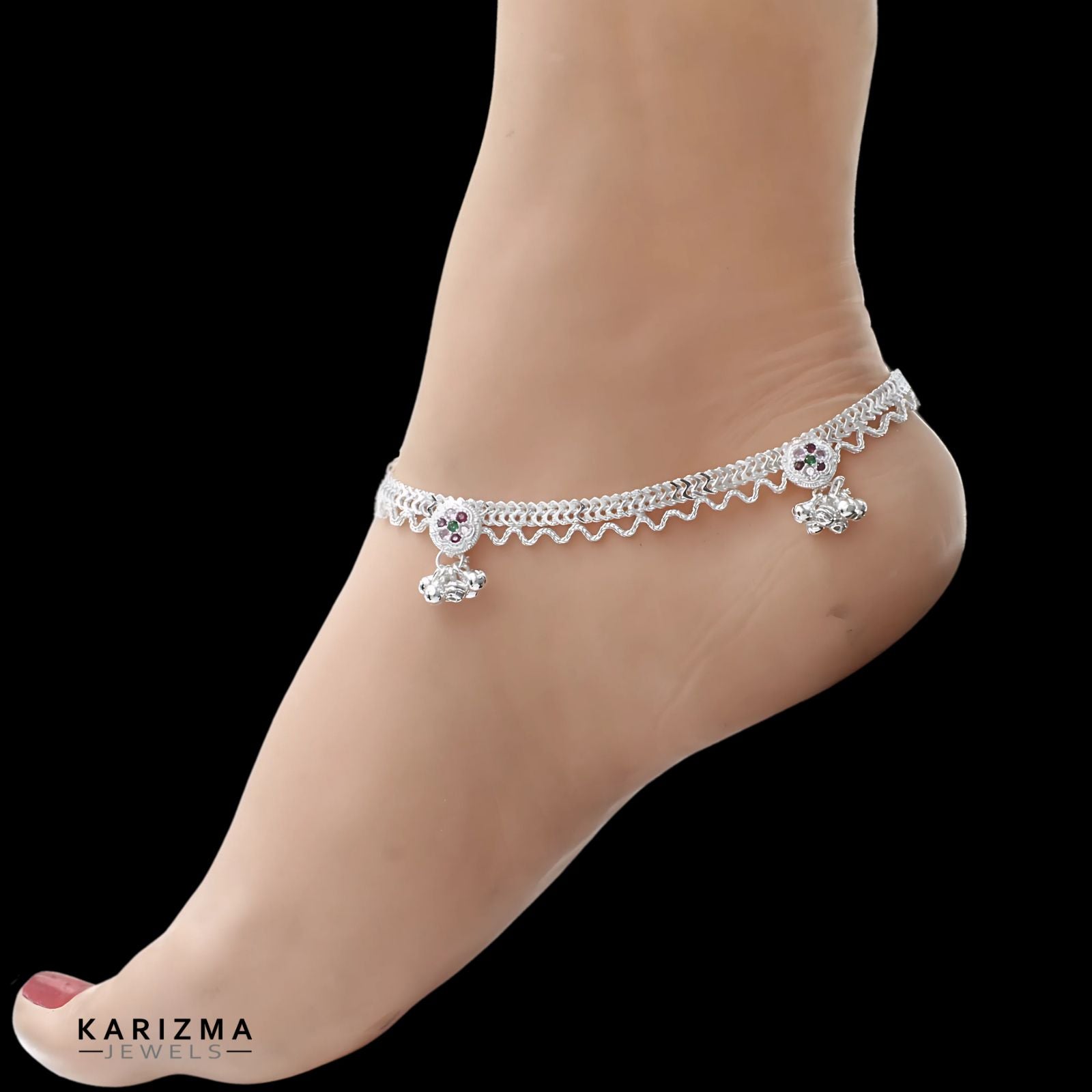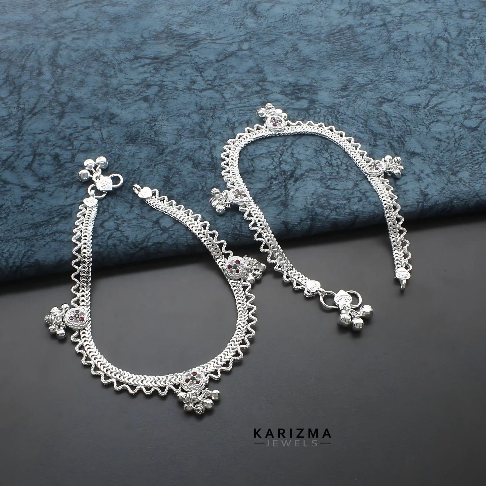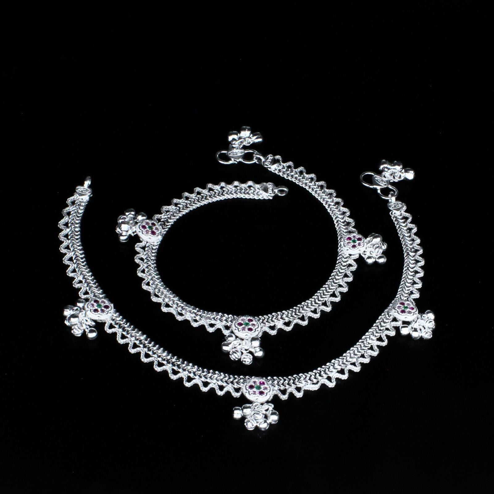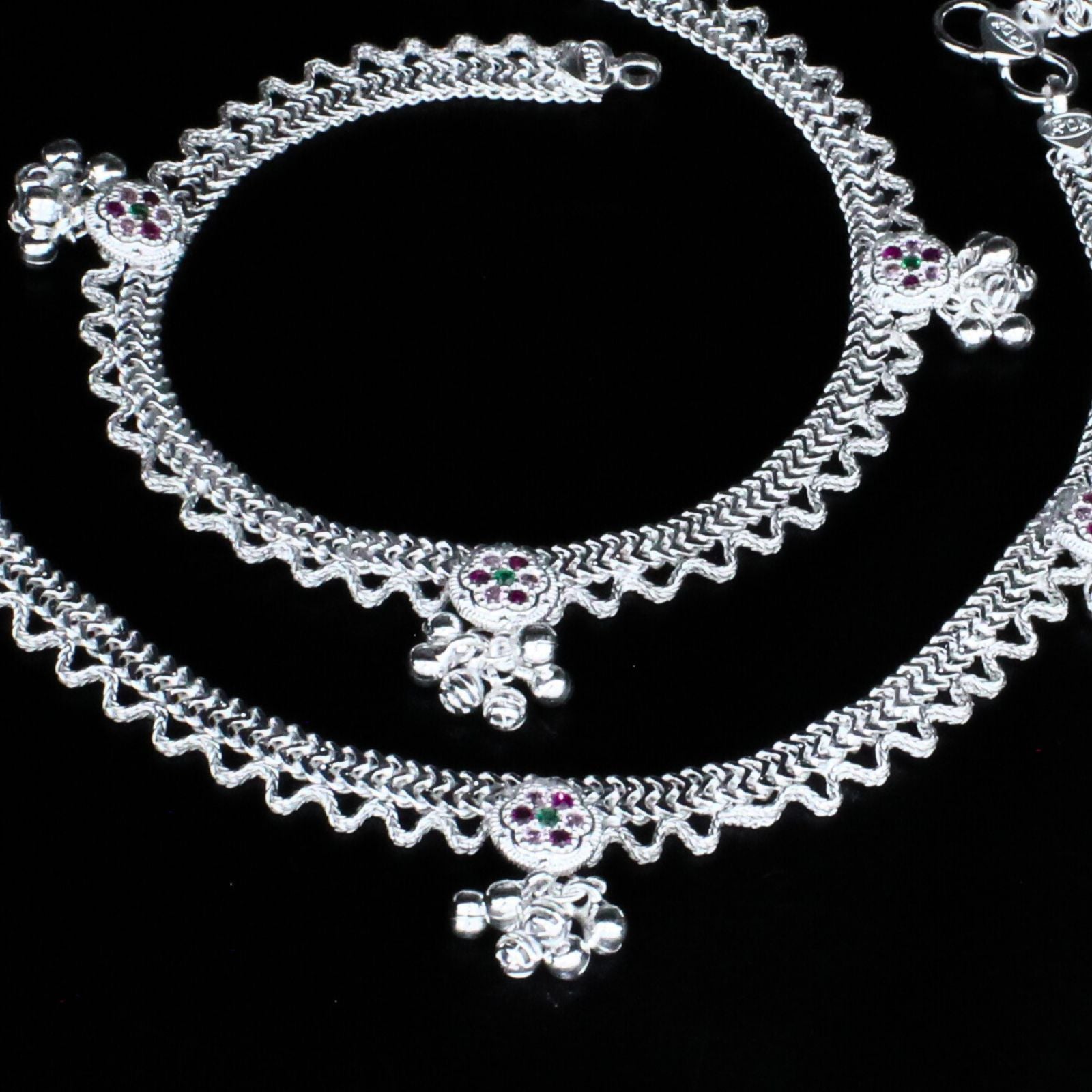 Real Sterling Silver women Multi CZ unique Anklet Ankle Pair 10.3"